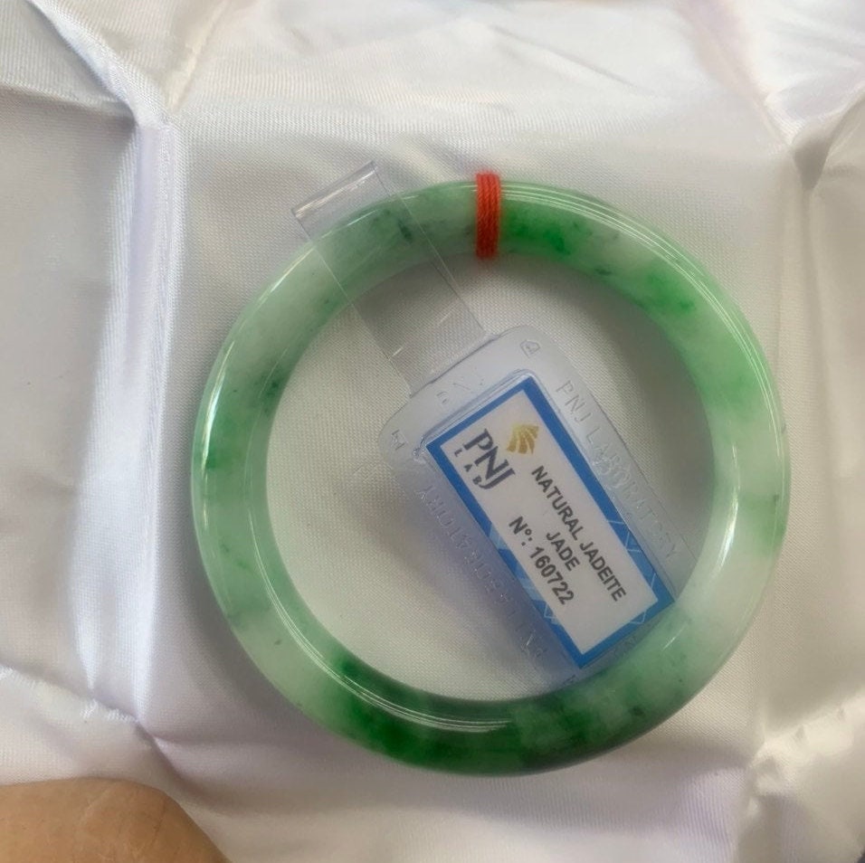 🎁 Timeless Elegance with a Genuine Jade Bangle Bracelet🎁 Crafted from Real Jade - A Classic Vintage Treasure✔ Semi-translucent green jade that tells a story of elegance and charm through time.✨ Features:Material: Authentic real jade, a symbol of prosperity and longevity.Design: Vintage-inspired jade bangle bracelet with a smooth round shape, perfect for both men and women.Sizes: Inner diameter from 47-75 mm to suit every wrist.Certification: Accompanied by a PNJ certificate to guarantee authenticity.💝 A Gift from the Heart:Reminiscent of heirloom jewelry, this piece makes a thoughtful grandmother bracelet or a meaningful bracelet for sister. Whether it's a green jade bangle for men or a grandma bracelet, this timeless treasure brings luck and beauty to all who wear it.🌿 Why Choose Vintage Jade?Each genuine jade bracelet carries a sense of history, making it more than a piece of jewelry—it's a connection to the past. Perfect for lovers of retro, bohemian, or classic styles.🌹 Care & Customization:Need the right fit? Message us for size advice to ensure this jade bangle bracelet feels as perfect as it looks.-----------------------------YINGMART | Vintage Elegance in Jade🔗 Website: www.yingmart.co📩 Email: info [!at] yingmart.net📱 Instagram: https://www.instagram.com/yingmart/🐦 Twitter: https://twitter.com/yingmart/🛒 Etsy: https://www.etsy.com/shop/YingmartShop/📘 Facebook: https://www.facebook.com/yingmart.fb/
