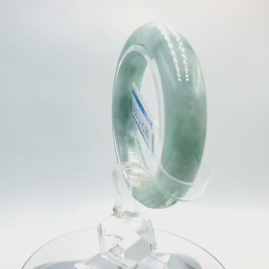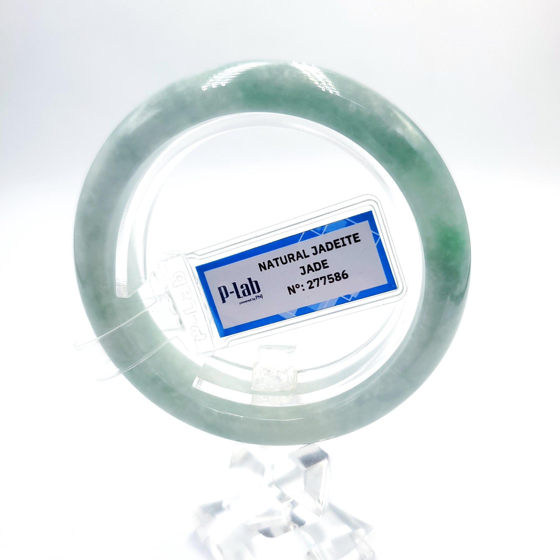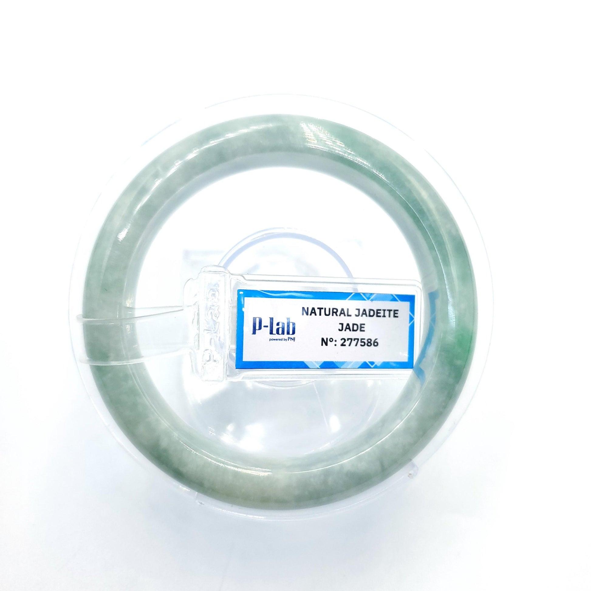 Certified 53mm PNJ277586 Real Jade Bangle | Natural Color Green-White to Green, Grey White Jadeite Bracelet for Men, Women, Grandma, Sister