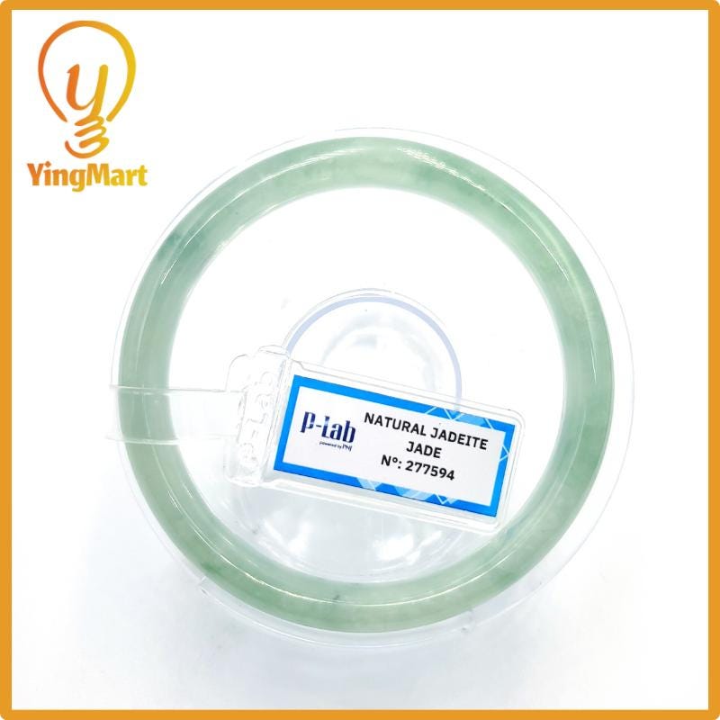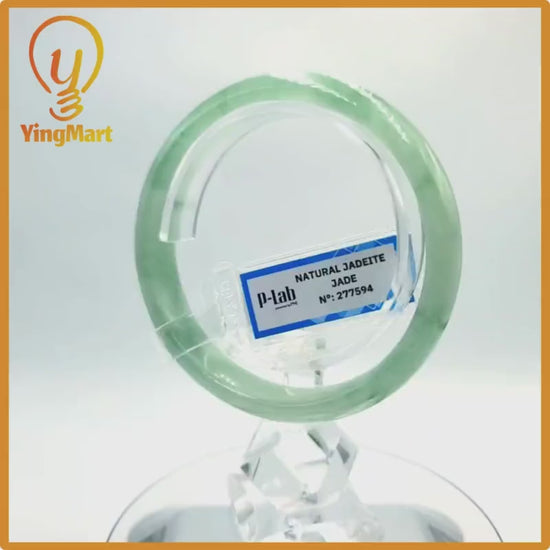 Certified 58mm PNJ277594 Real Jade Bangle | Natural Color Green White to Greyish Green, Grey White Jadeite Bracelet for Men, Women, Grandma