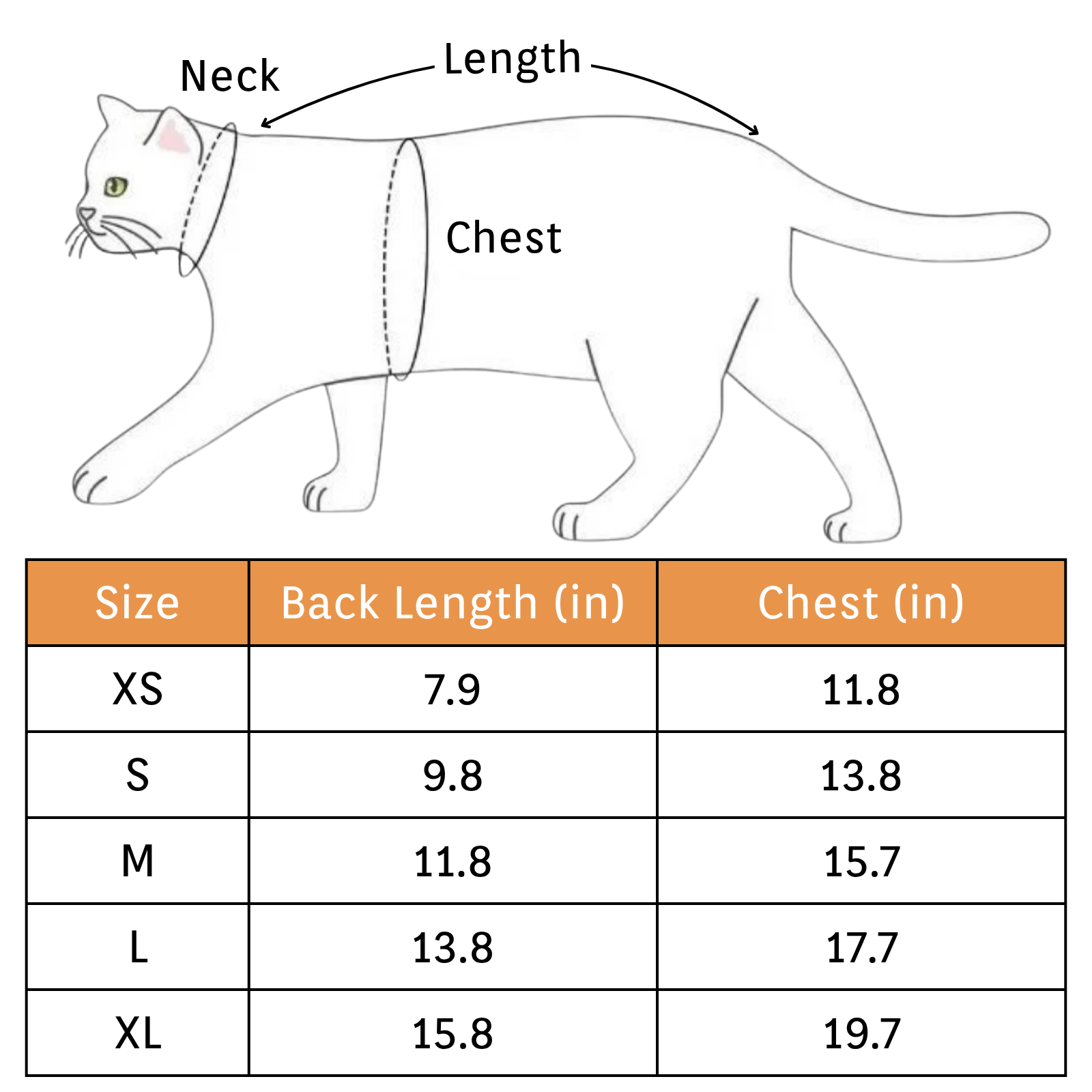 - Length: Measure from the base of the neck to the root of the tail (do not include the tail).