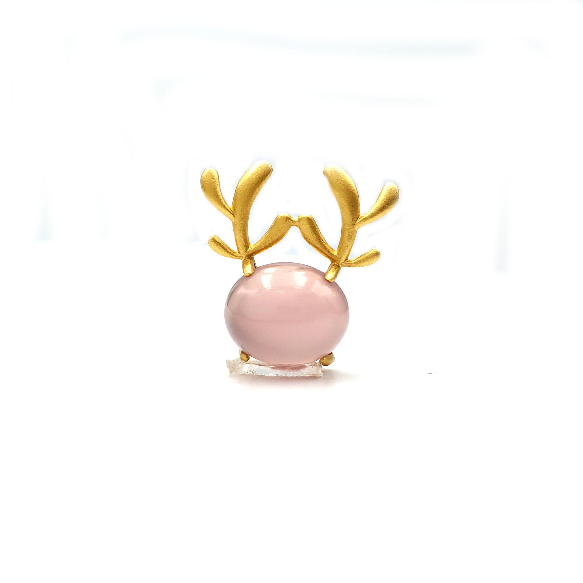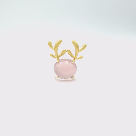 Genuine Pink Chalcedony pendant Shape Reindeer Real Gemstone pendant, Vintage Jewelry, Gift For Her