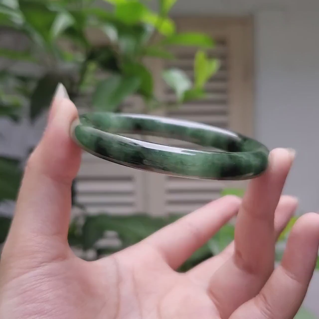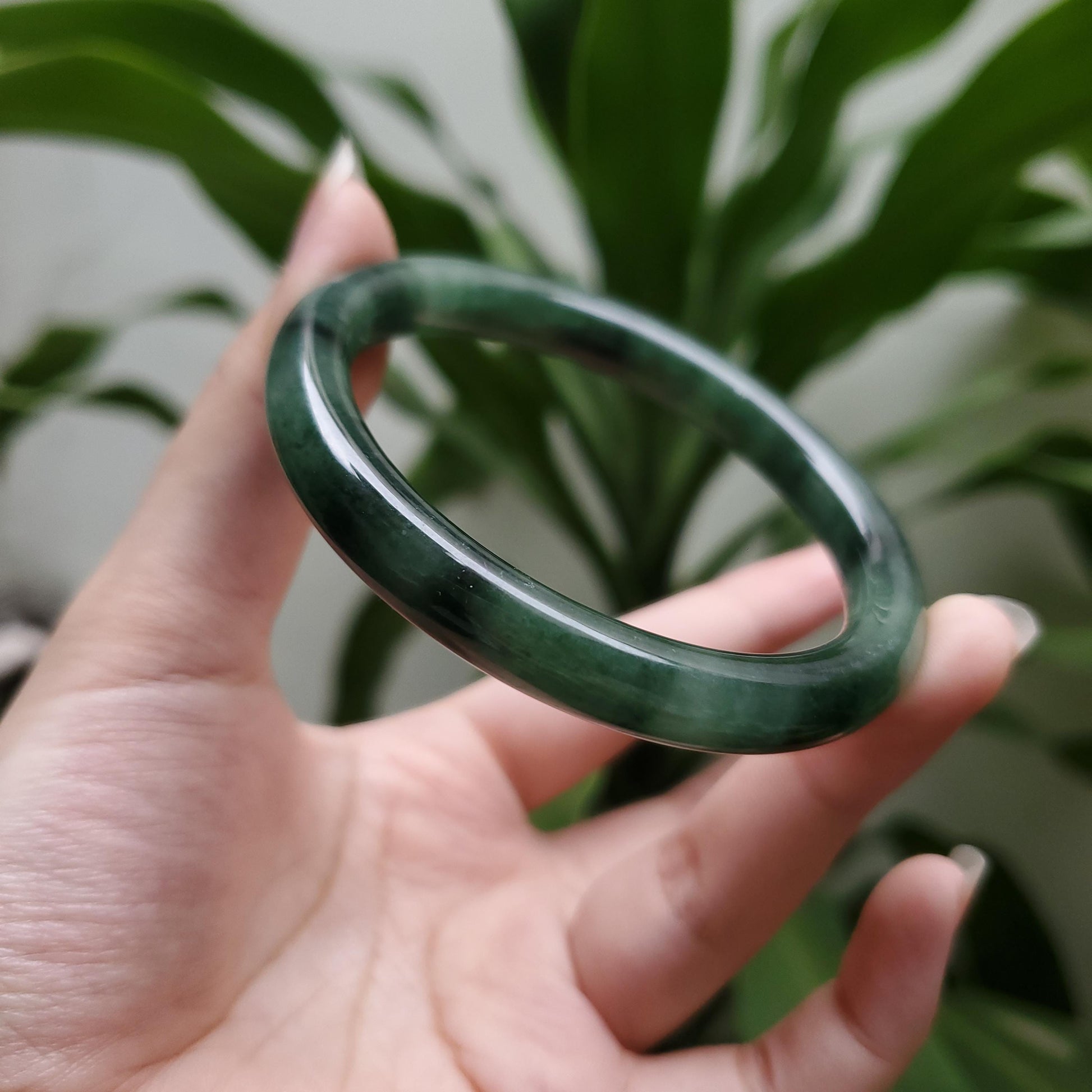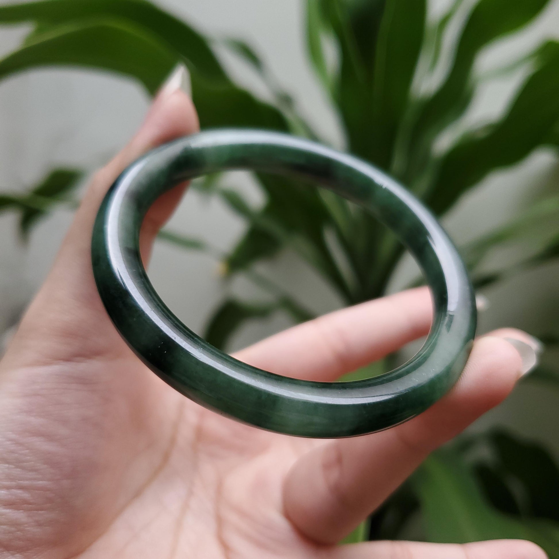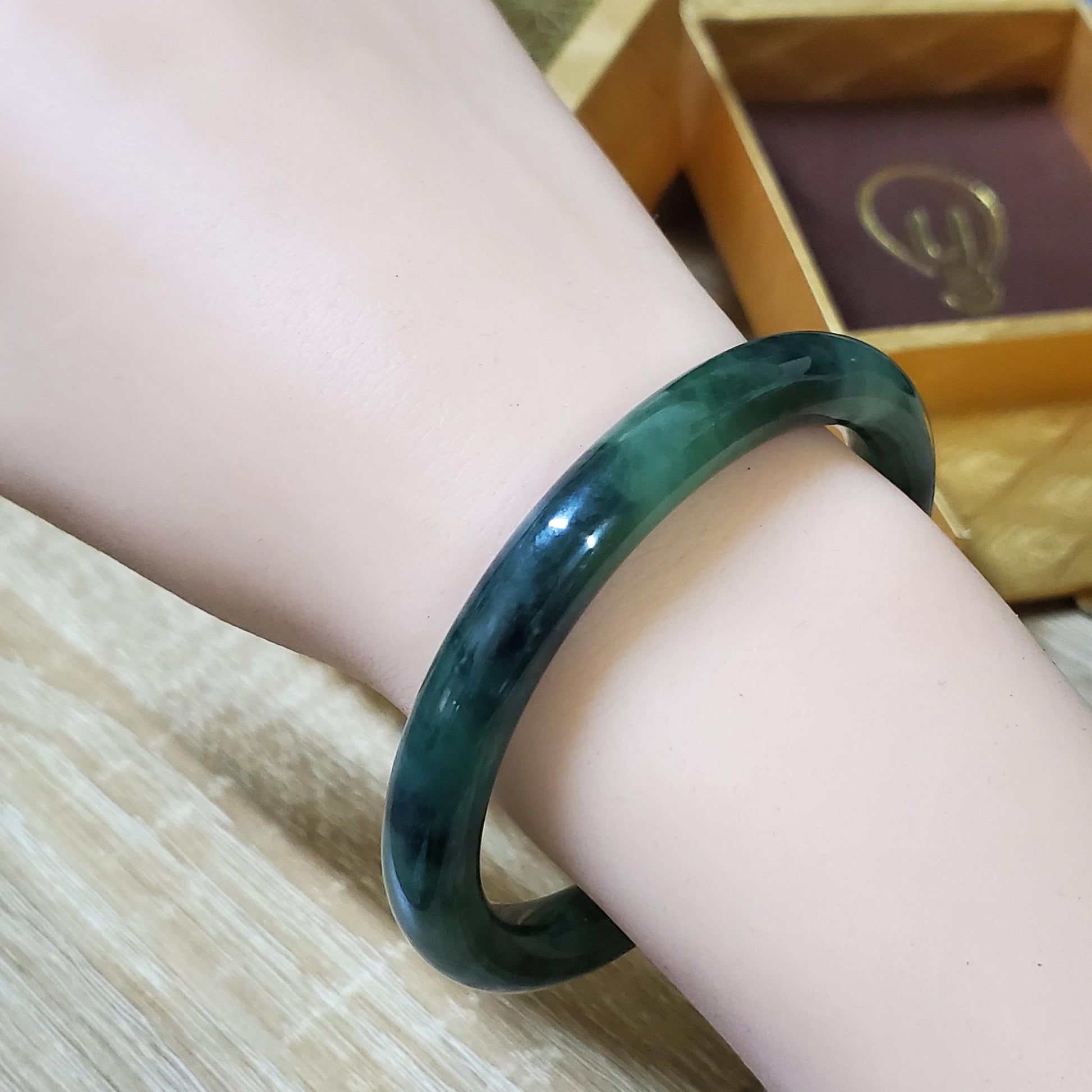 π Timeless Vintage Elegance: High Quality Green Olive Black jade bangle symbolising wealth, health & prosperity.