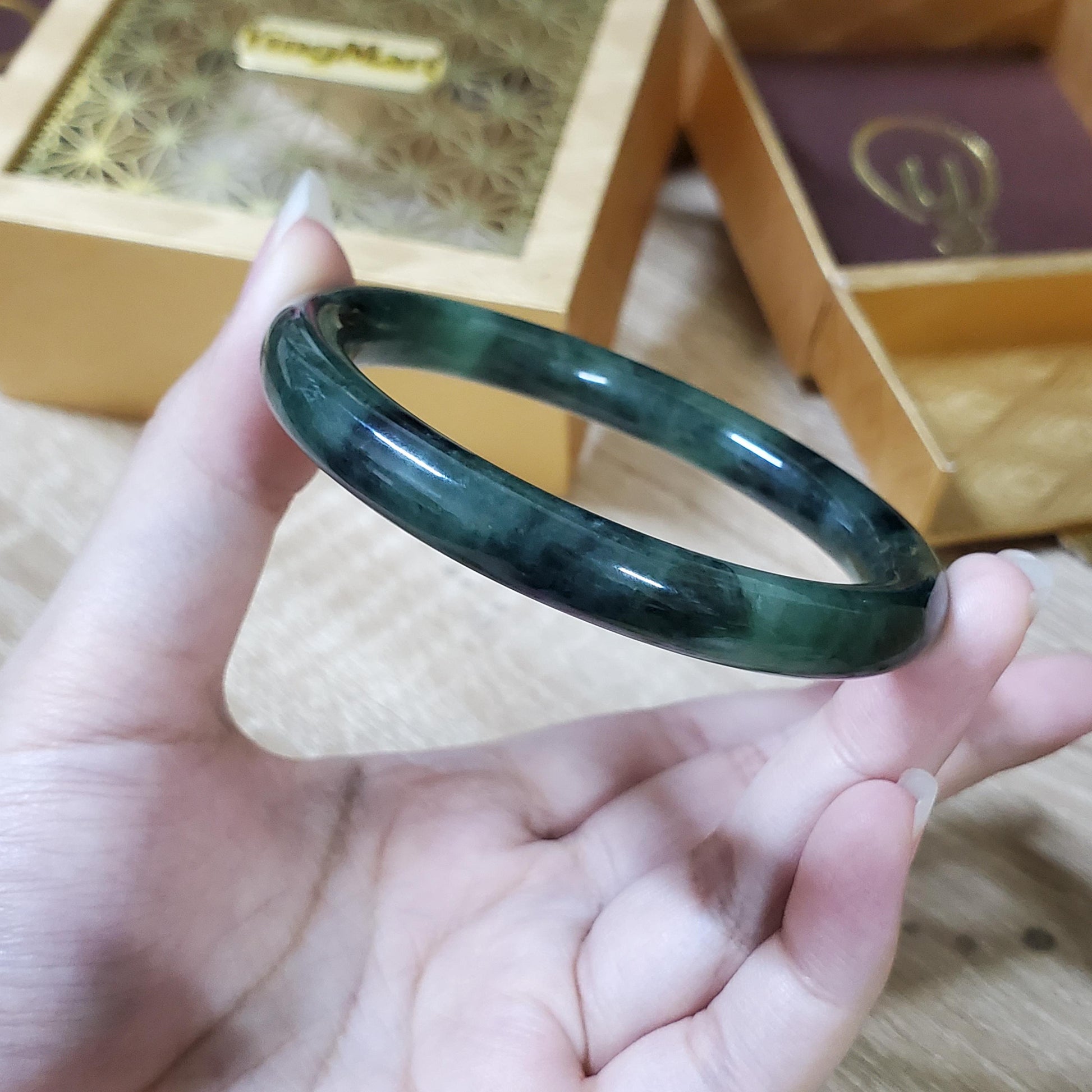 High Quality 48β60mm Jadeite Jade Round Green Olive Black YingMart Bangle Gift for Her Mother Mens Sister Feng Shui