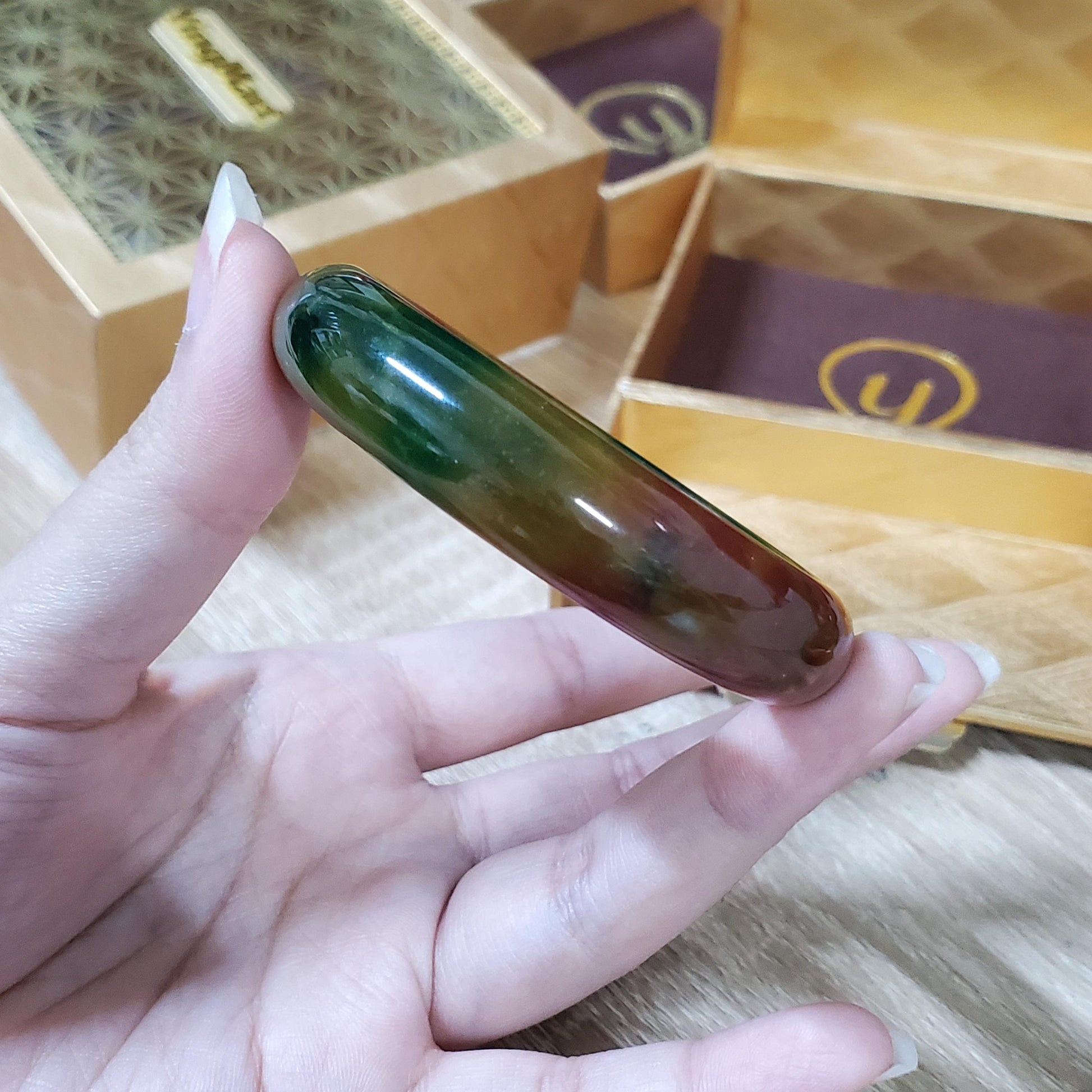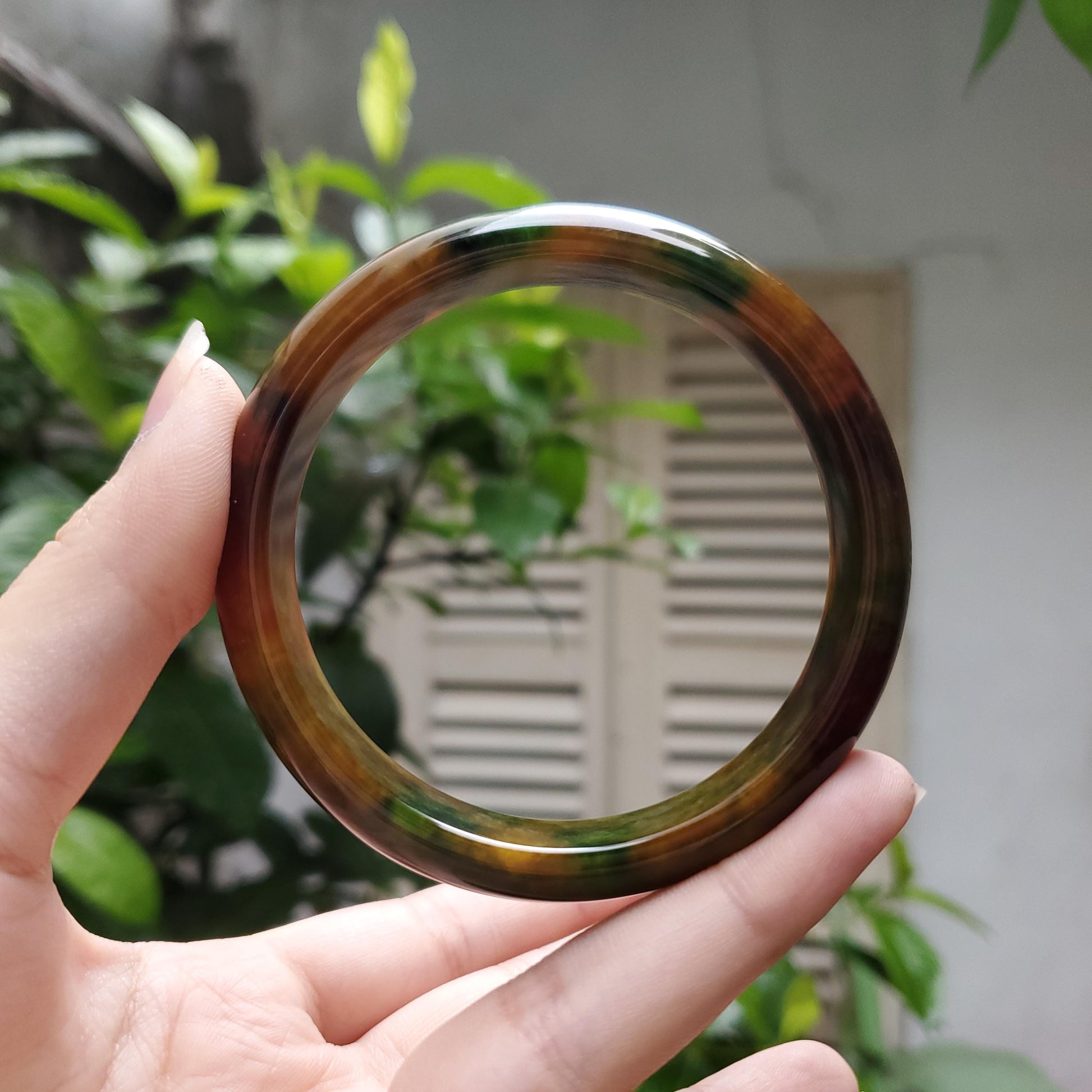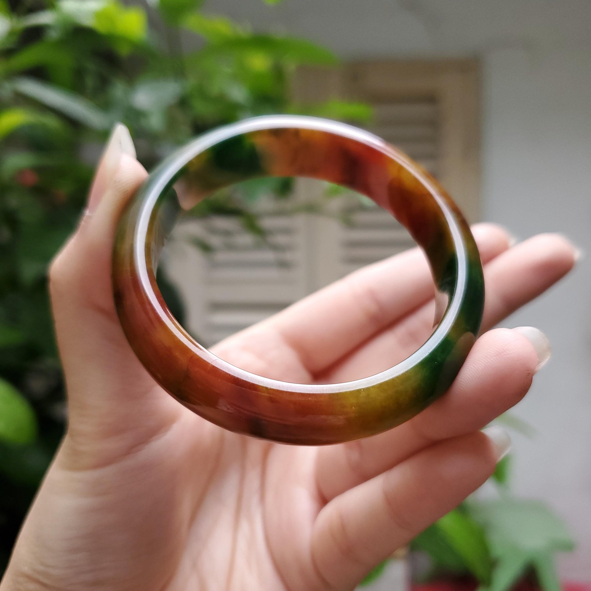 🎁 Timeless Vintage Elegance: High Quality Yellow Mix Red Green jade bangle symbolising wealth, health & prosperity.