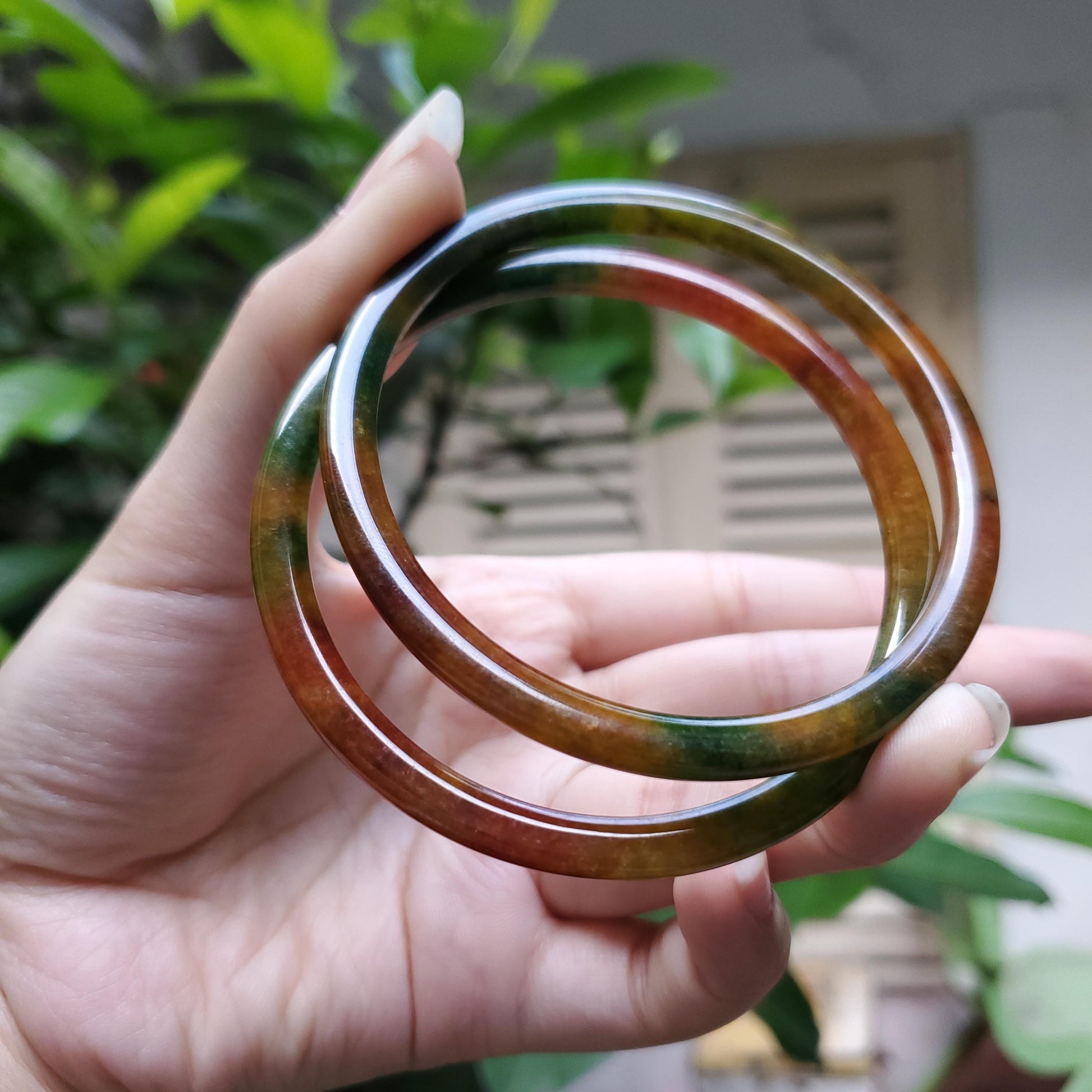 β This translucent jade bracelet naturally glows over time, reflecting your journey and balance. Its rounded outer shape and flat/rounded inner design offer classic comfort with vintage grace.