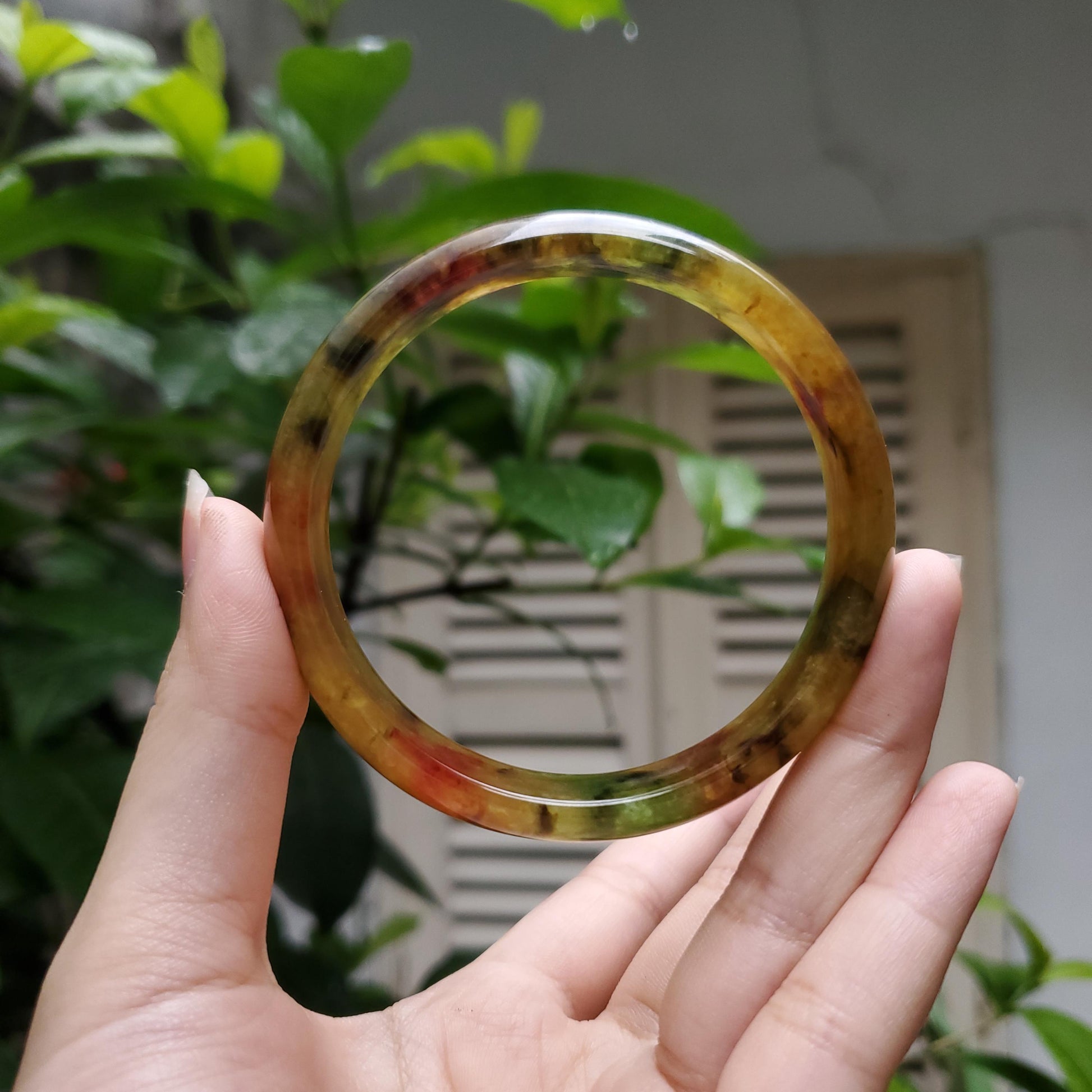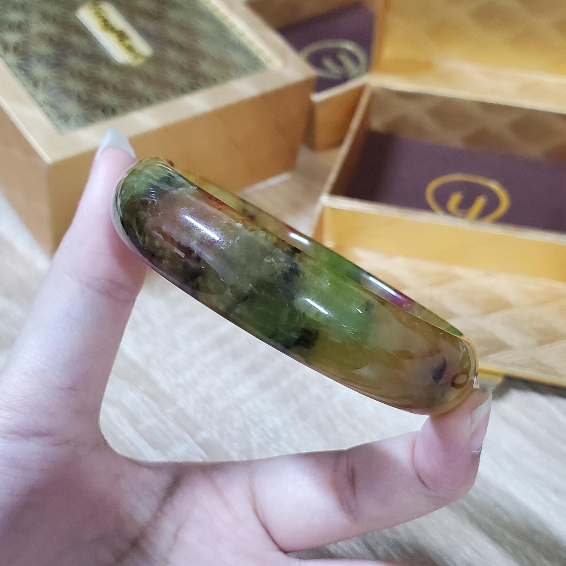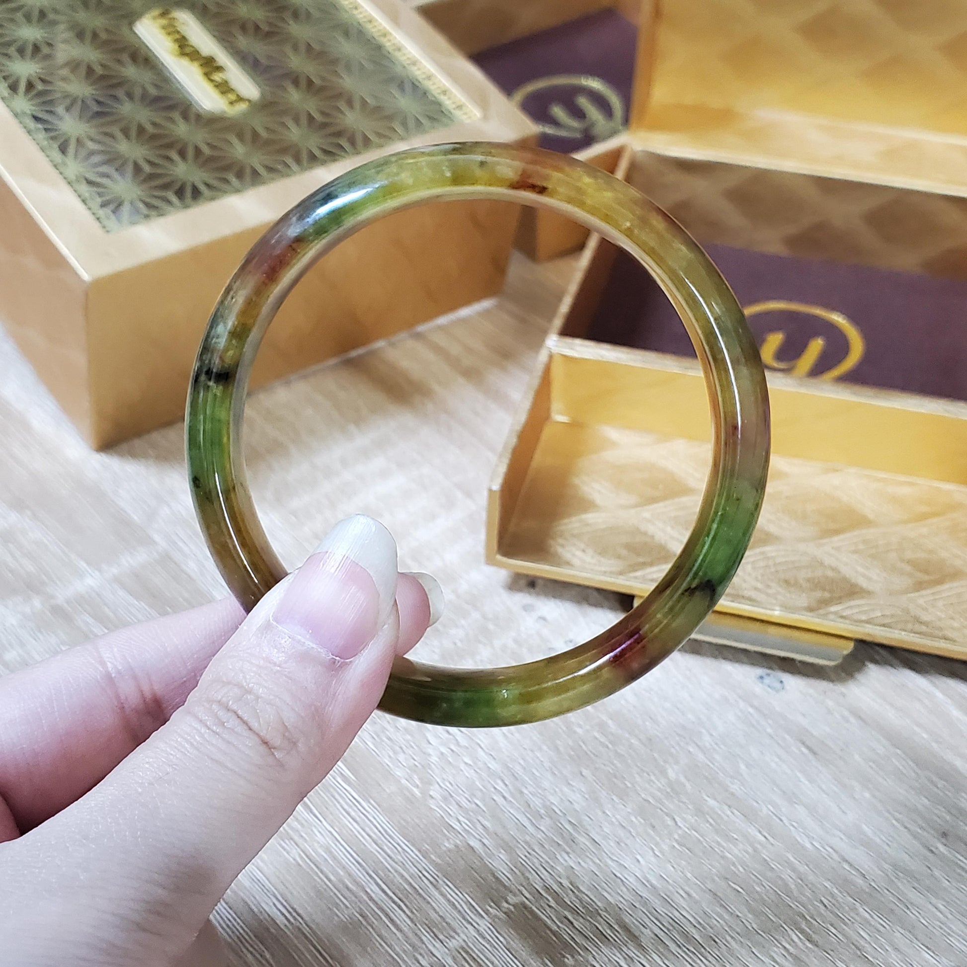 High Quality 48-72mm Jadeite Jade Bangle, Yellow Mixed Green Black Brown Spot, Burmese, D-Shape, Feng Shui Jewelry, Gift for Mom