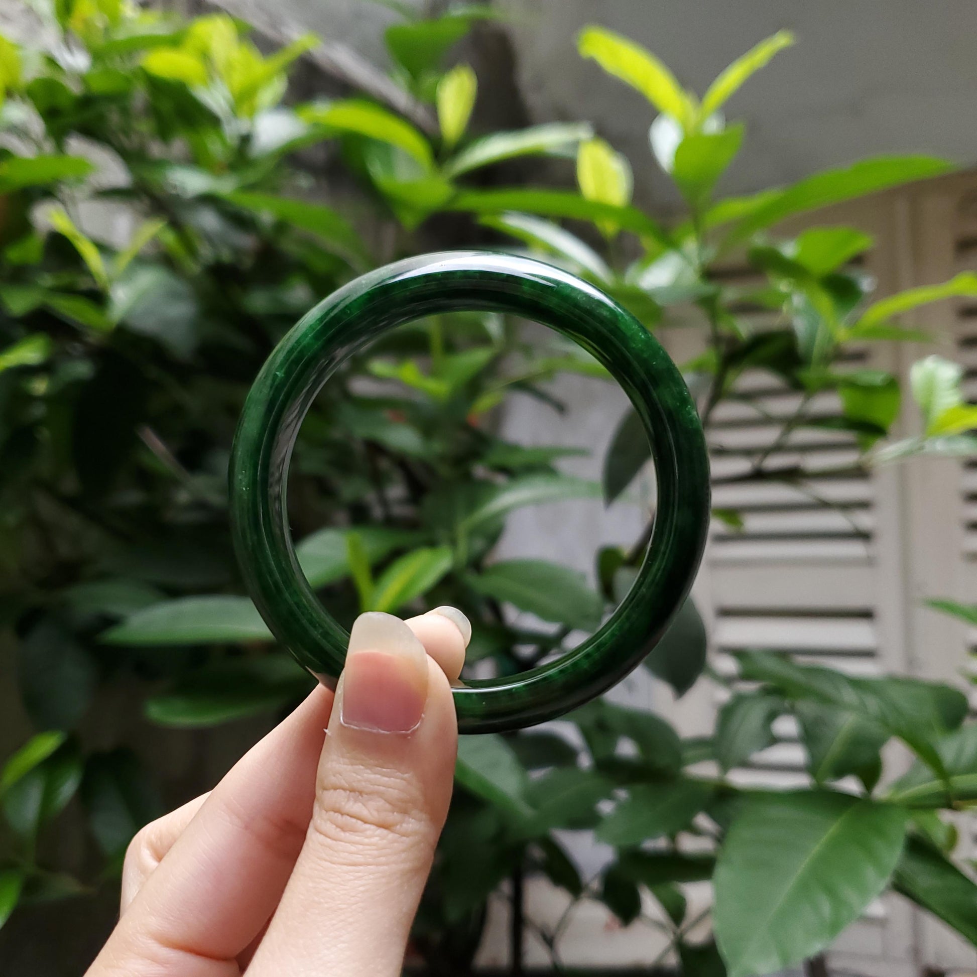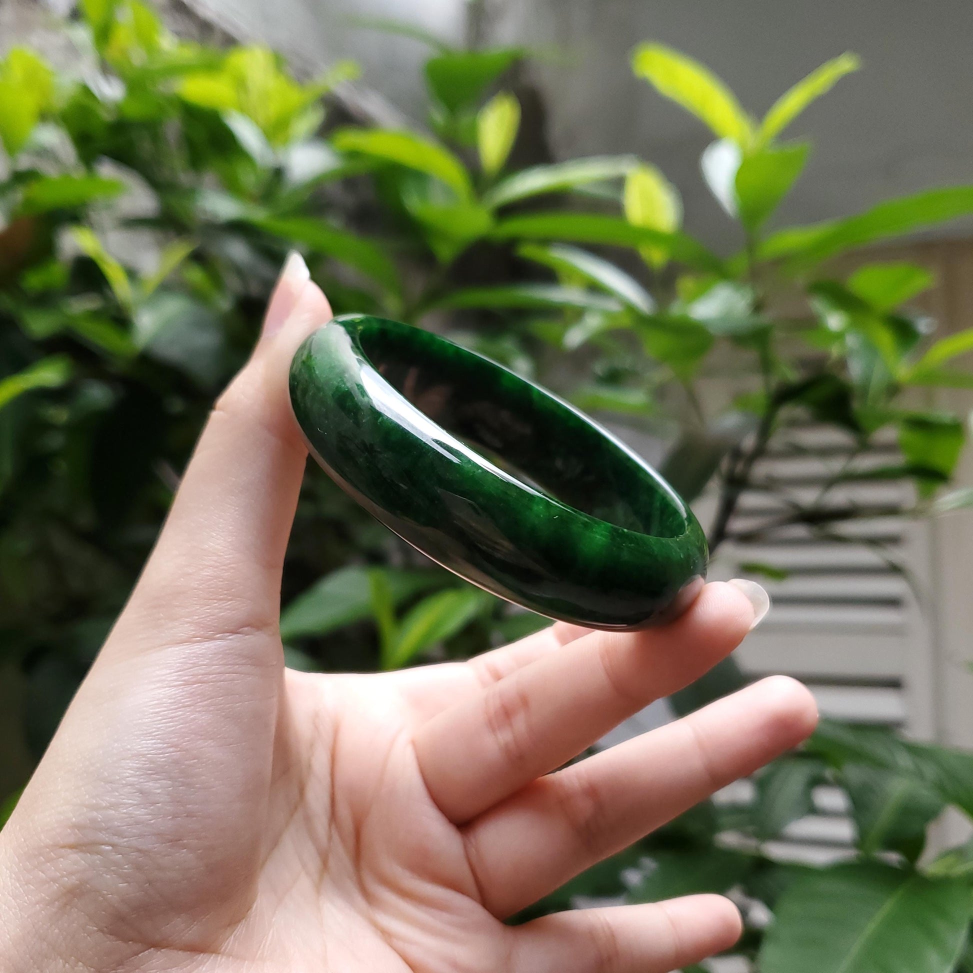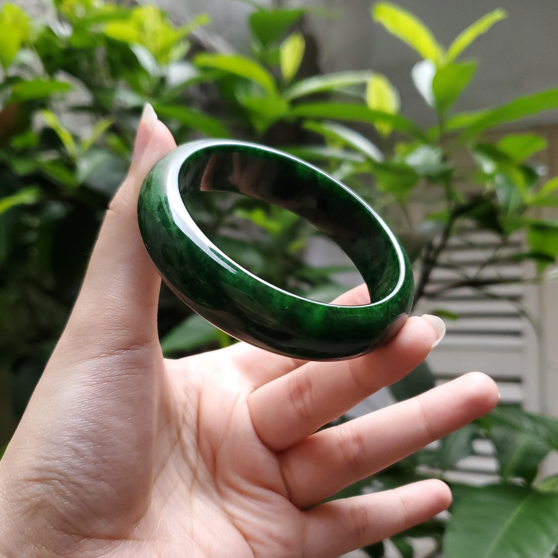 High Quality 48β72mm Jadeite Jade Dark Green Bangle Gift for Her Grandma Mens Mother Sister Feng Shui Personalized