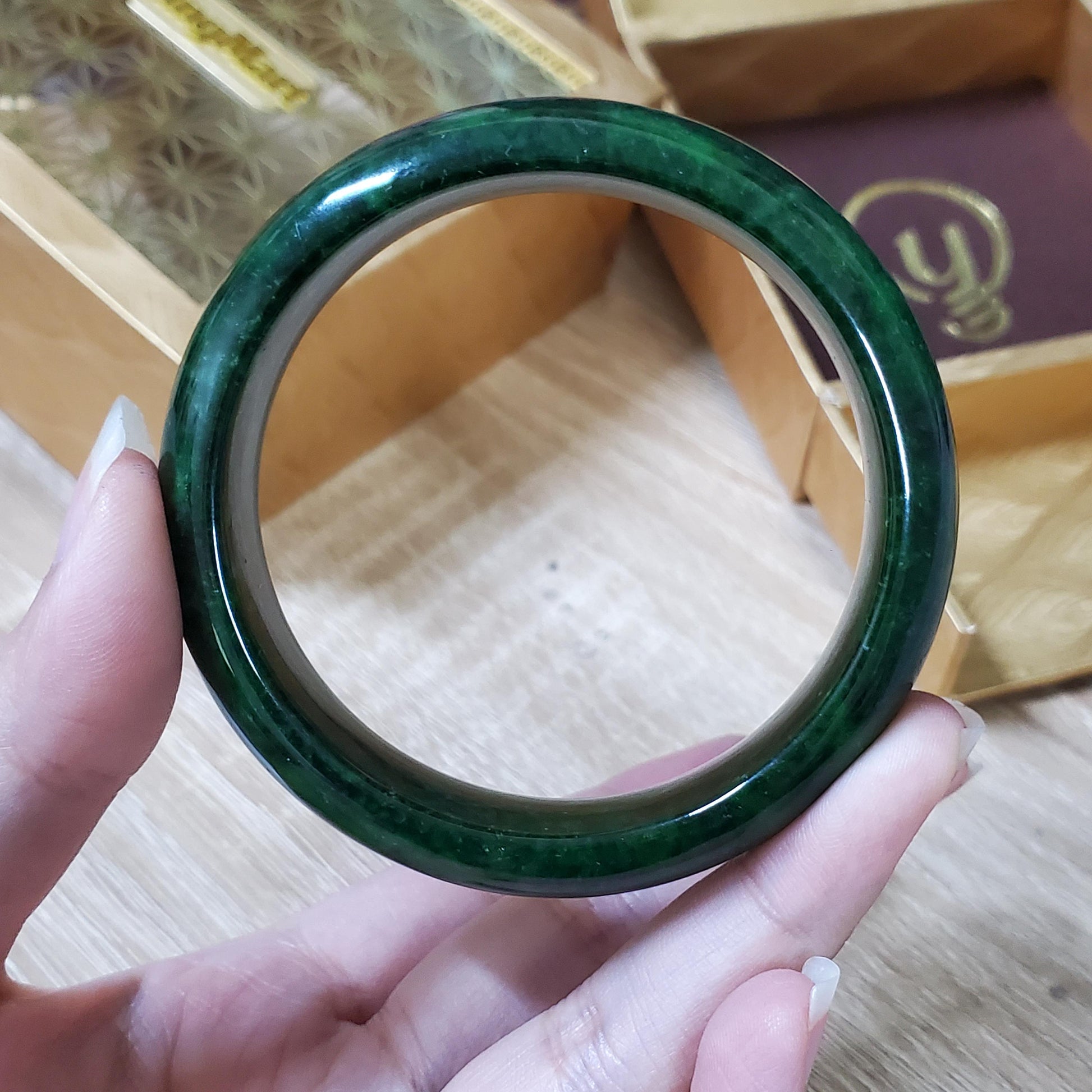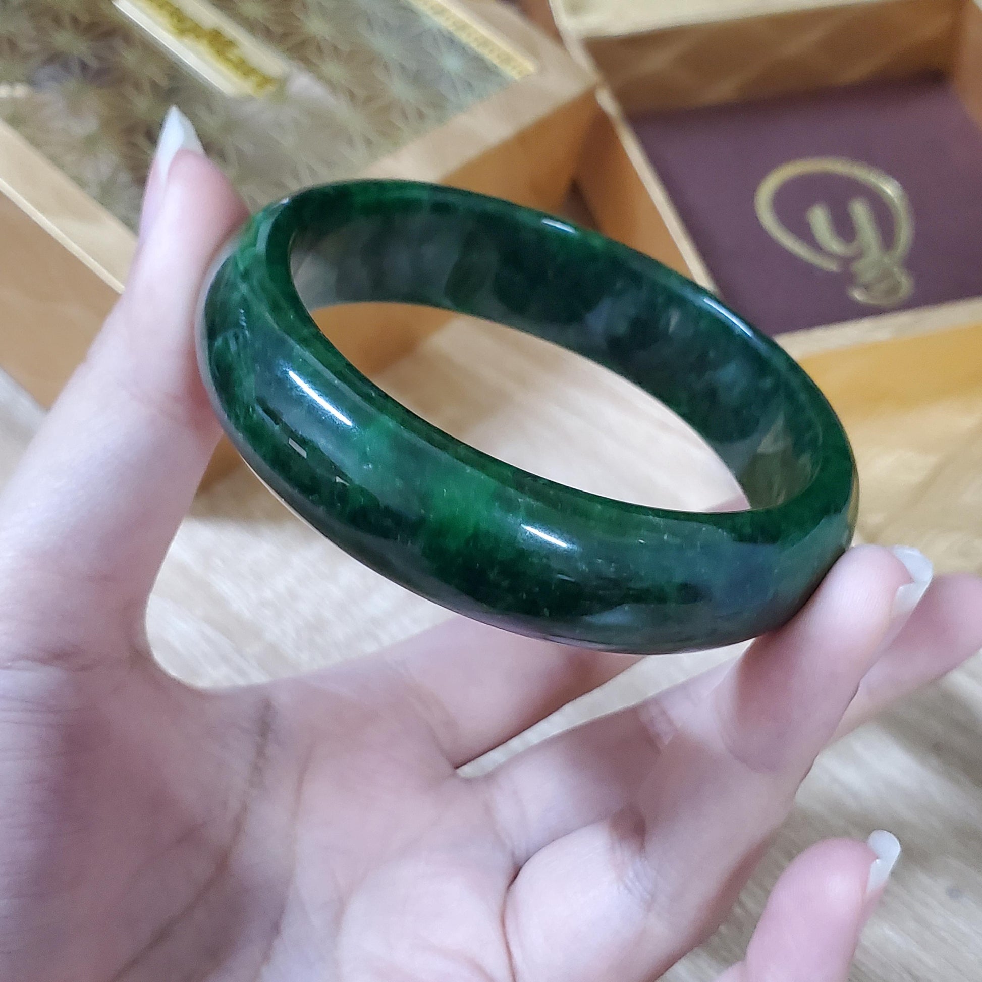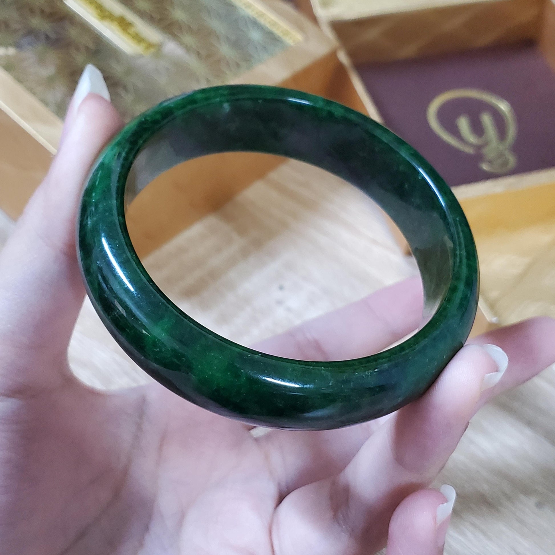 π Timeless Vintage Elegance: High Quality Dark Green jade bangle symbolising wealth, health & prosperity.