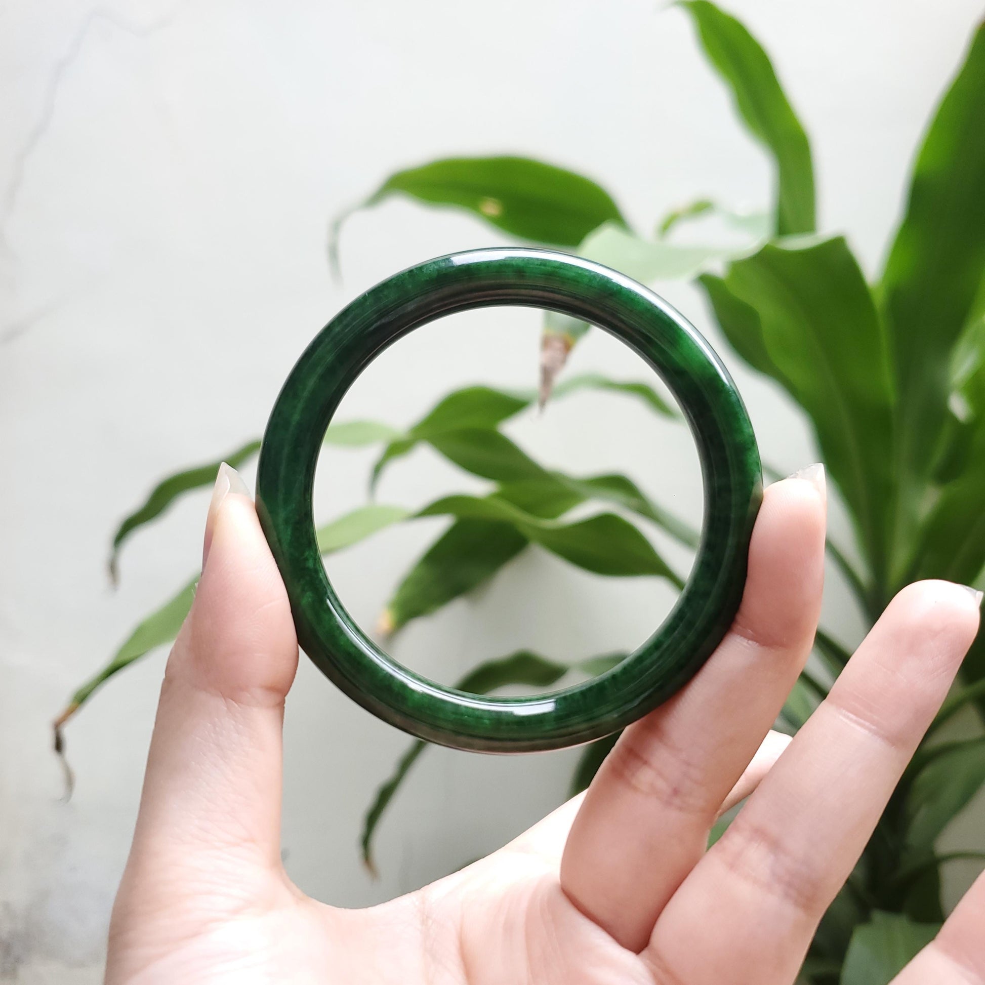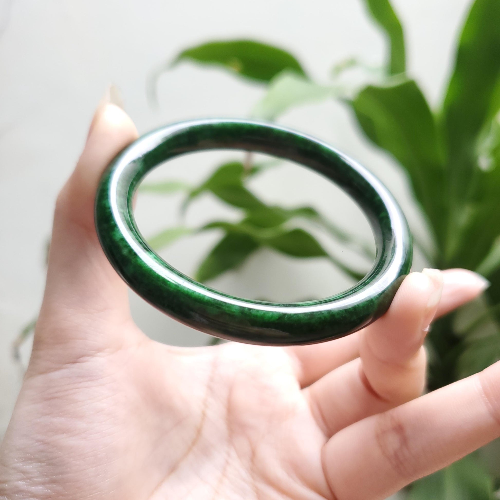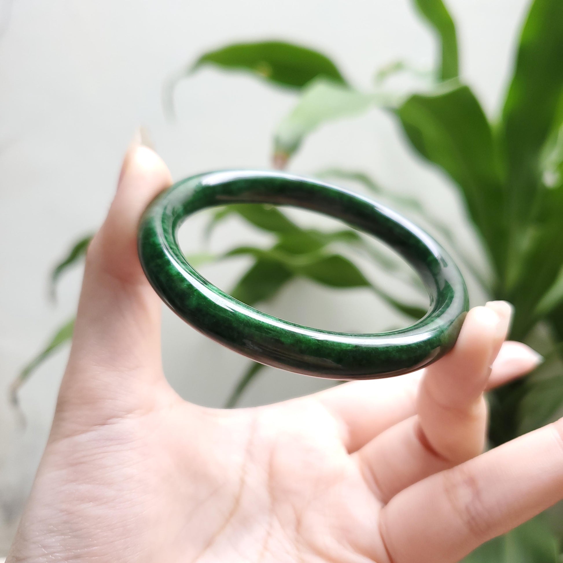π Timeless Vintage Elegance: High Quality Dark Green jade bangle symbolising wealth, health & prosperity.