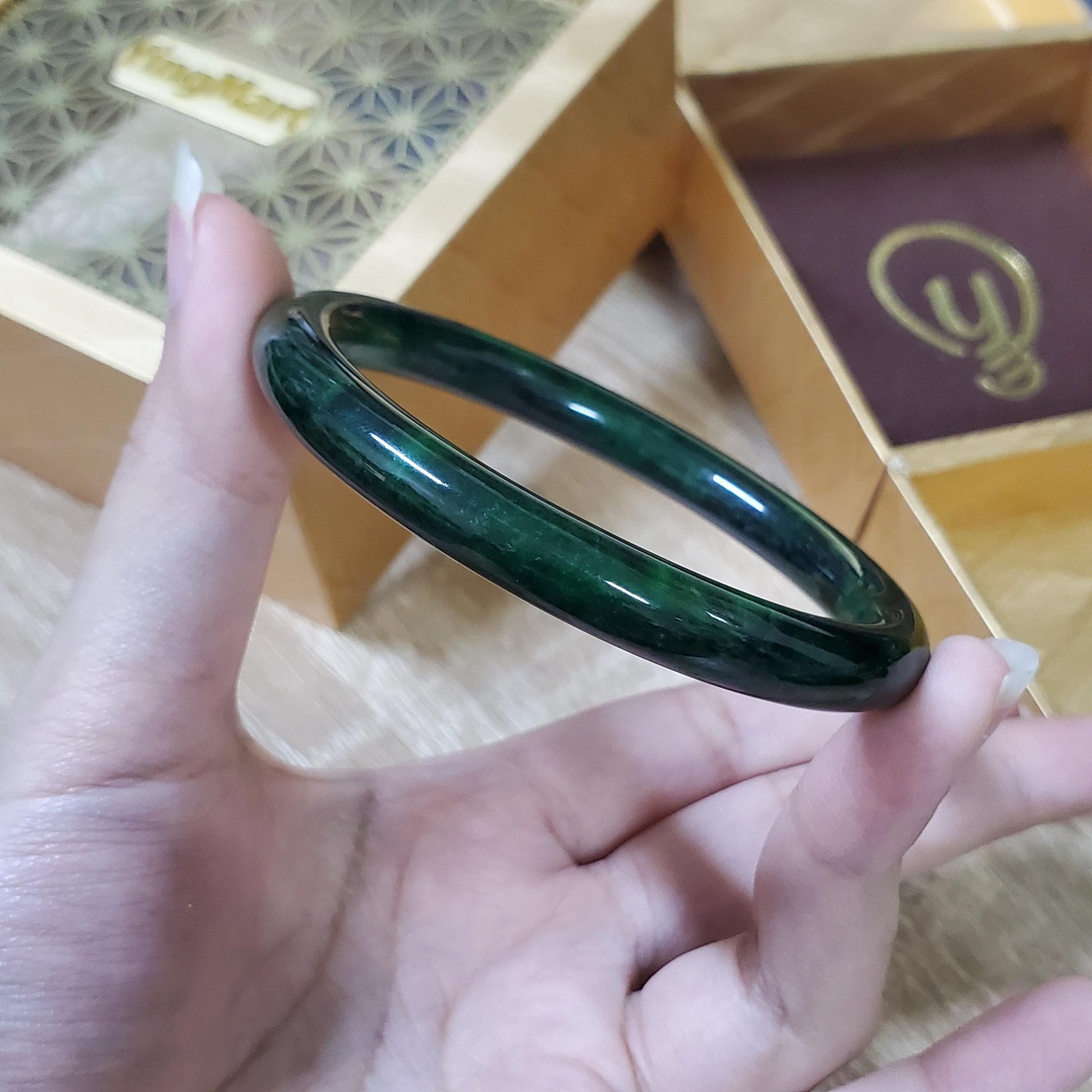 π Timeless Vintage Elegance: High Quality Dark Green jade bangle symbolising wealth, health & prosperity.