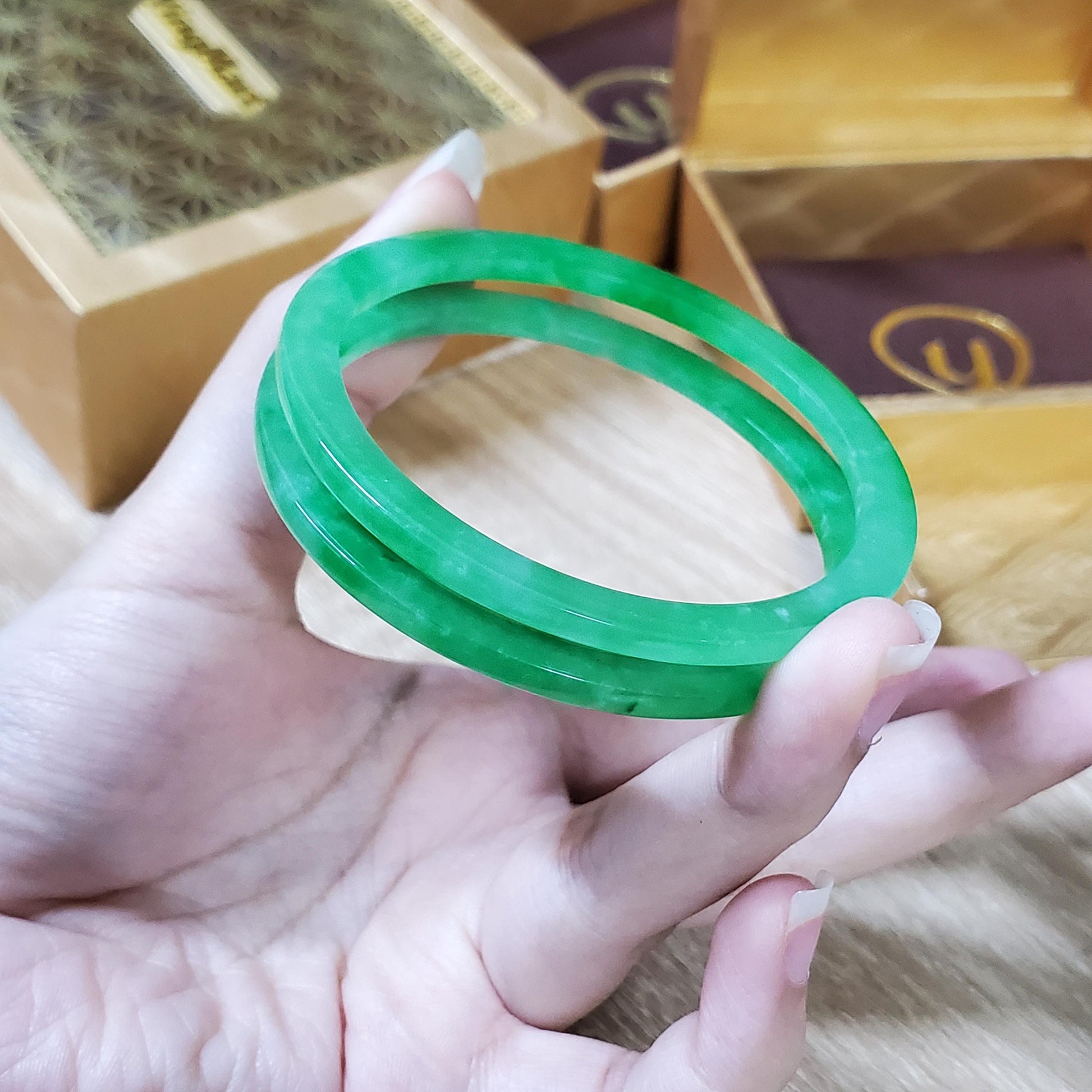 π Timeless Vintage Elegance: High Quality Green jade bangle symbolising wealth, health & prosperity.