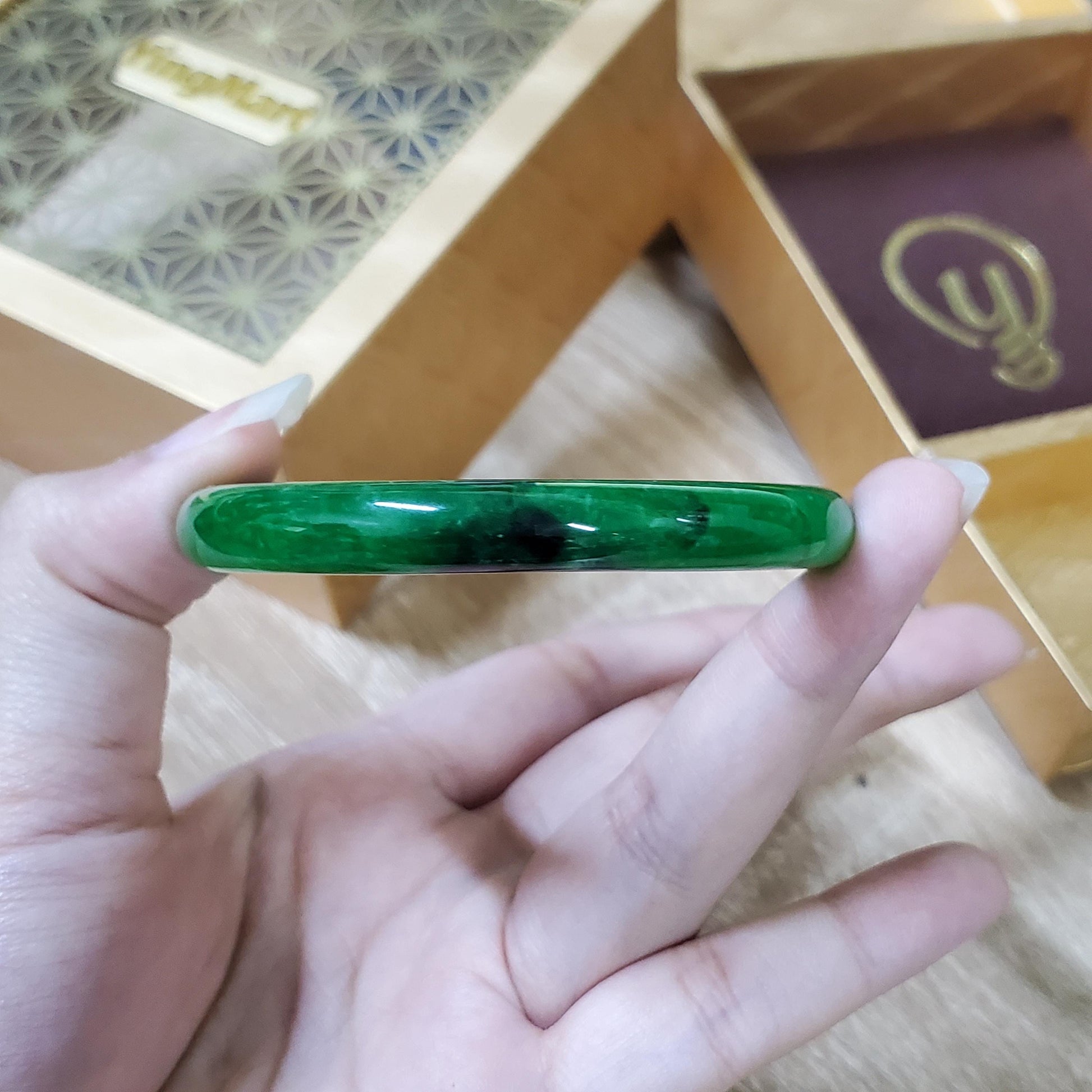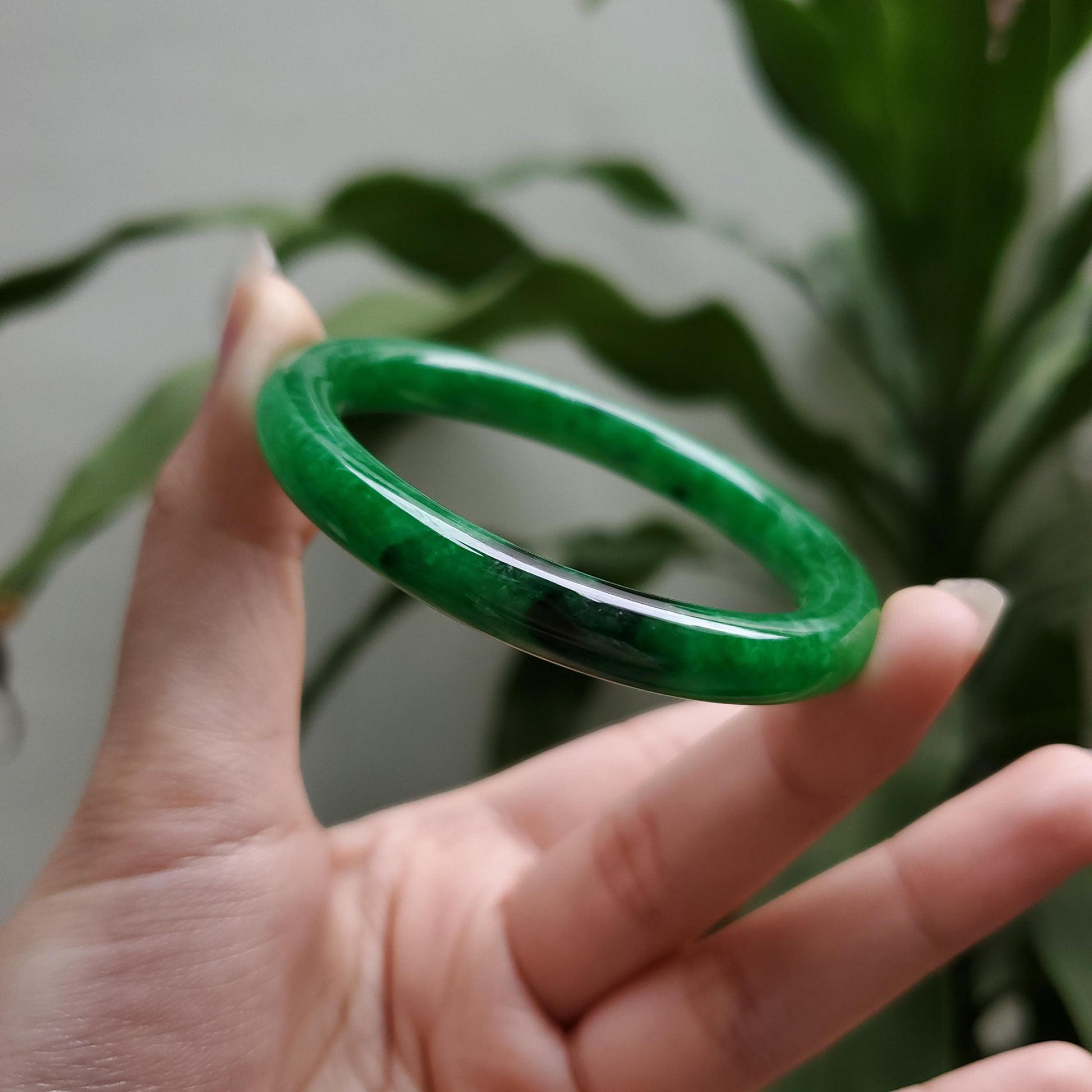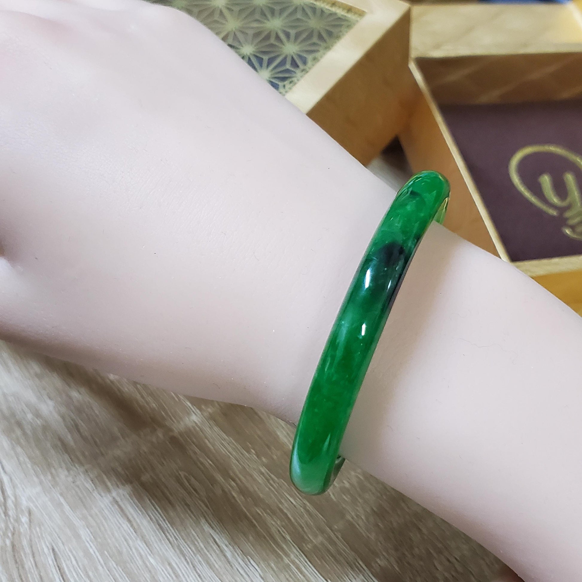 π Timeless Vintage Elegance: High Quality Green, Black Spot jade bangle symbolising wealth, health & prosperity.