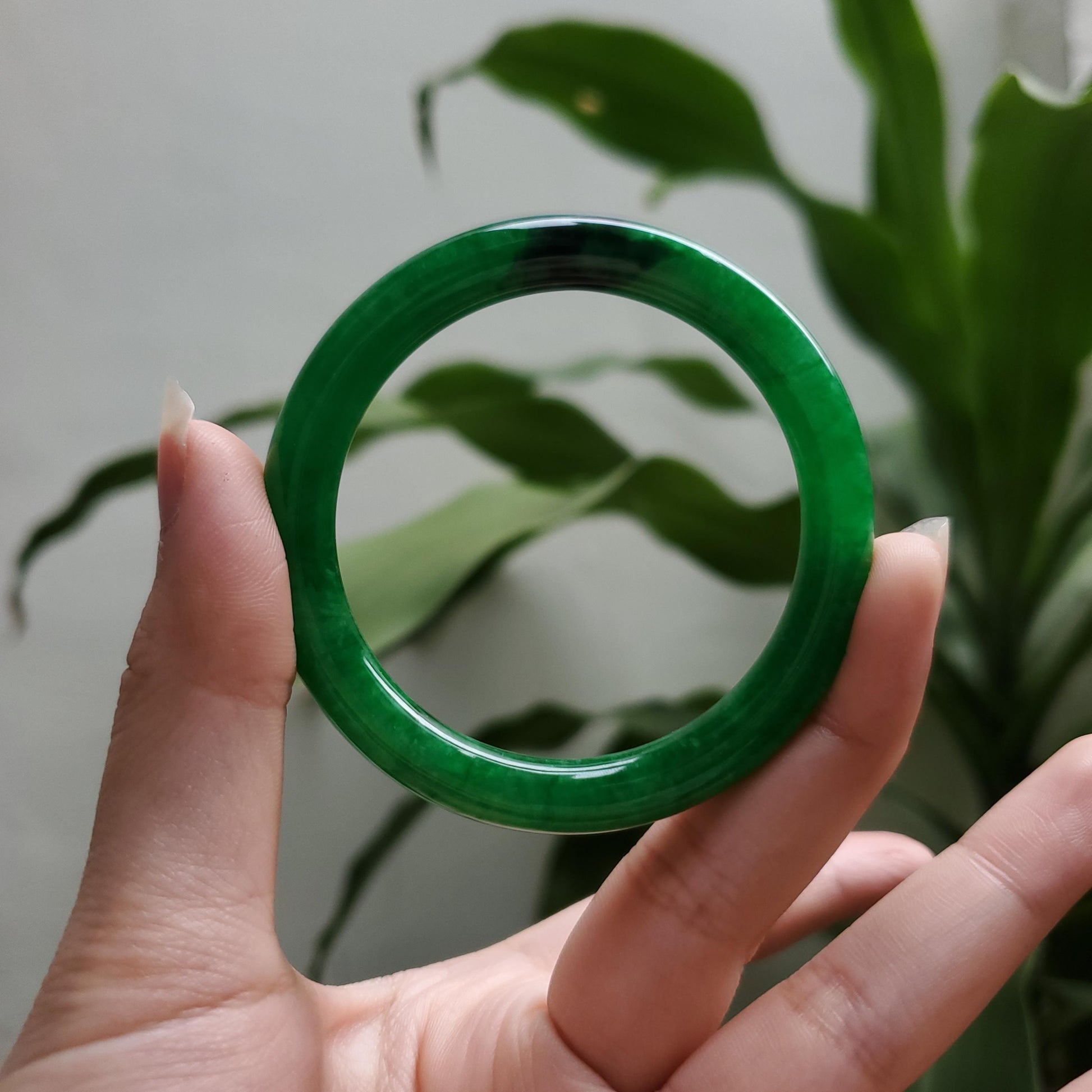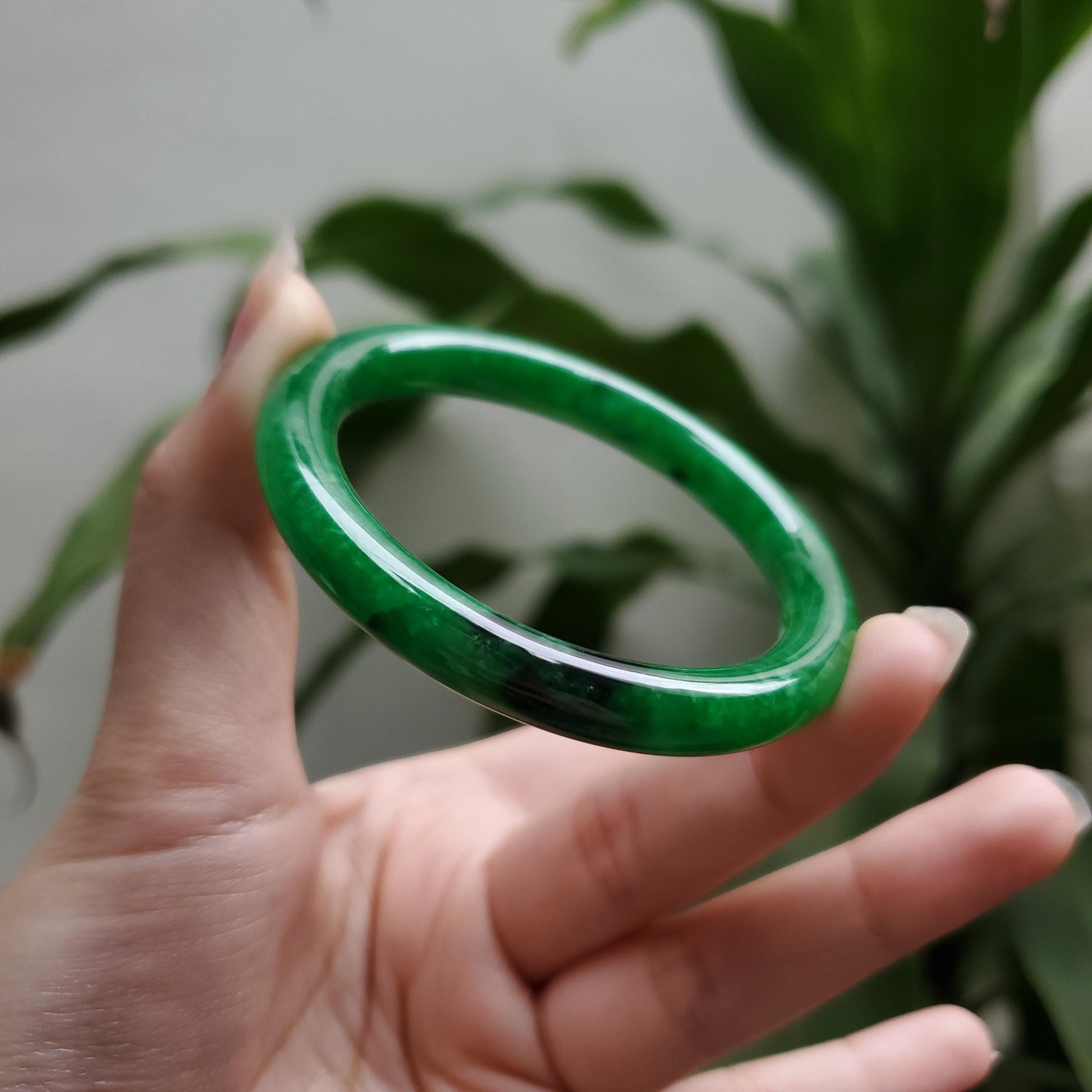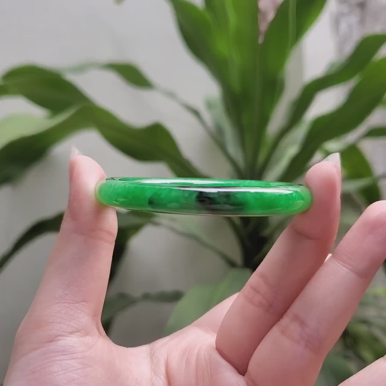 π Timeless Vintage Elegance: High Quality Green, Black Spot jade bangle symbolising wealth, health & prosperity.