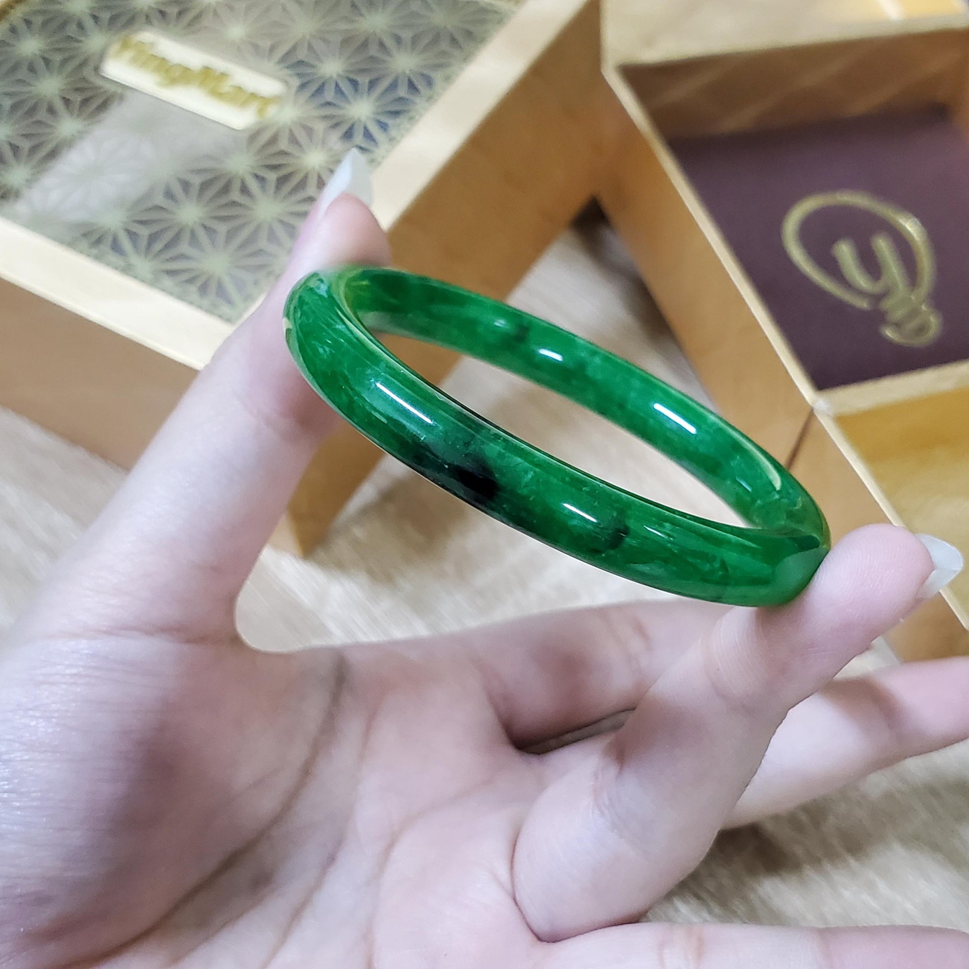 High Quality 48β72mm Jadeite Jade Green Black Spot YingMart Bangle Bracelets Gift for Her Mom Feng Shui Grandma Sister
