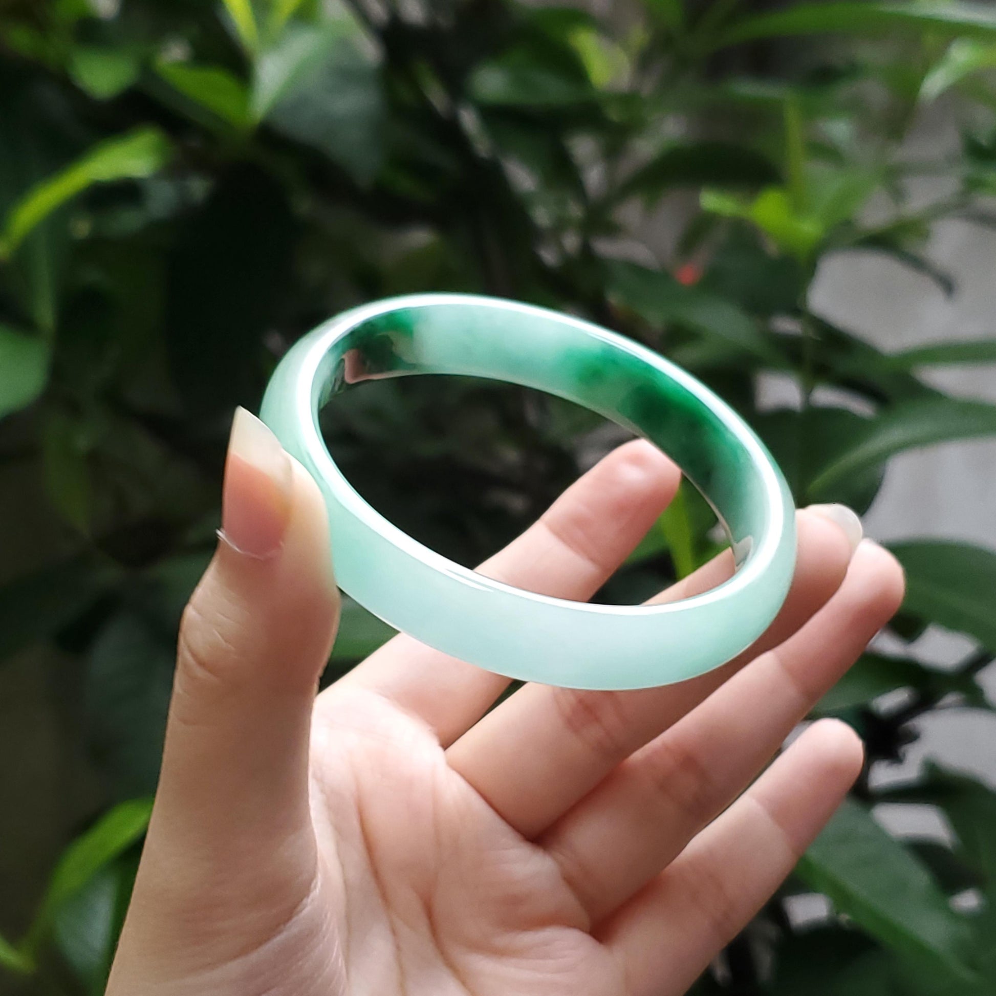π Timeless Vintage Elegance: High Quality Light Green to Green with black veins jade bangle symbolising wealth, health & prosperity.