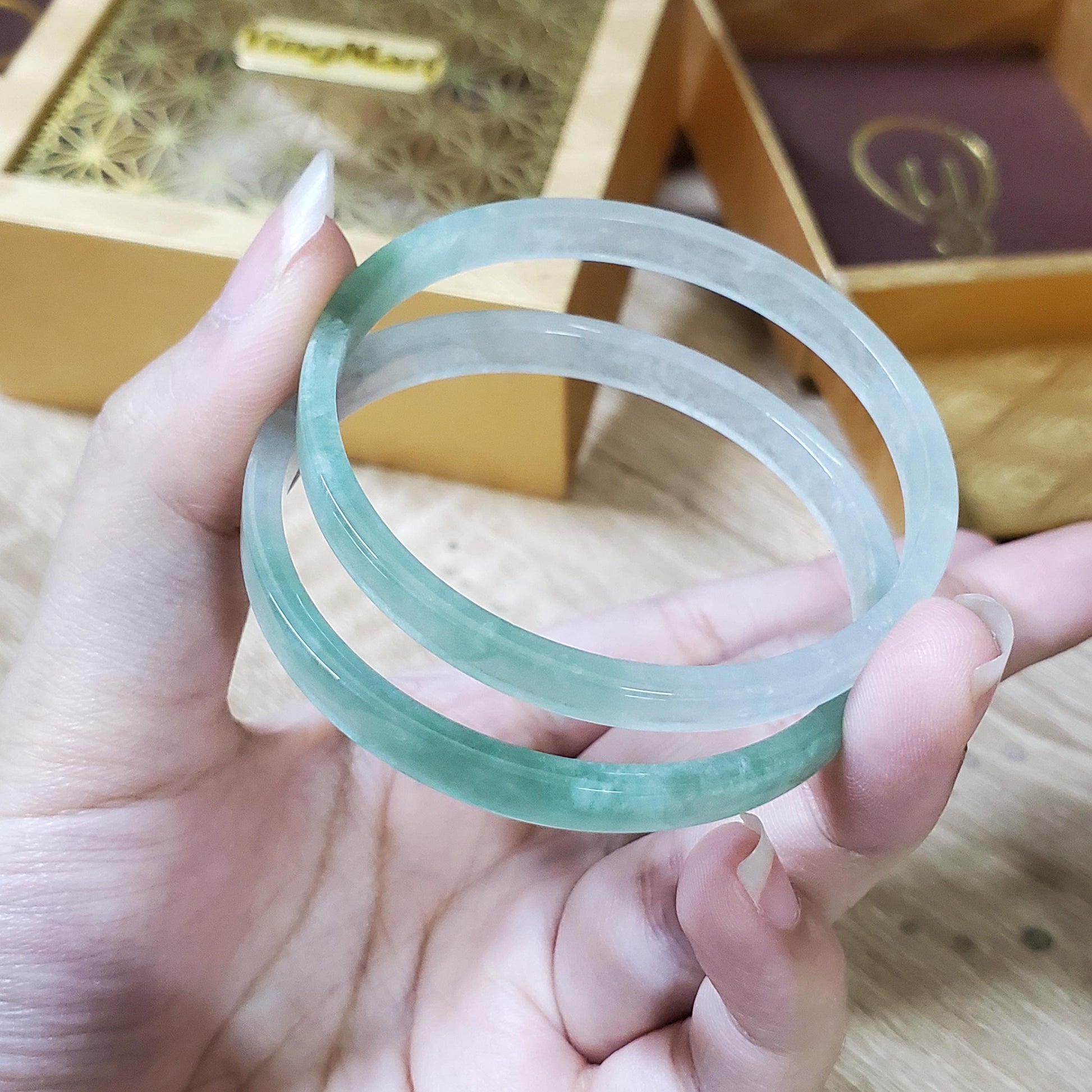 π Timeless Vintage Elegance: High Quality Green White jade bangle symbolising wealth, health & prosperity.