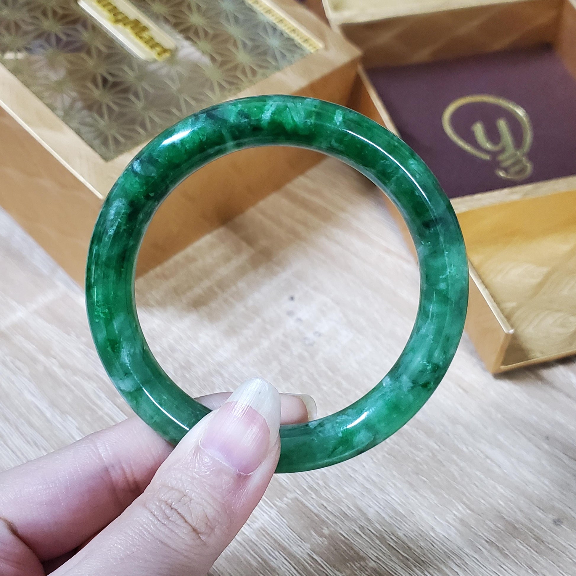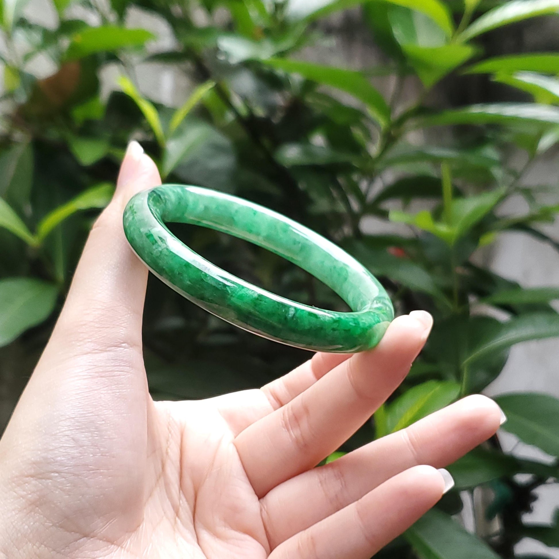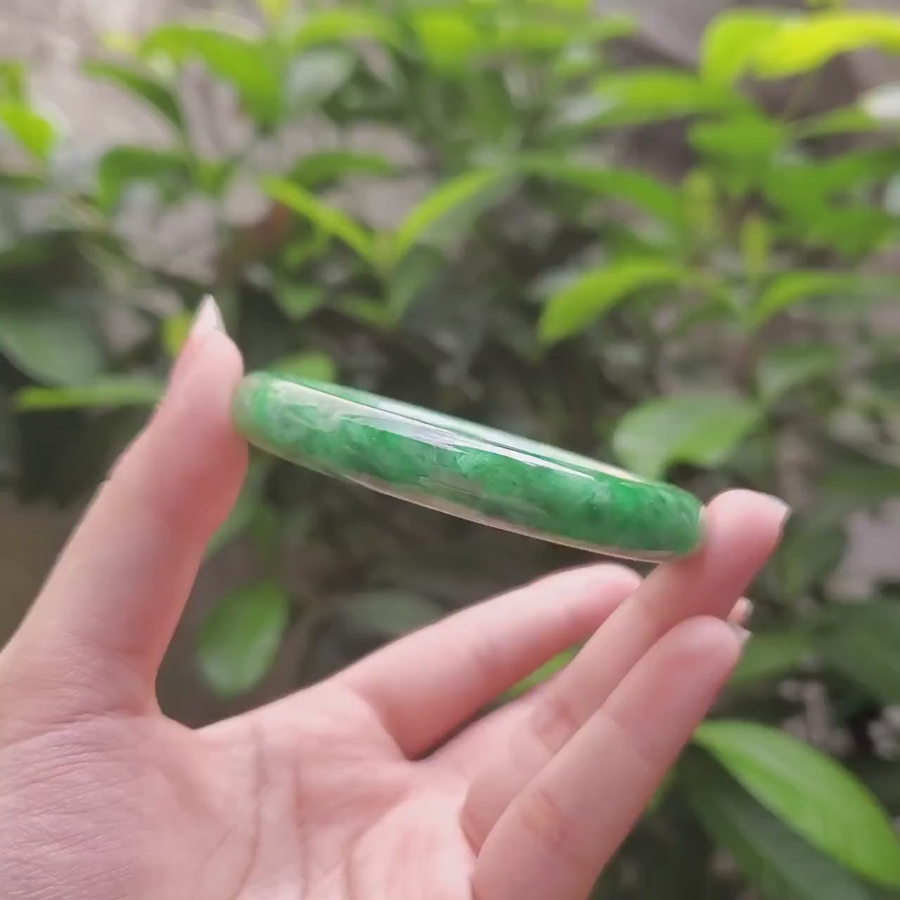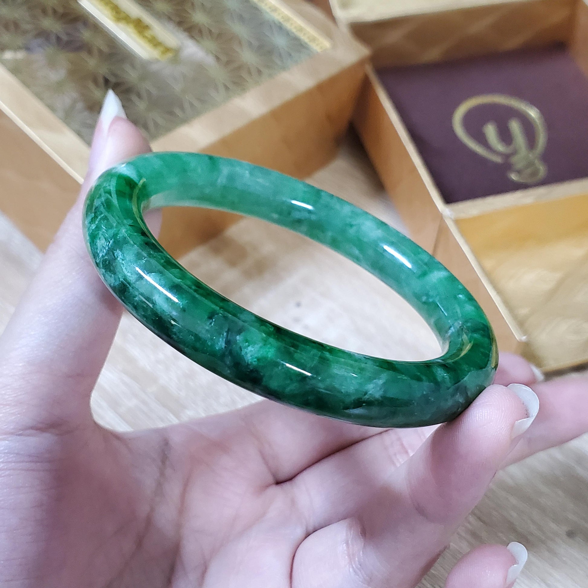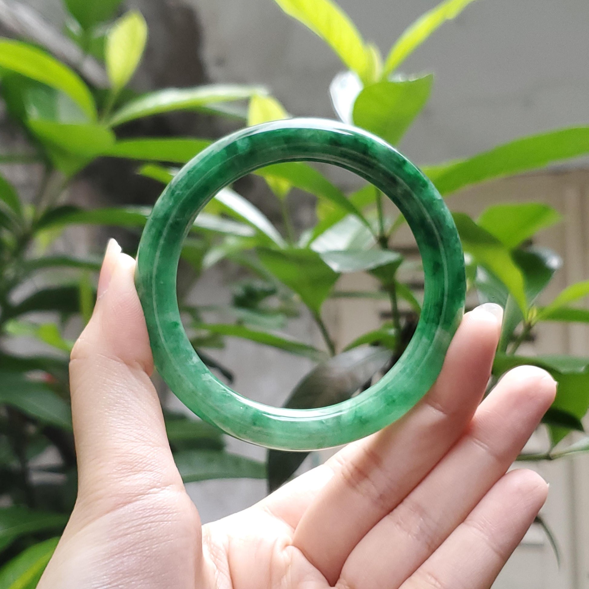 π Timeless Vintage Elegance: High Quality Light Green to Green with white veins jade bangle symbolising wealth, health & prosperity.