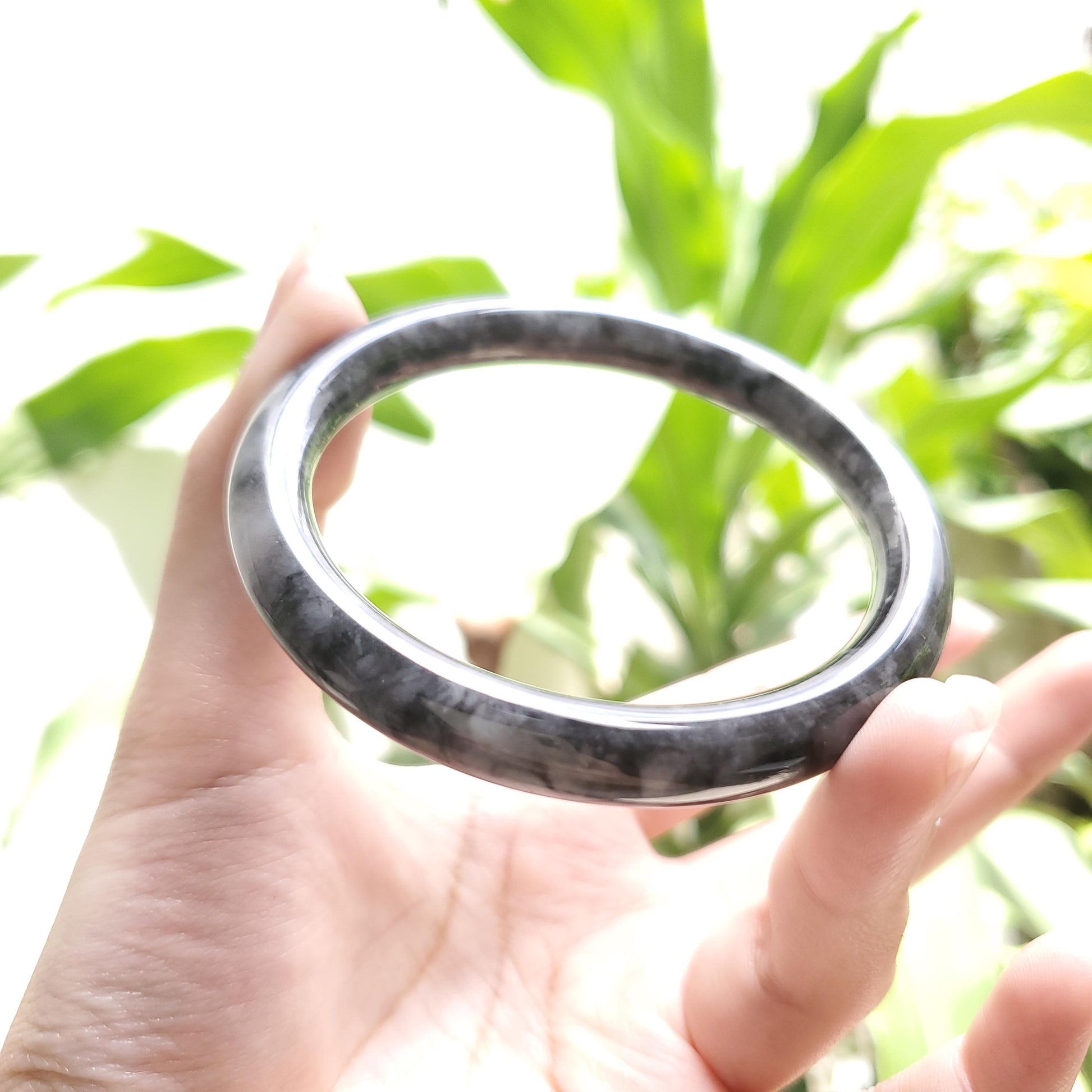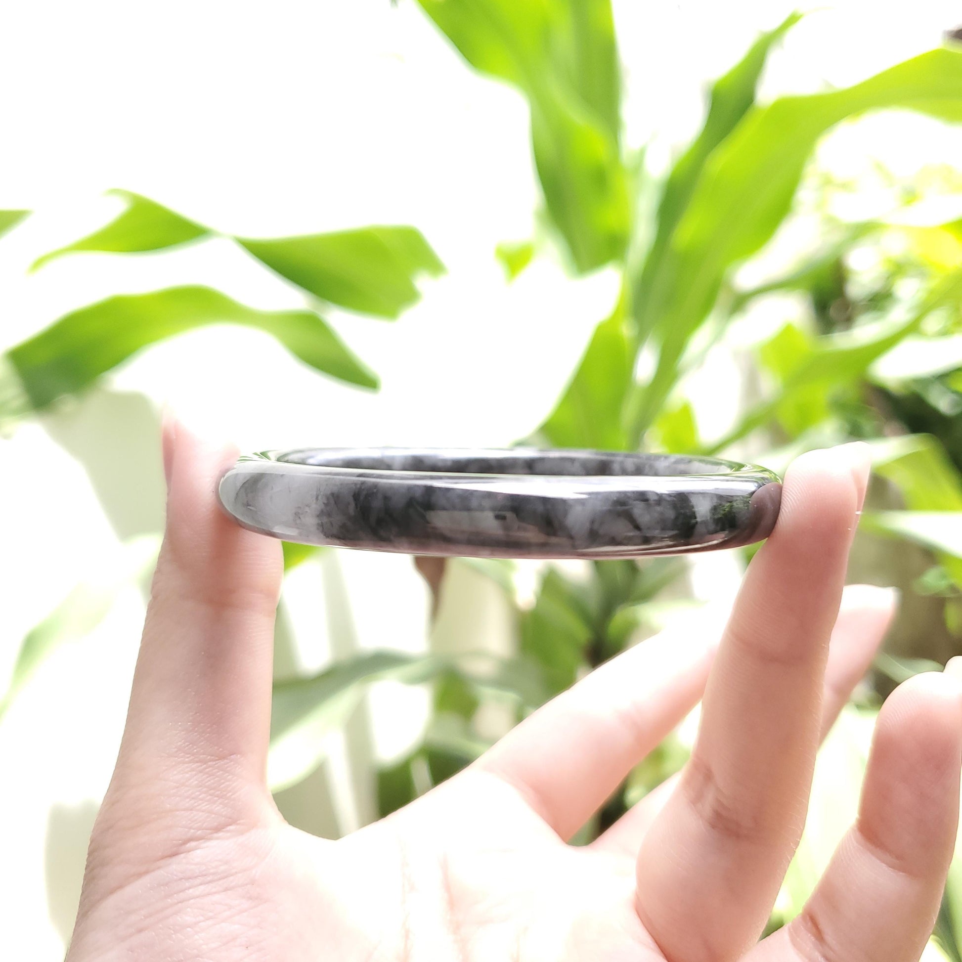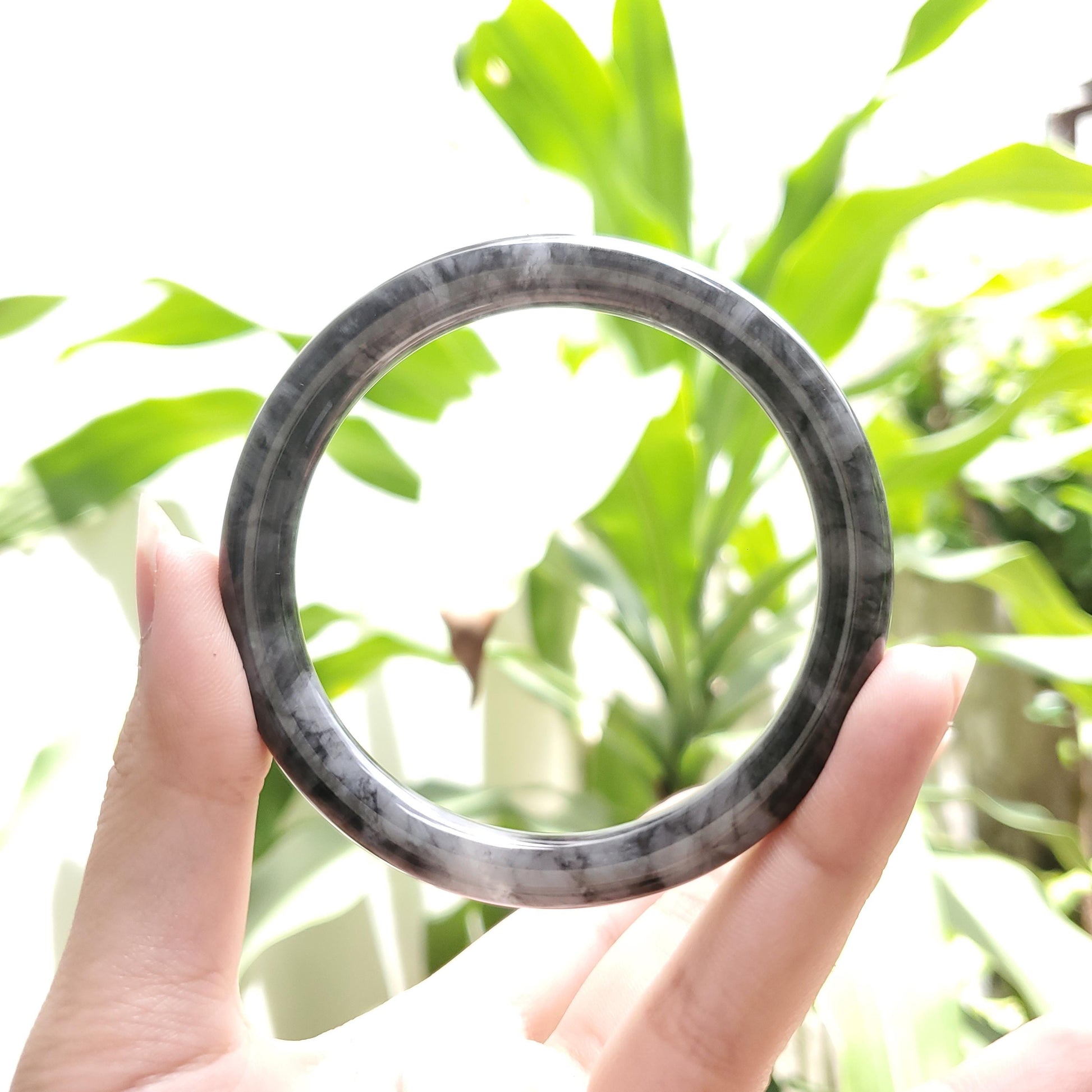 High Quality 48β72mm Jadeite Jade Grey White Black Bangle Gift for Her Grandma Mother Mens Sister Feng Shui Personalized