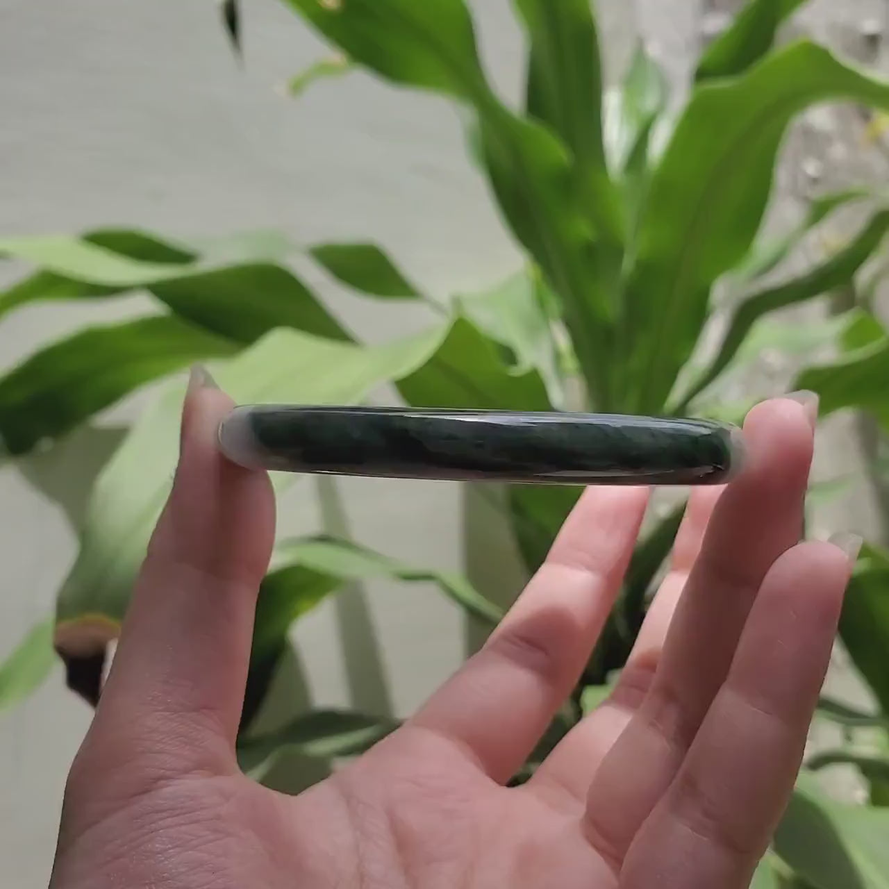 π Timeless Vintage Elegance: High Quality Grey White jade bangle symbolising wealth, health & prosperity.