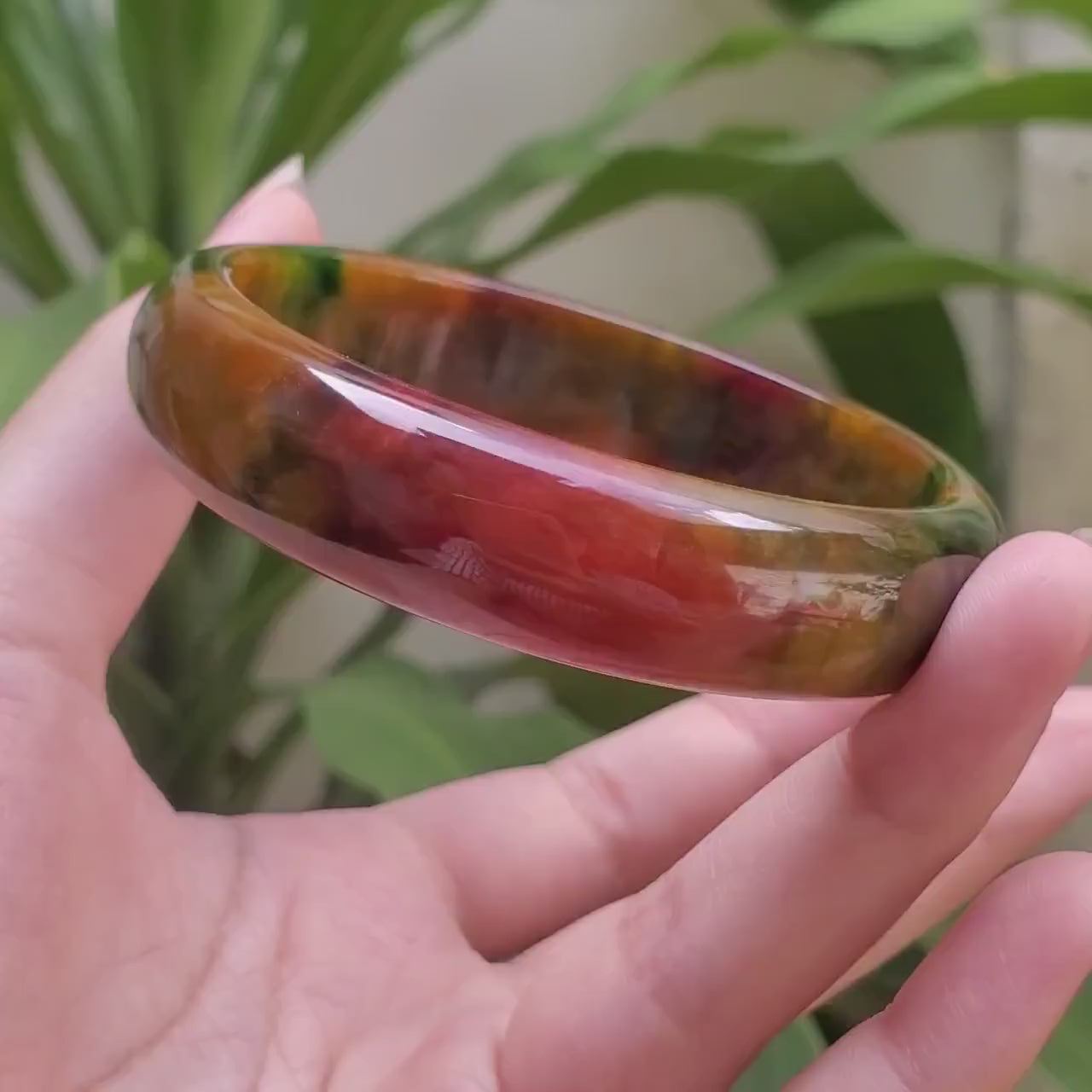 π Timeless Vintage Elegance: High Quality Orange Yellow Mixed Green/Black Veins jade bangle symbolising wealth, health & prosperity.