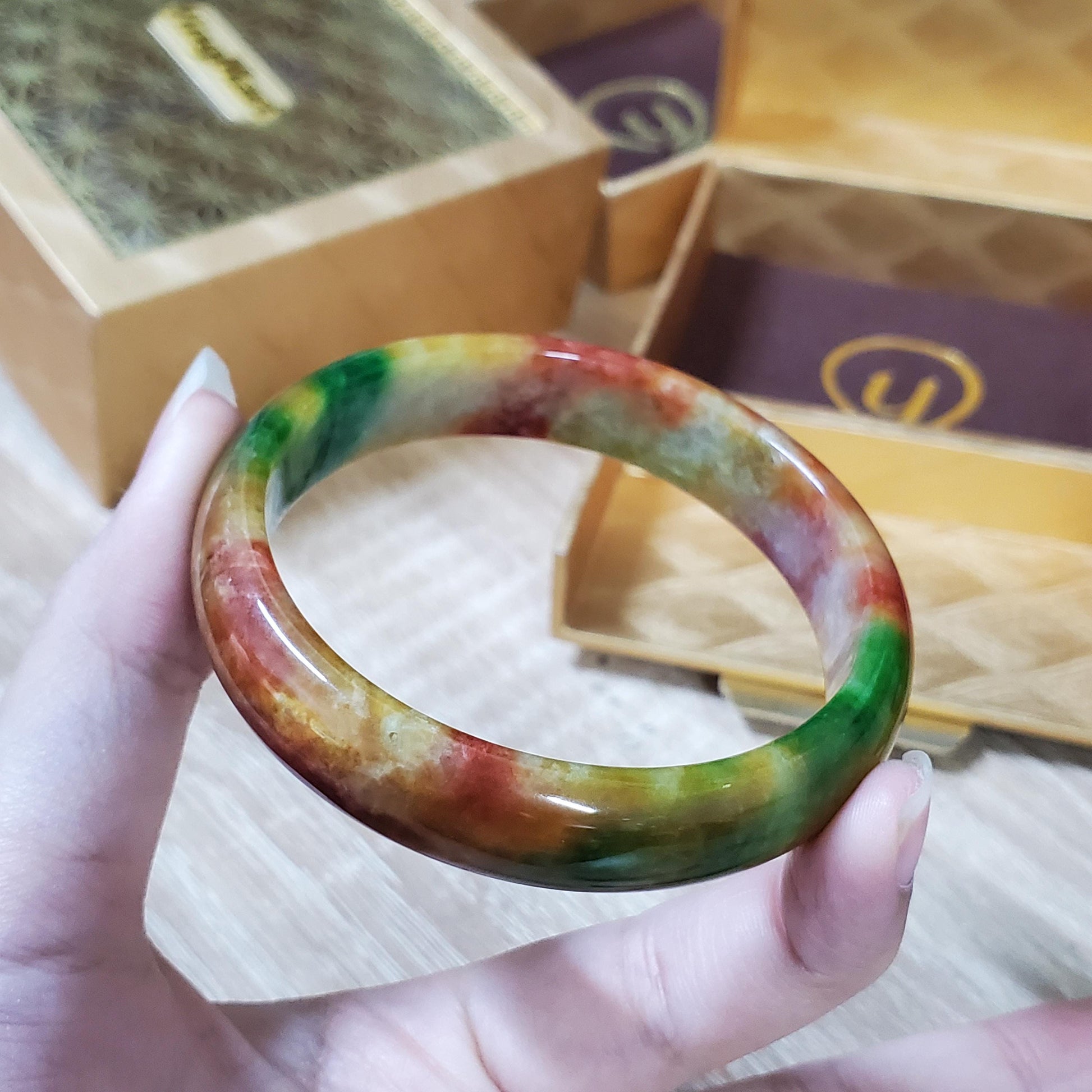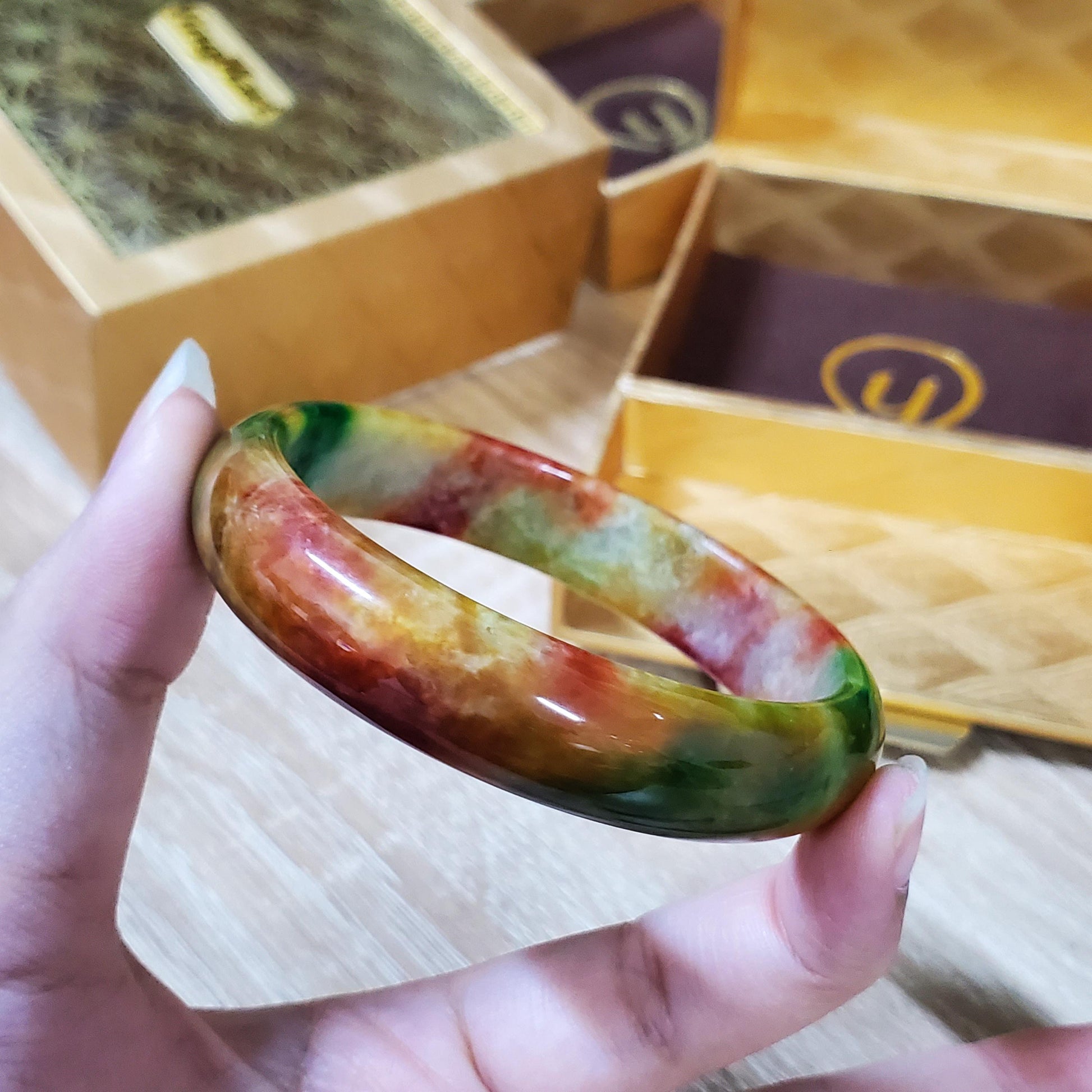 High Quality 48β72mm Jadeite Jade Orange Yellow Green Spot Bangle Gift for Her Mom Grandma Feng Shui Personalized Jewelry