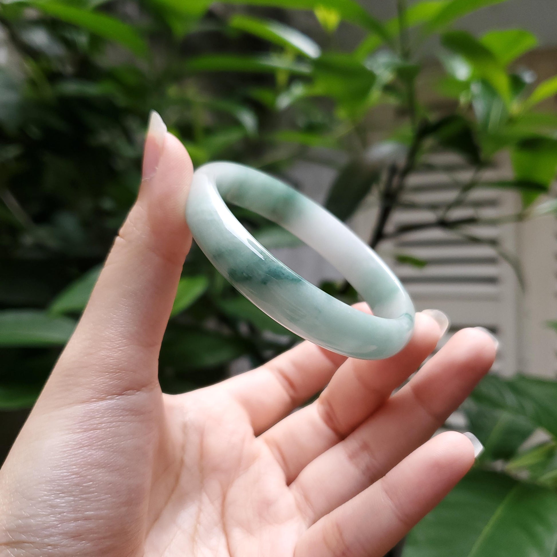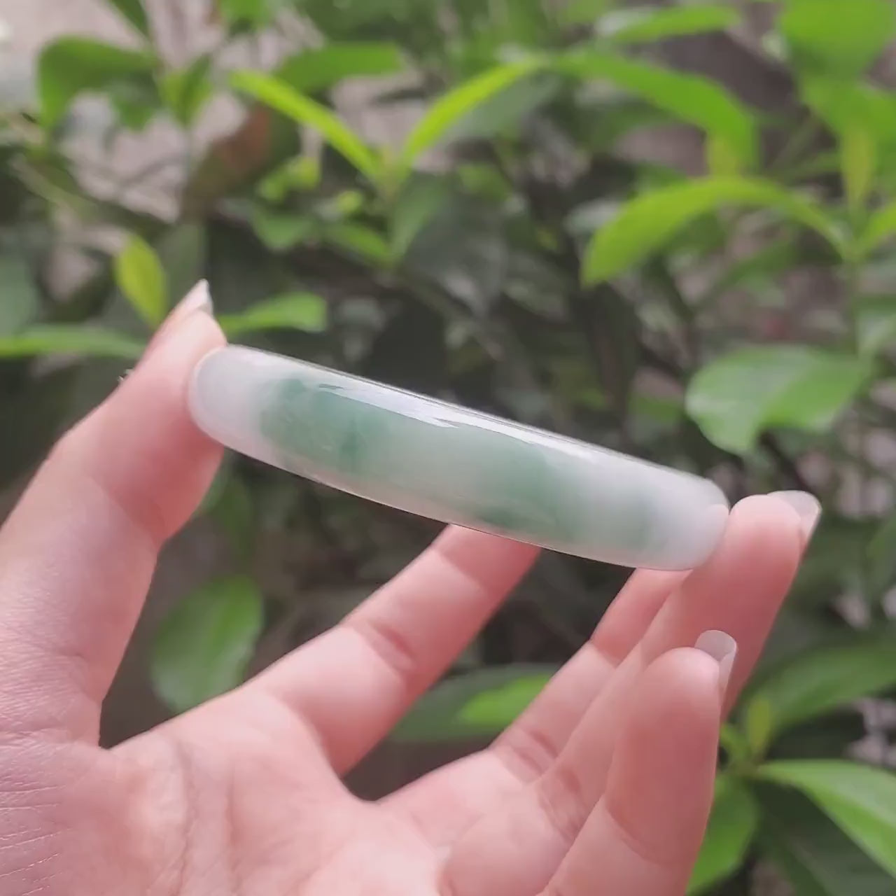 π Timeless Vintage Elegance: High Quality White with floating green and black veins jade bangle symbolising wealth, health & prosperity.