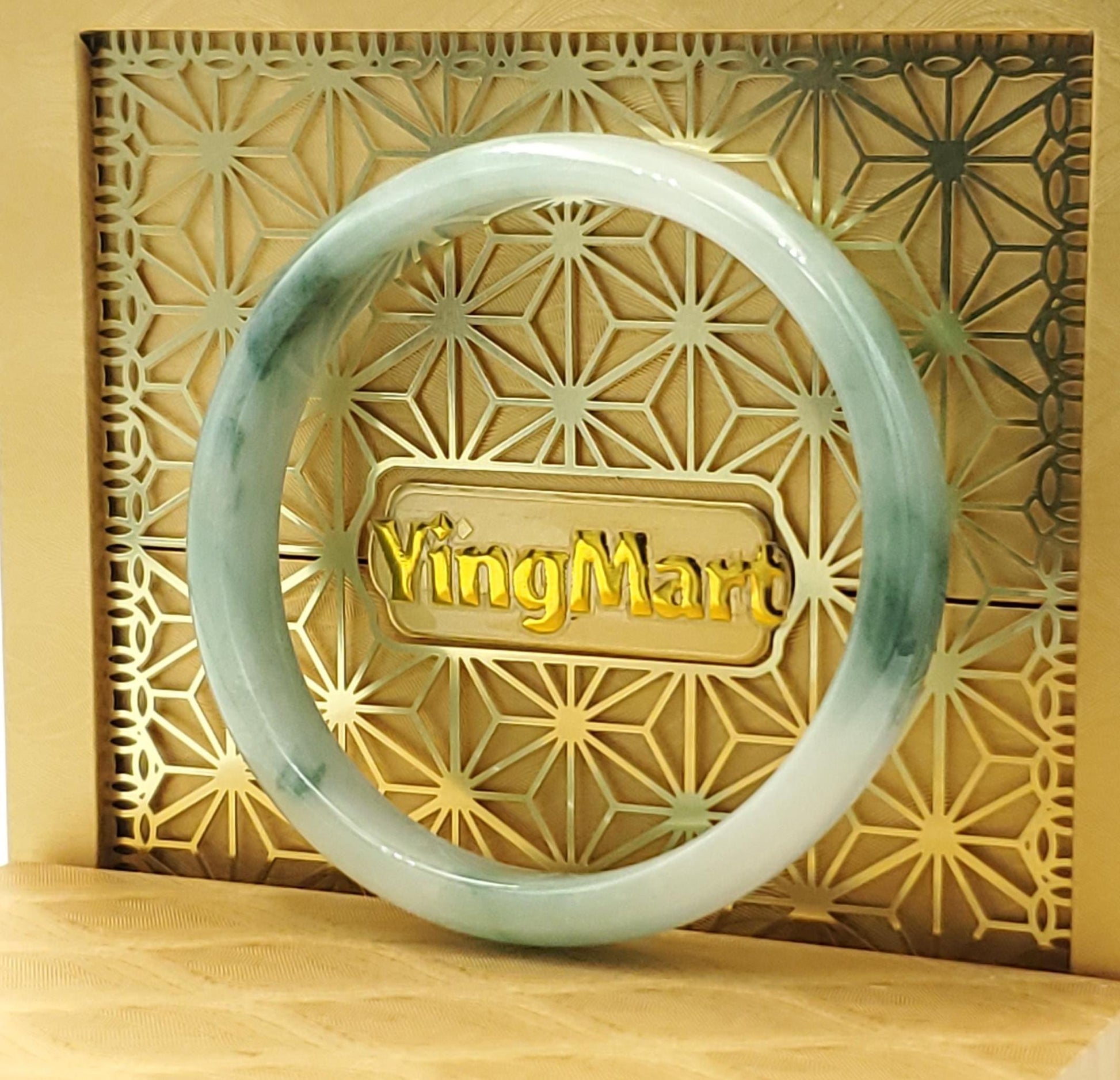 YingMart 48β72mm Jadeite Jade White Green Black Veins Bangle Gift for Her Mom Sister Grandma Personalized Bracelets