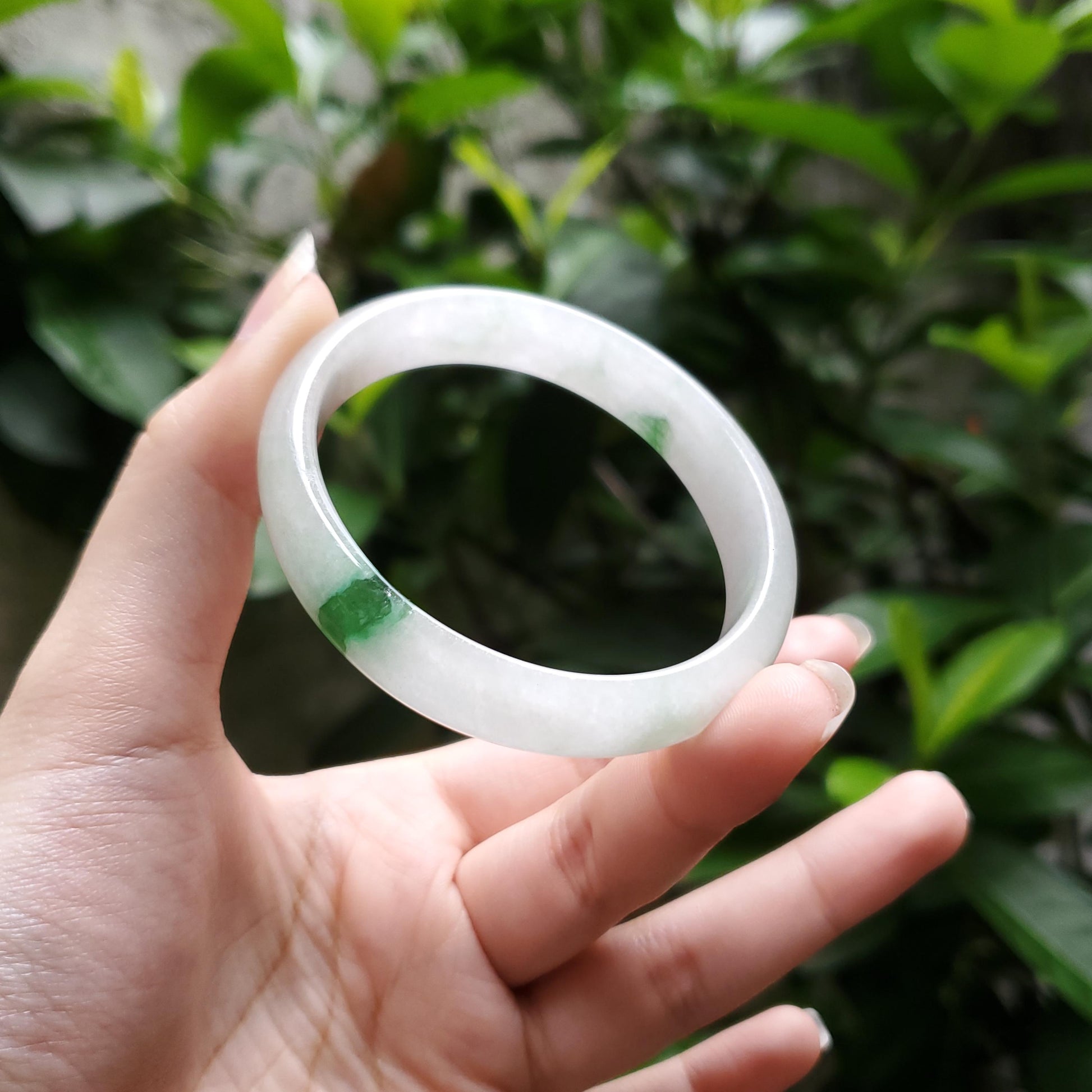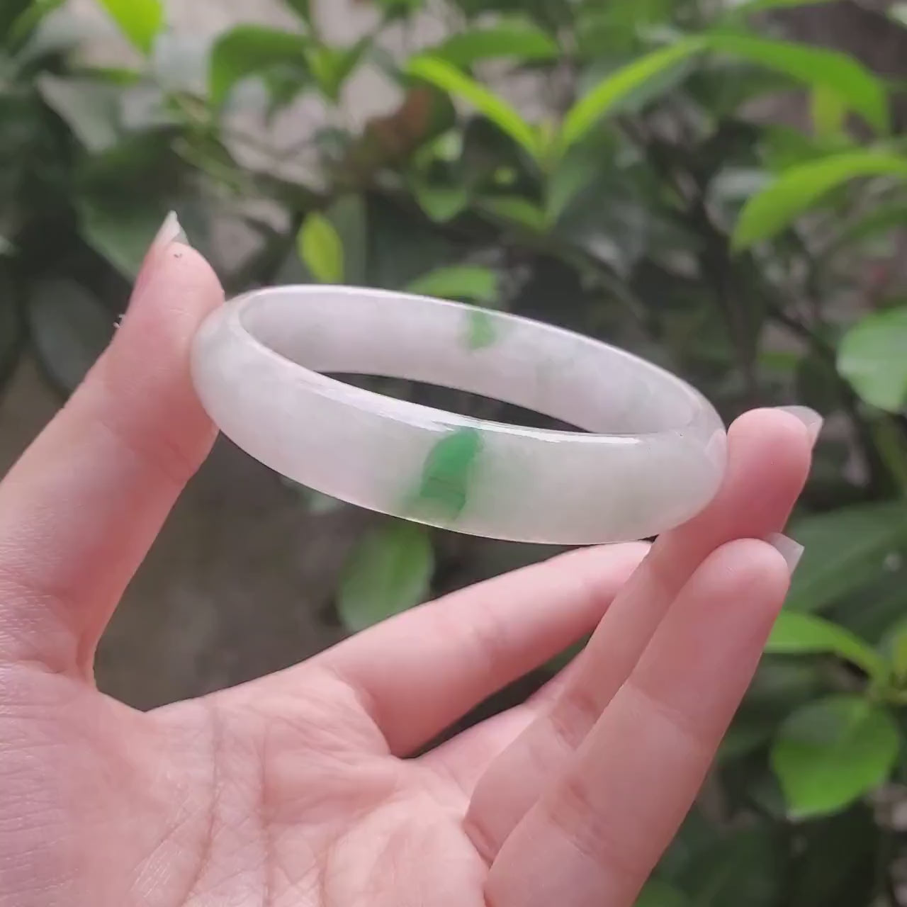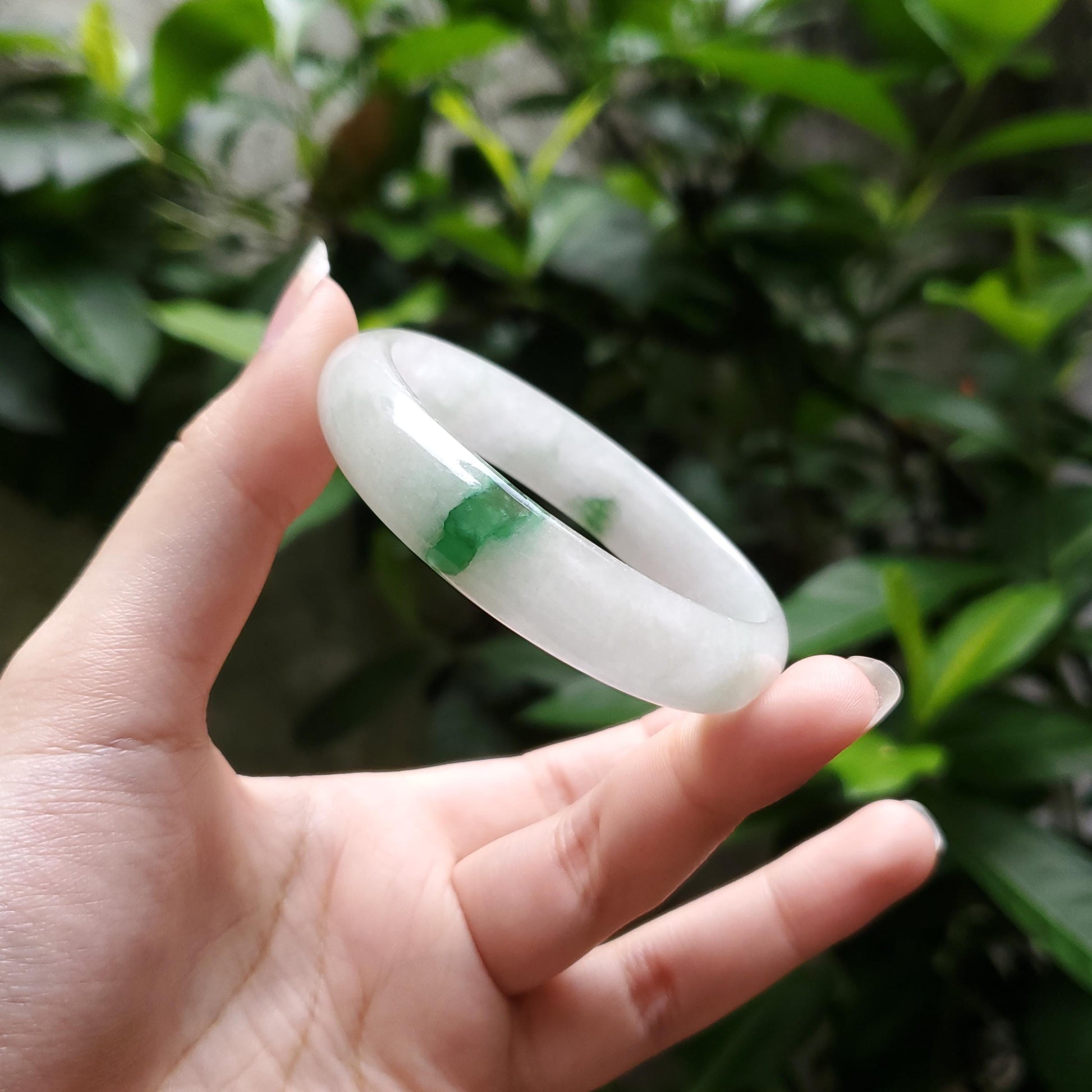 π Timeless Vintage Elegance: High Quality White Green jade bangle symbolising wealth, health & prosperity.