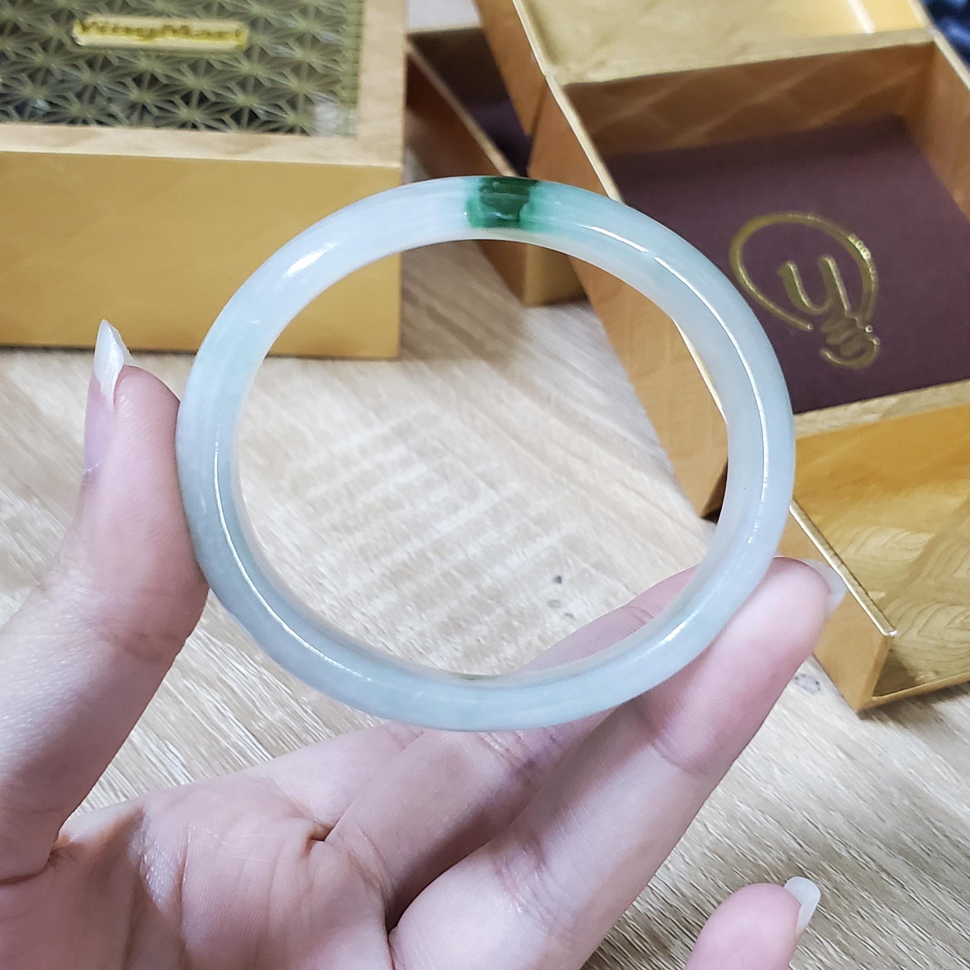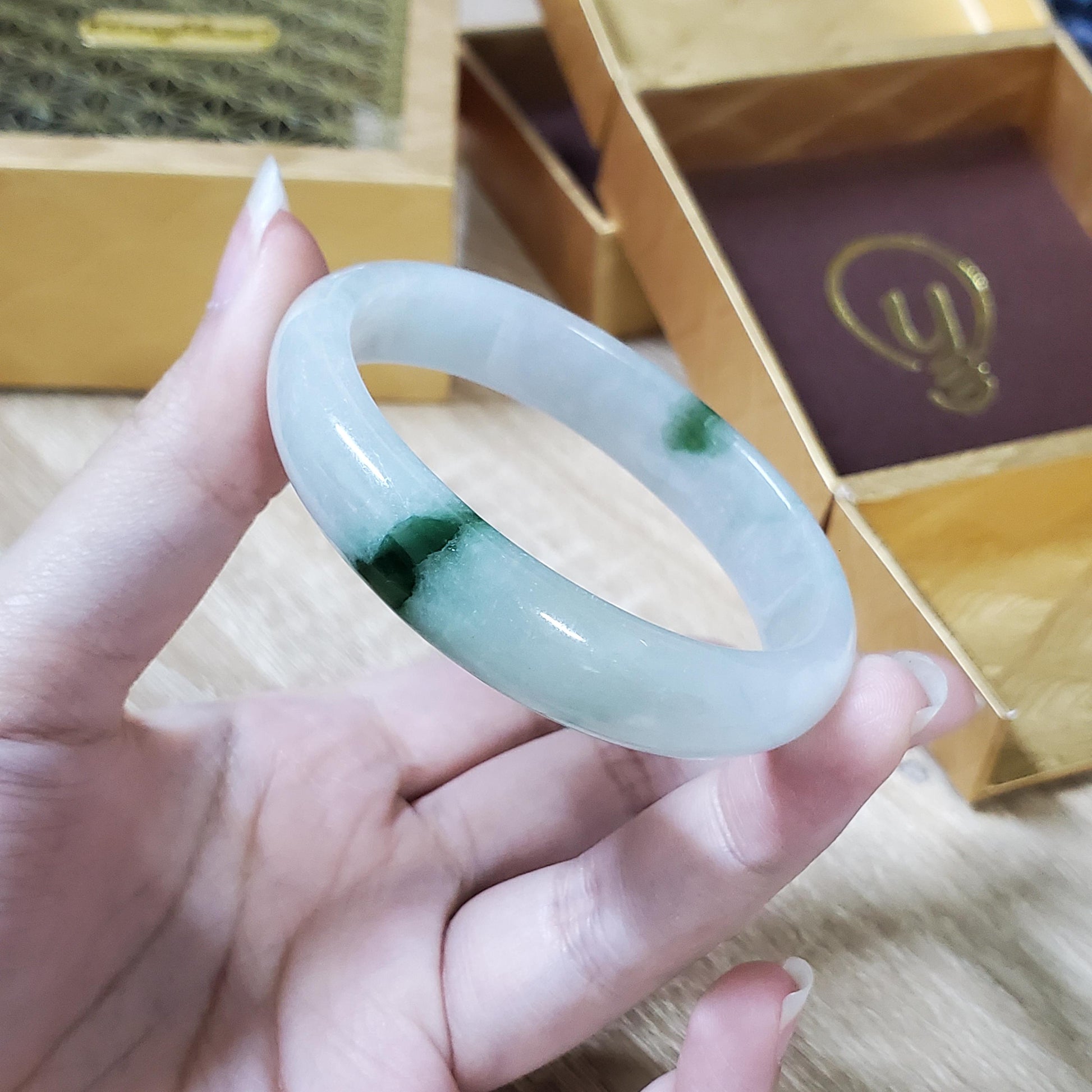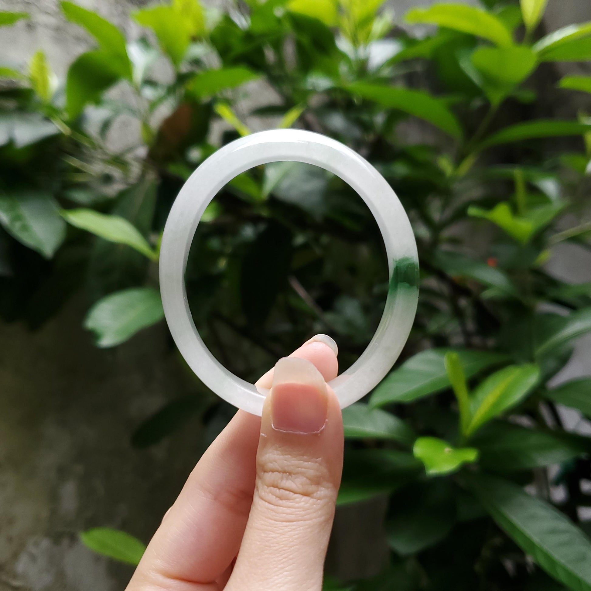 π Timeless Vintage Elegance: High Quality White Green jade bangle symbolising wealth, health & prosperity.