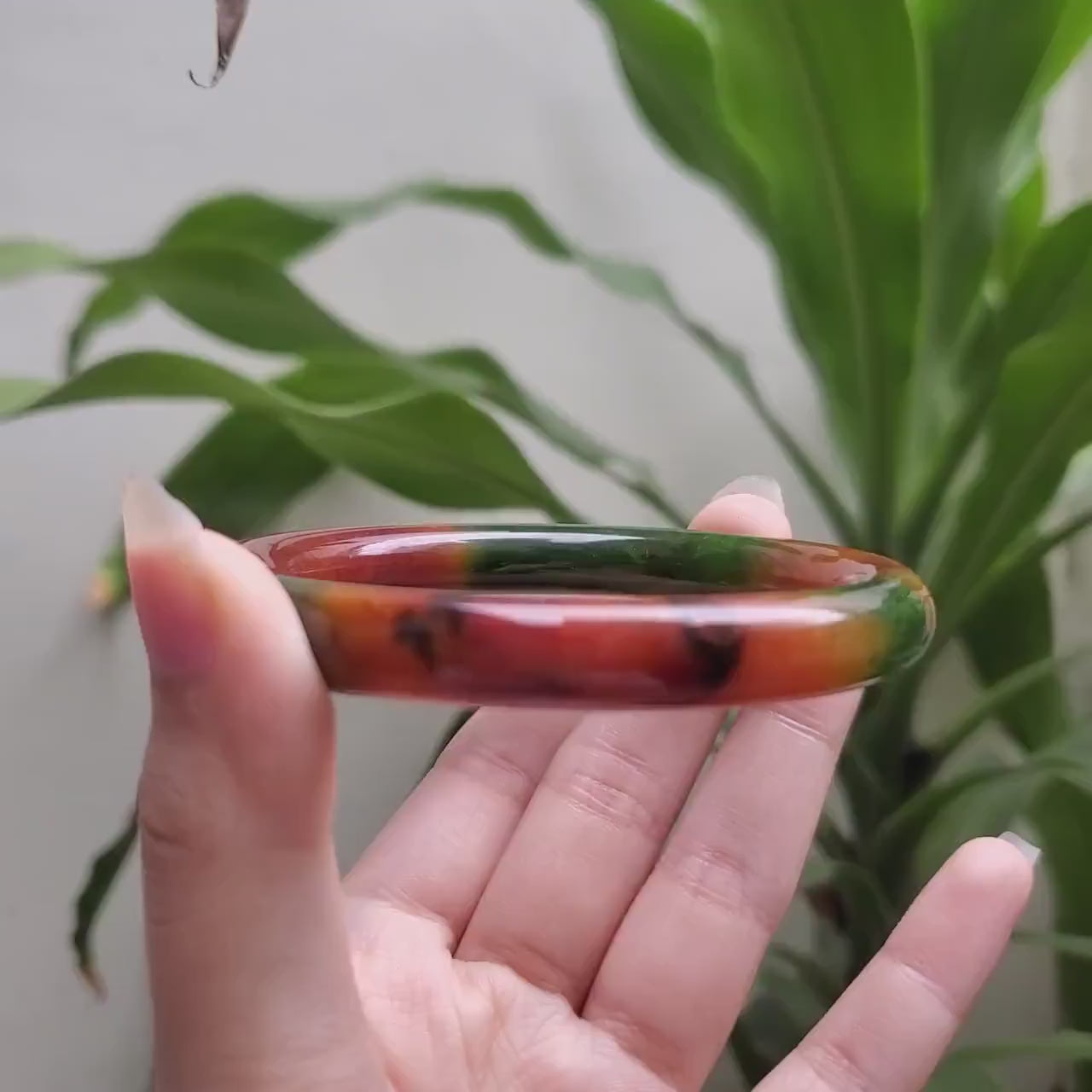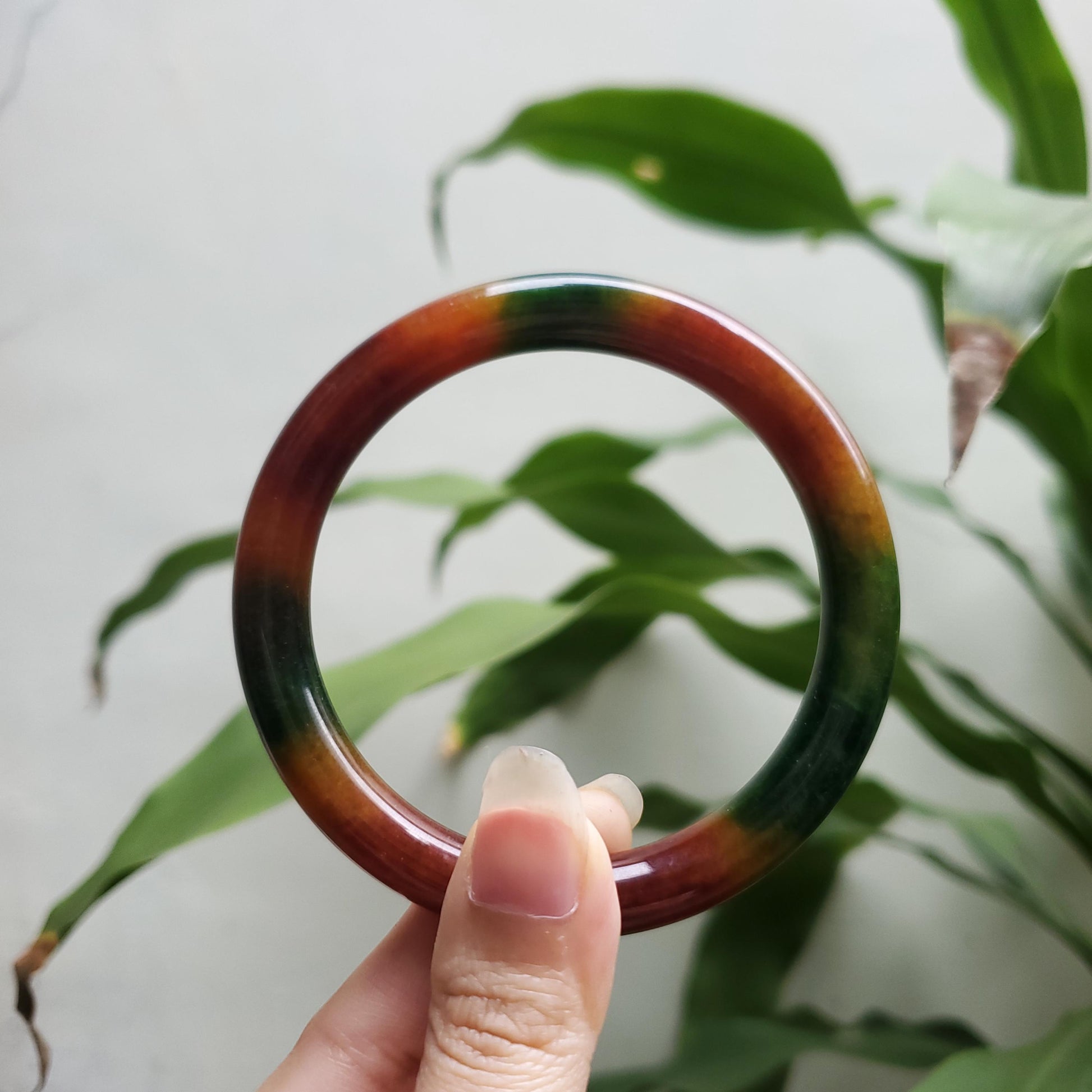π Timeless Vintage Elegance: High Quality Yellow mixed Green/Black/Brown Spot jade bangle symbolising wealth, health & prosperity.