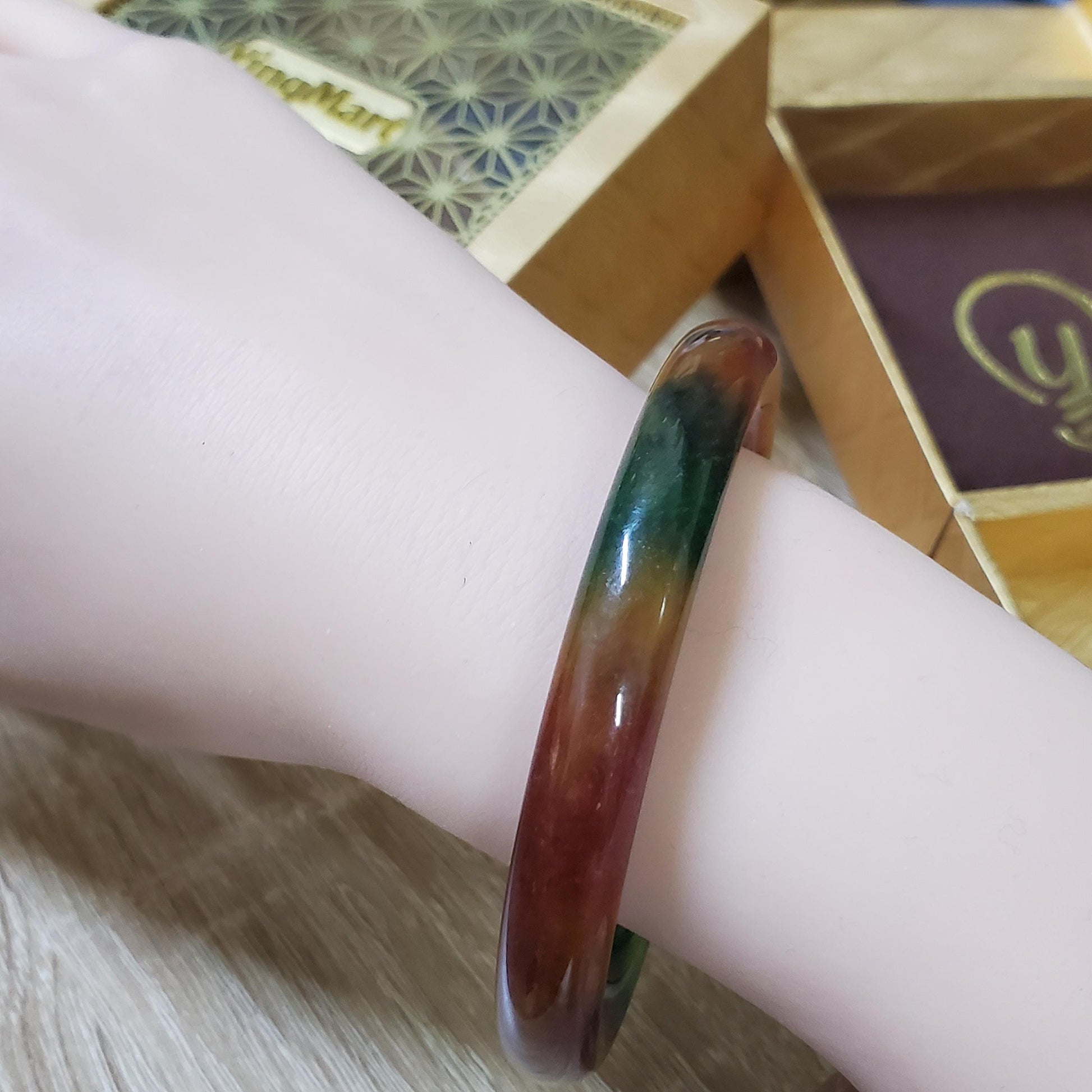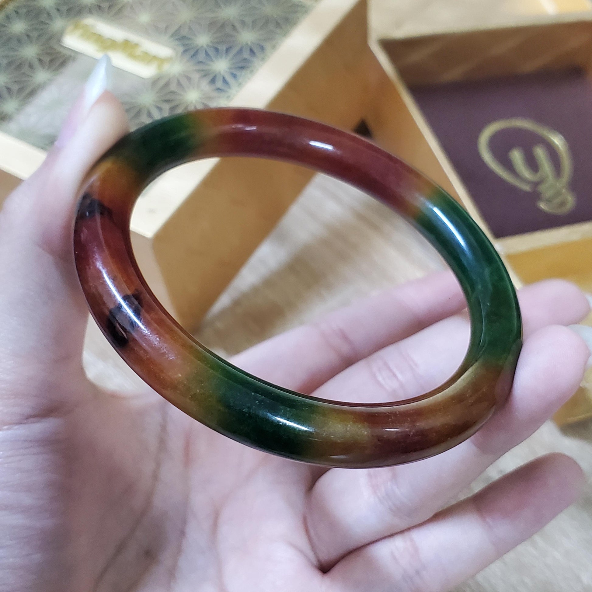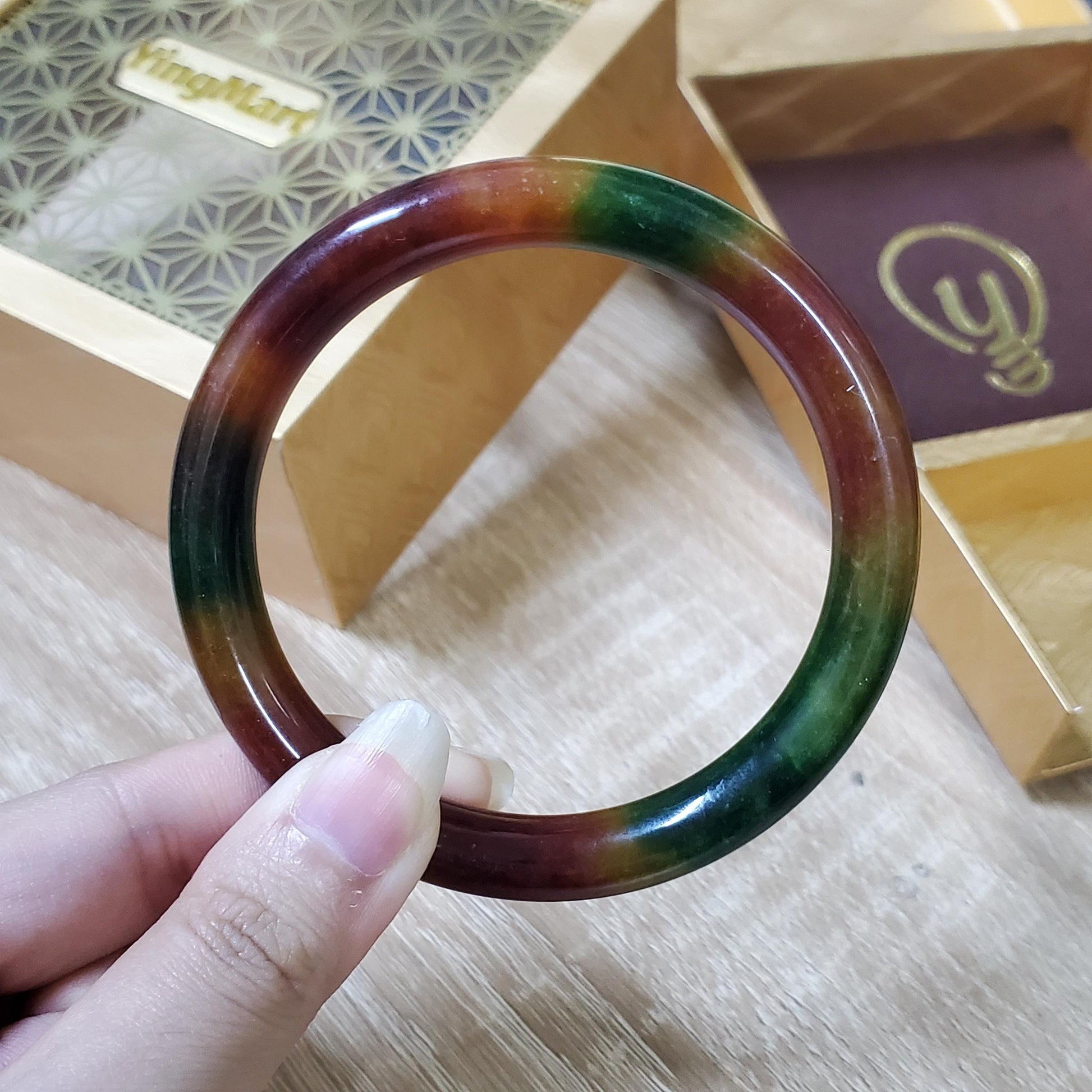 High Quality 48β72mm Jadeite Jade Yellow Green Black Brown Spot YingMart Bangle Bracelets Gift for Her Feng Shui Grandma Sister