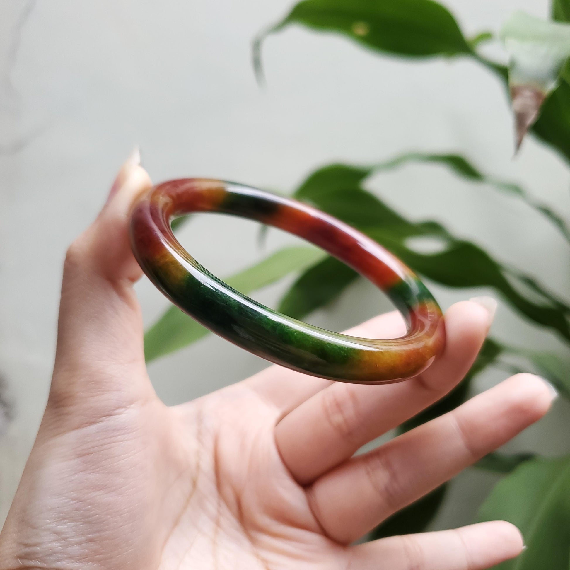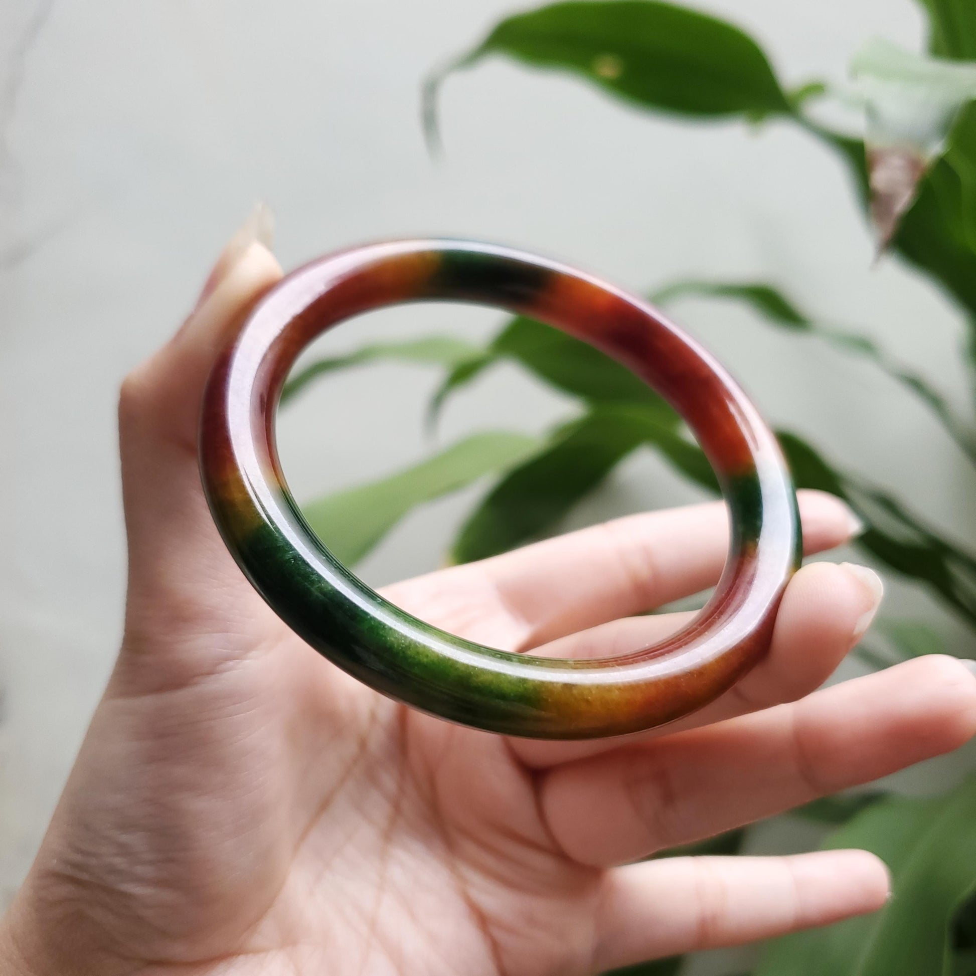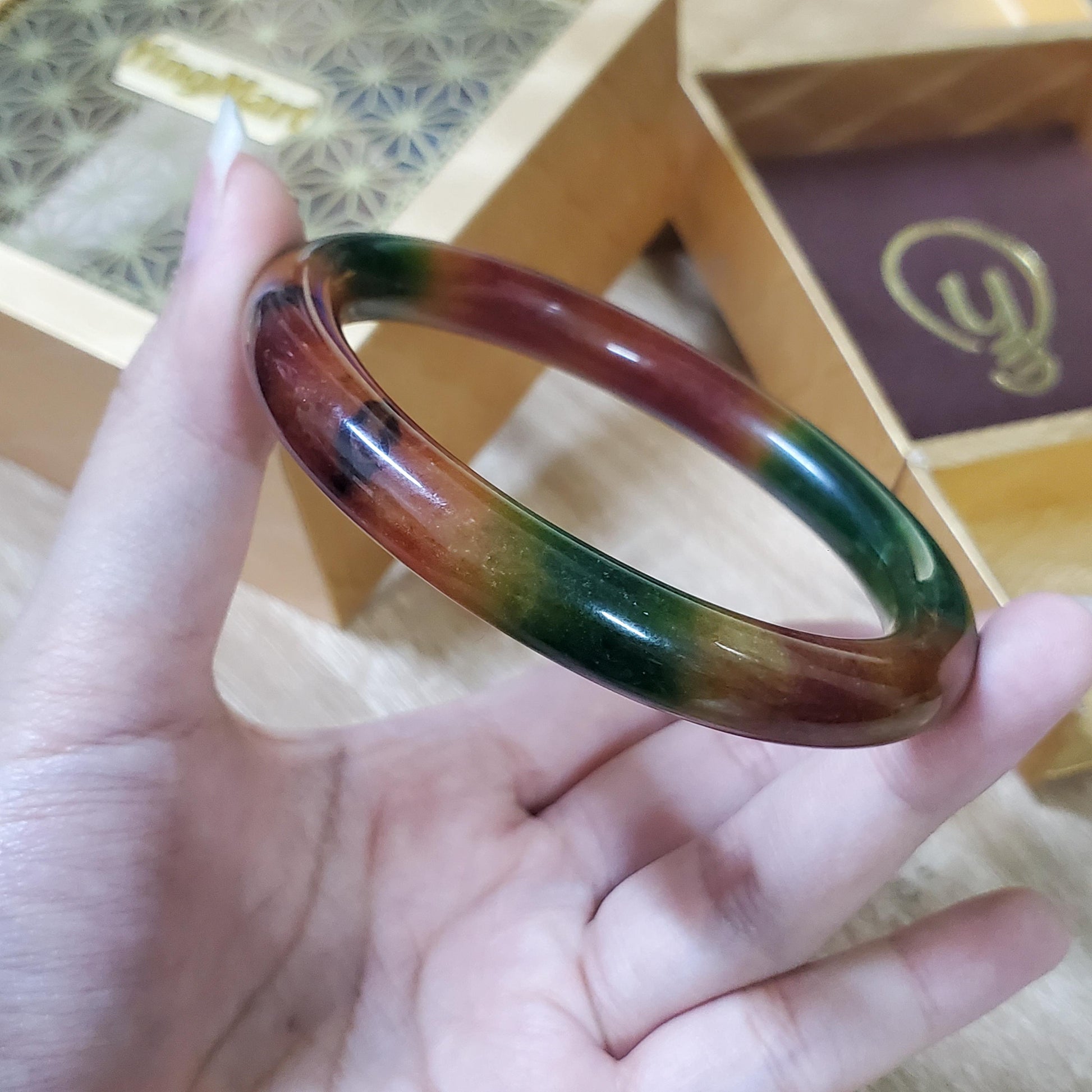 High Quality 48β72mm Jadeite Jade Yellow Green Black Brown Spot YingMart Bangle Bracelets Gift for Her Feng Shui Grandma Sister