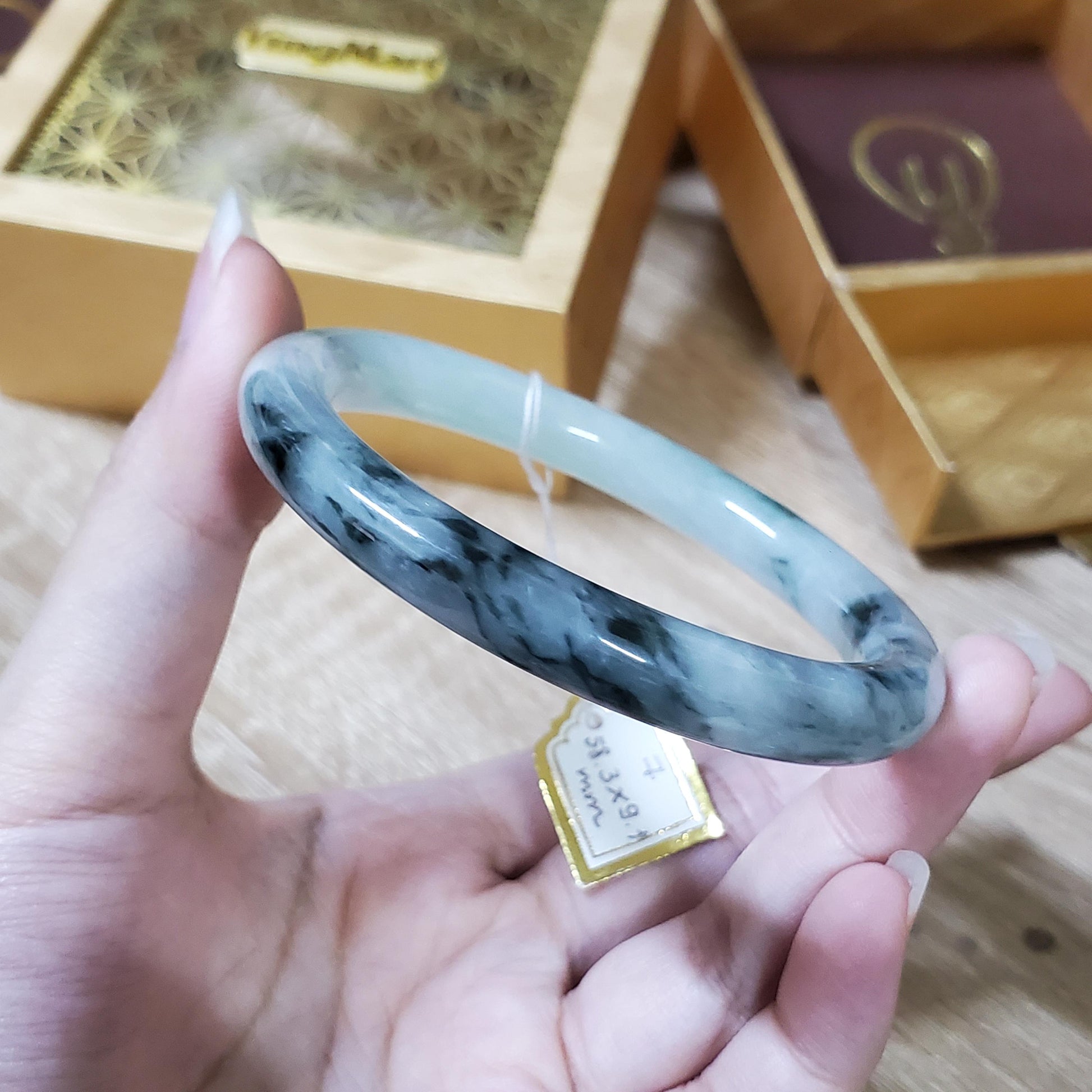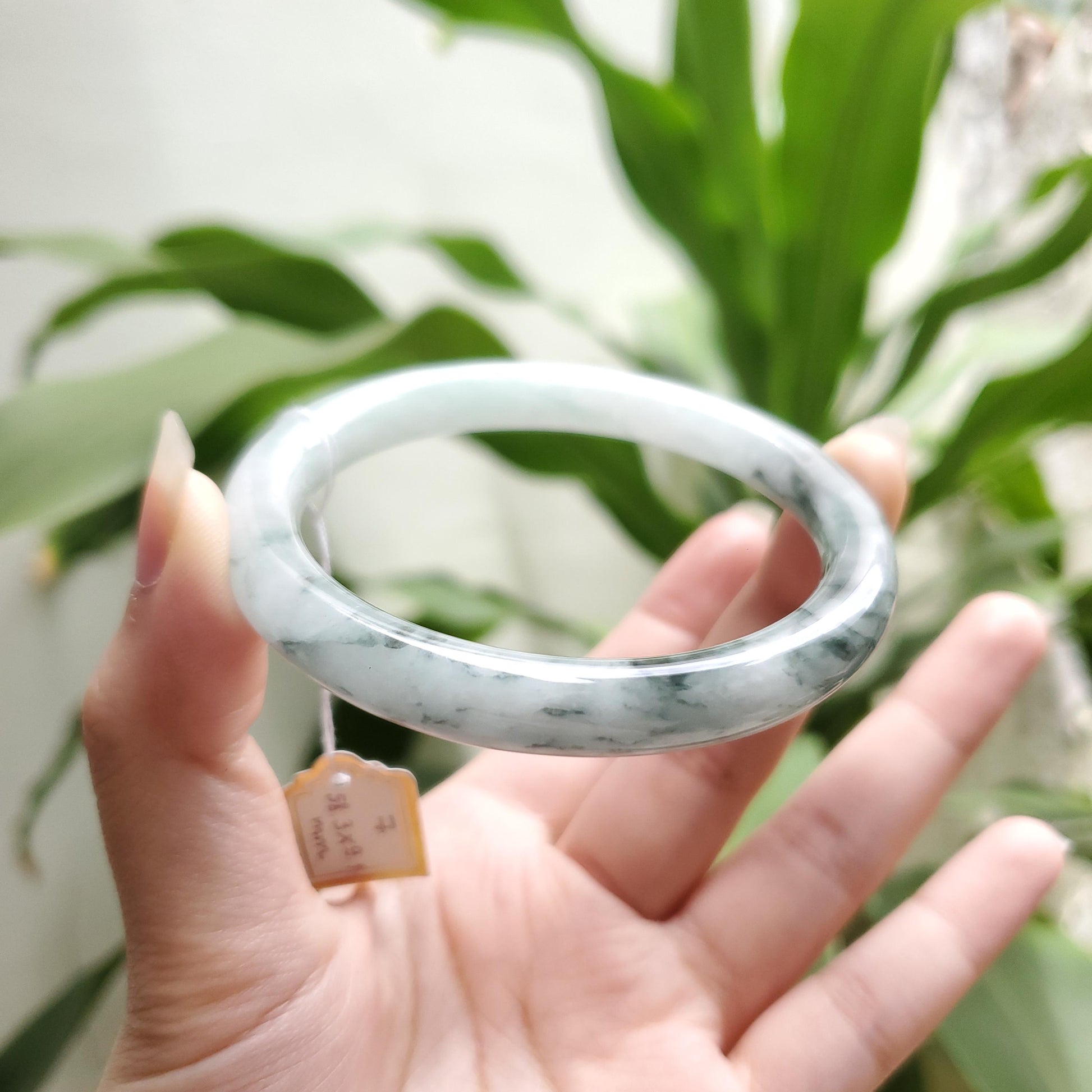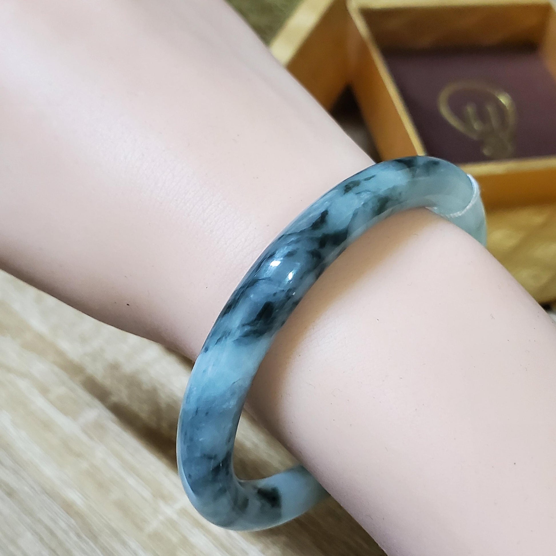 π Timeless Vintage Elegance: High Quality White Black Veins jade bangle symbolising wealth, health & prosperity.