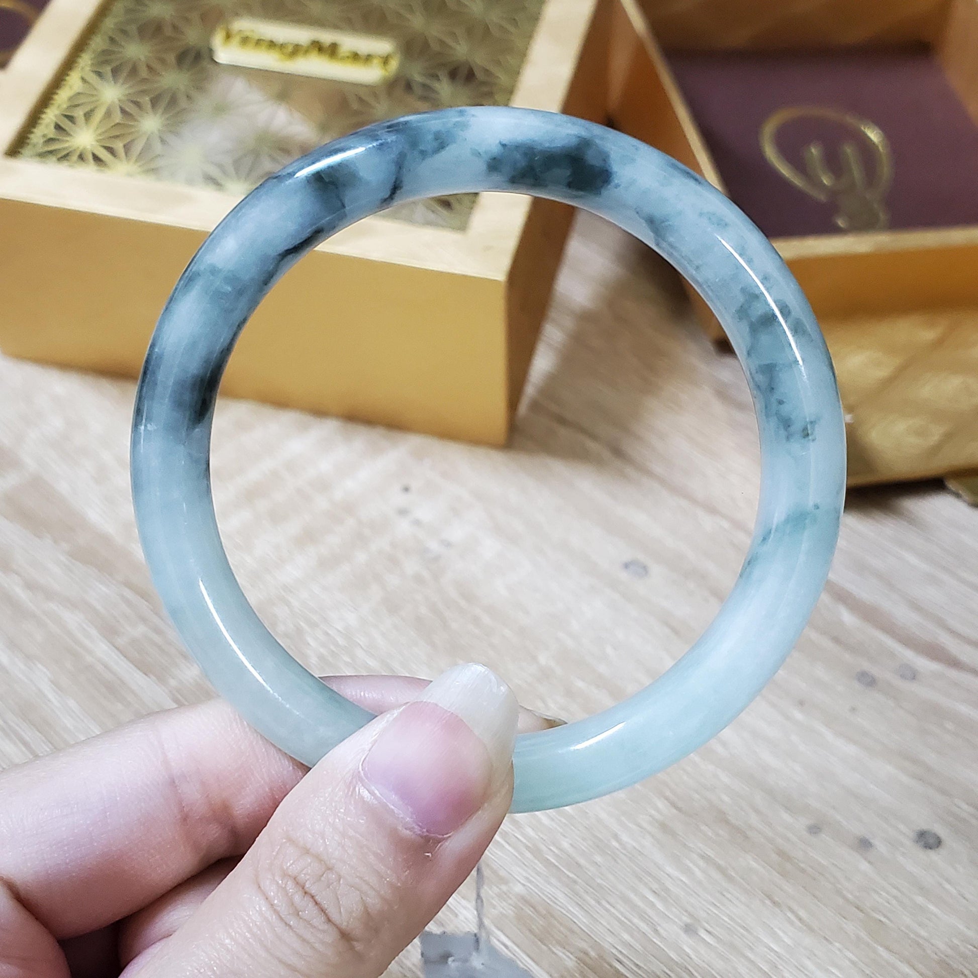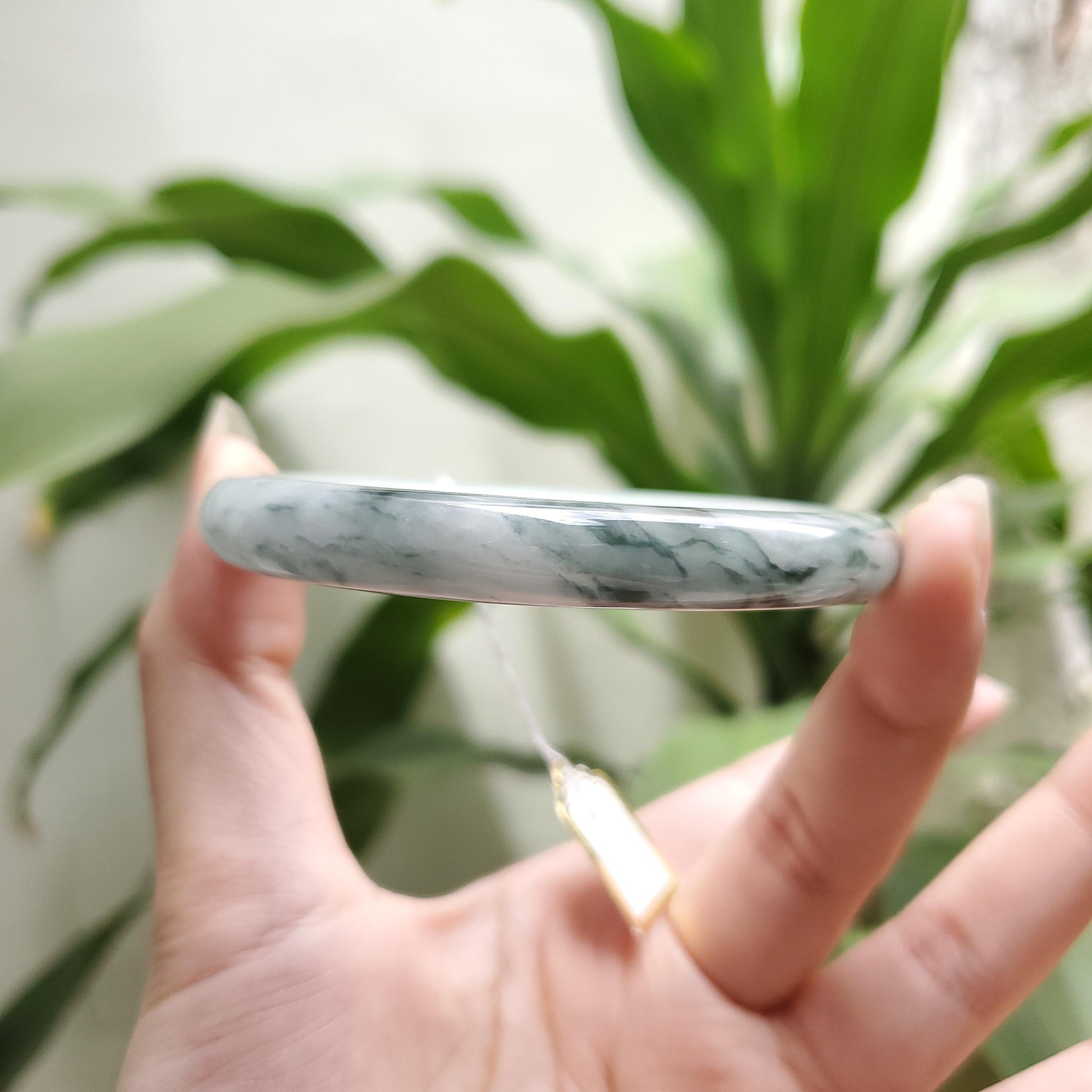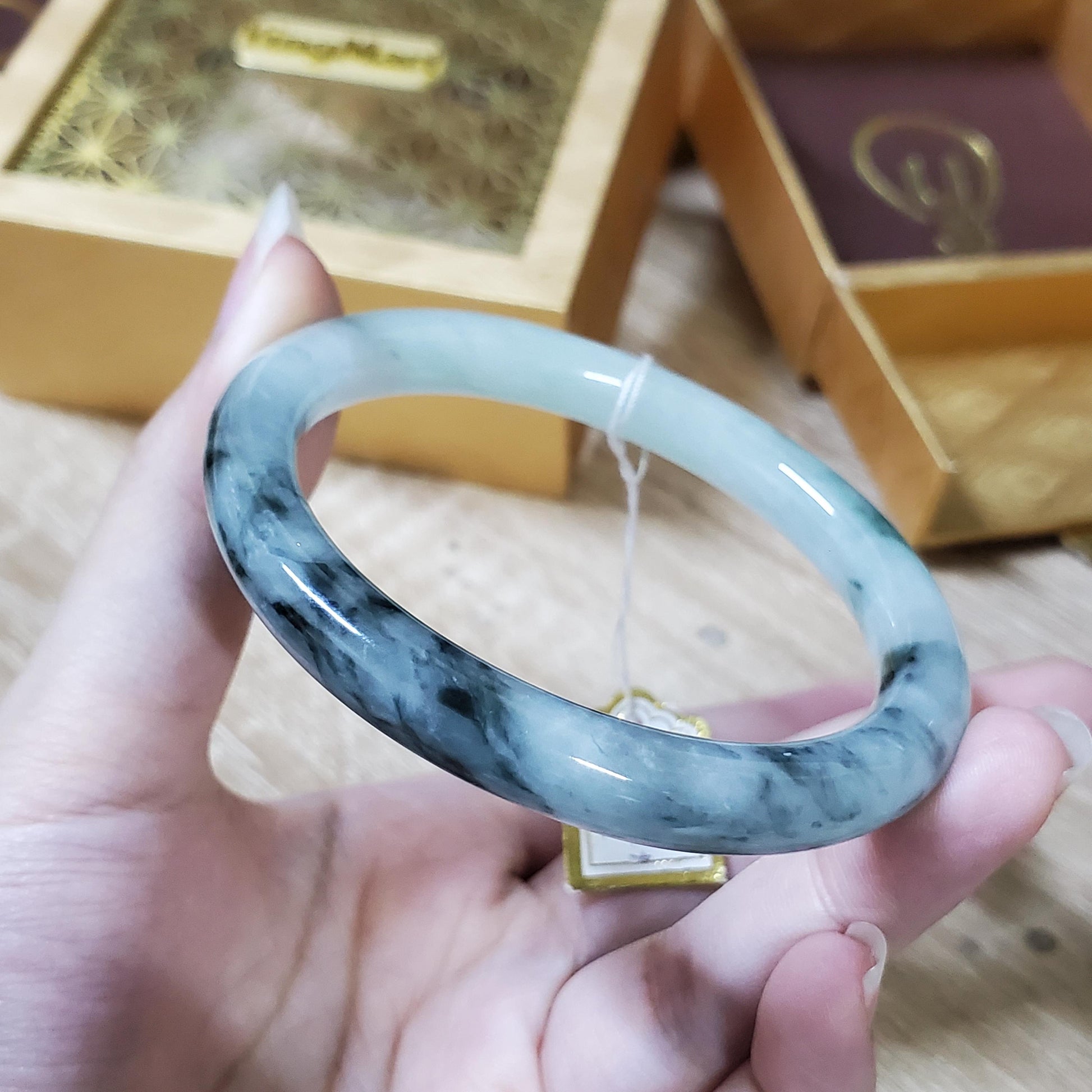 π Timeless Vintage Elegance: High Quality White Black Veins jade bangle symbolising wealth, health & prosperity.