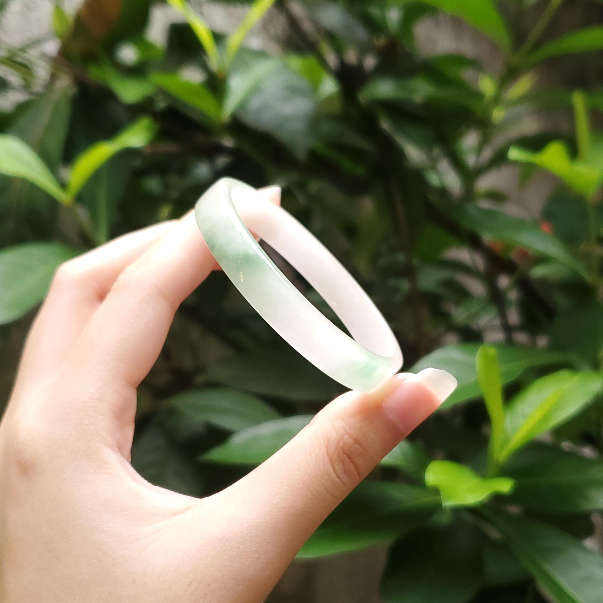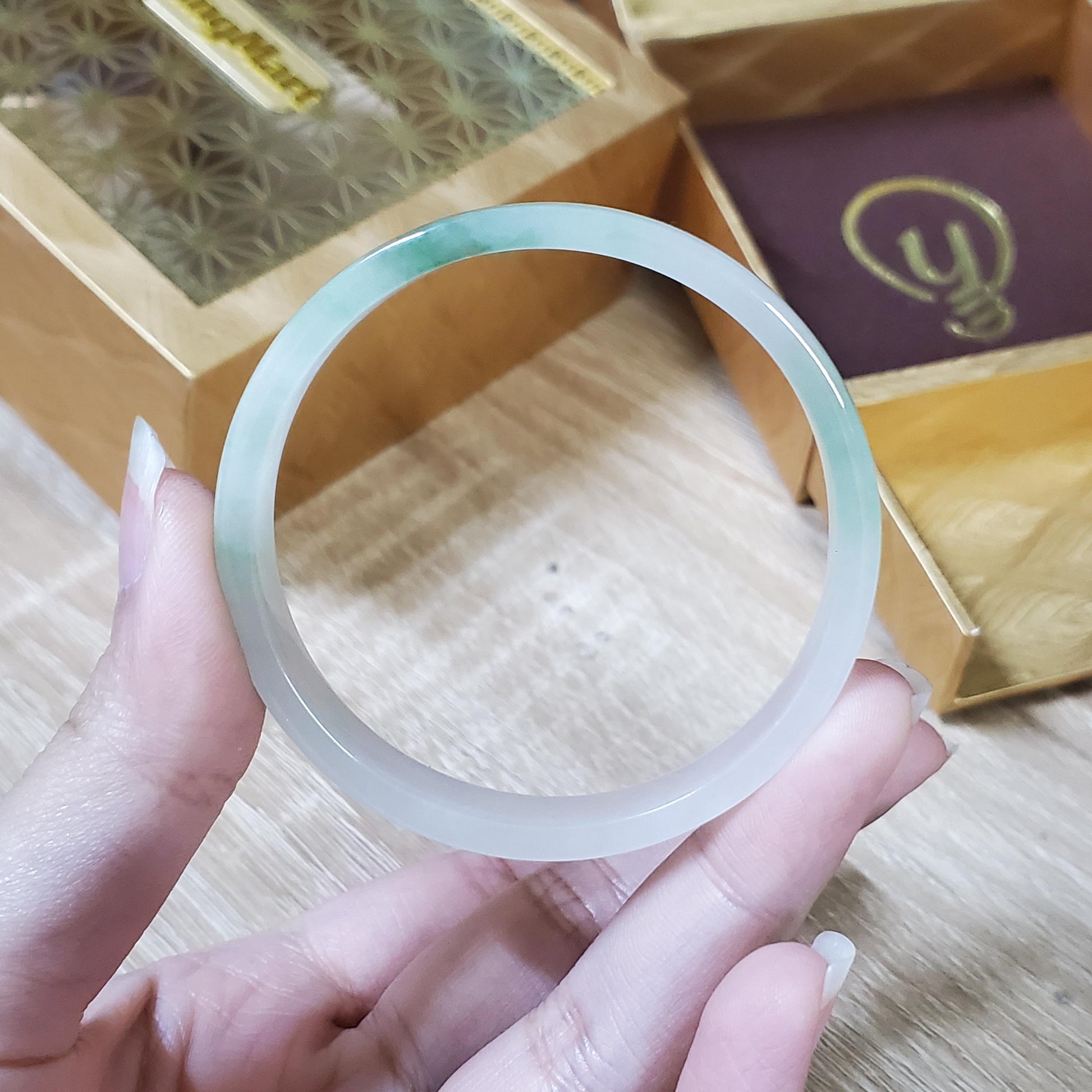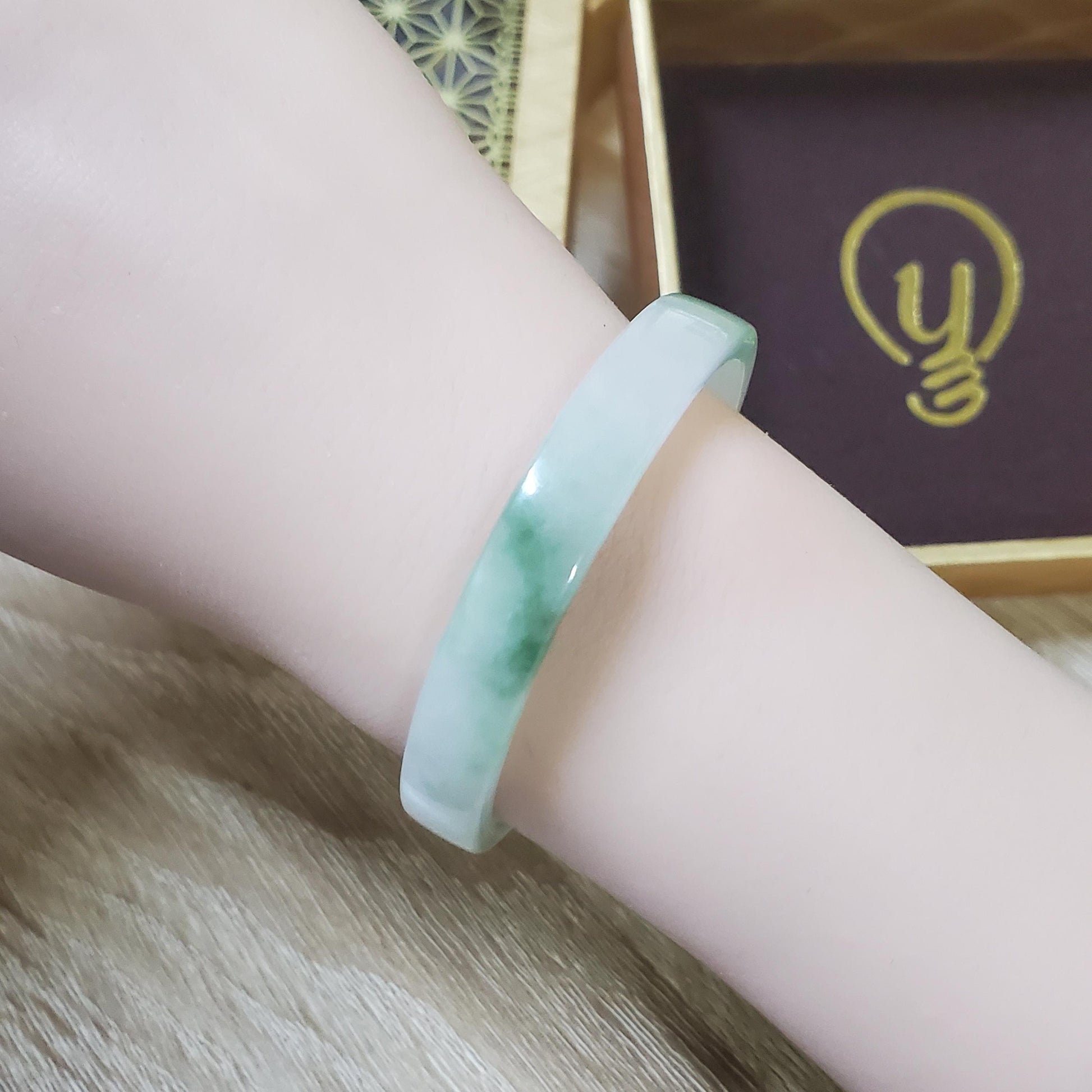 π Timeless Vintage Elegance: High Quality White Green jade bangle symbolising wealth, health & prosperity.