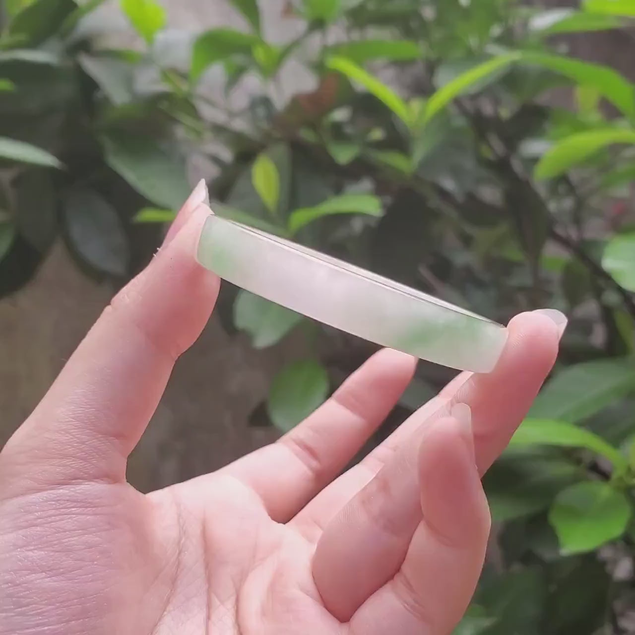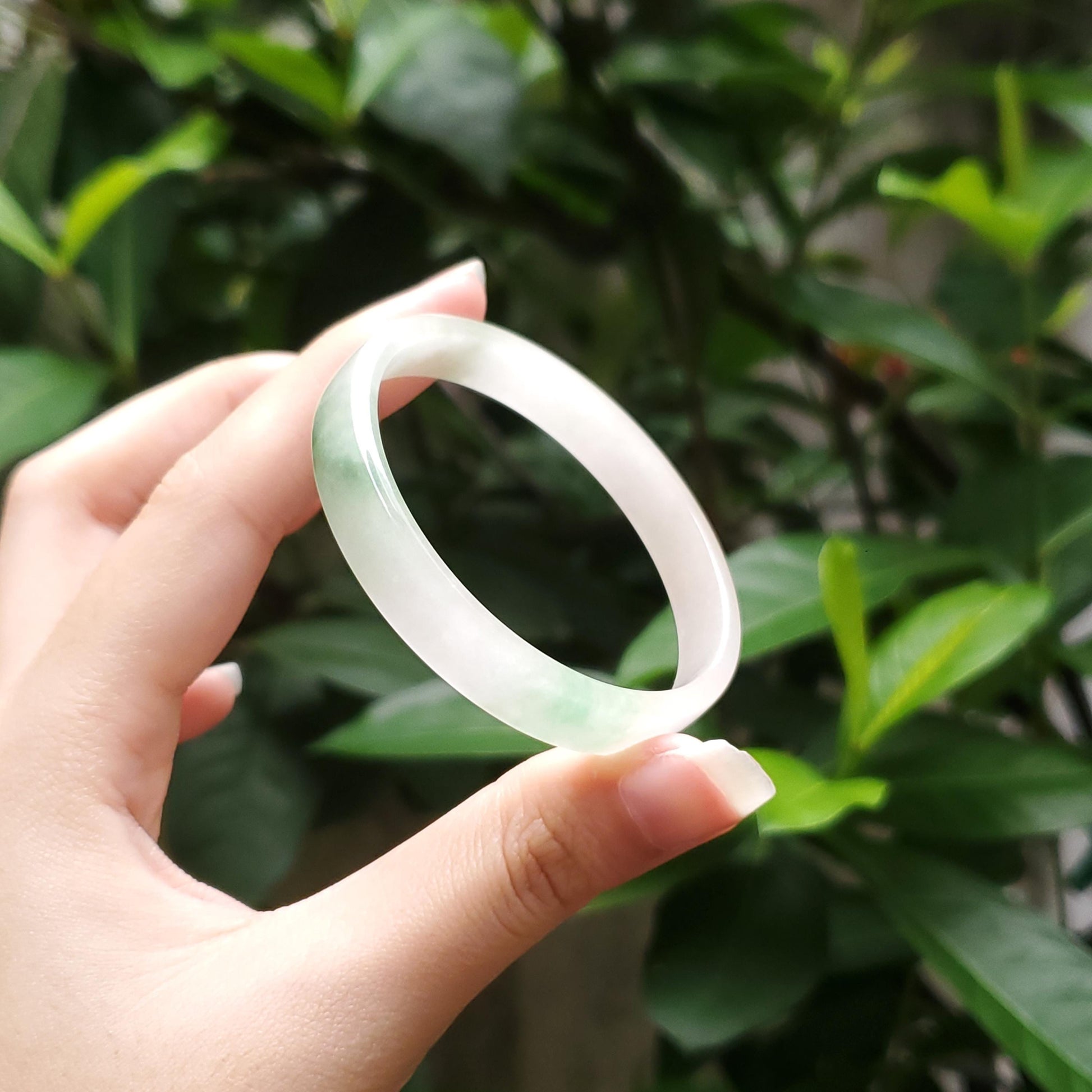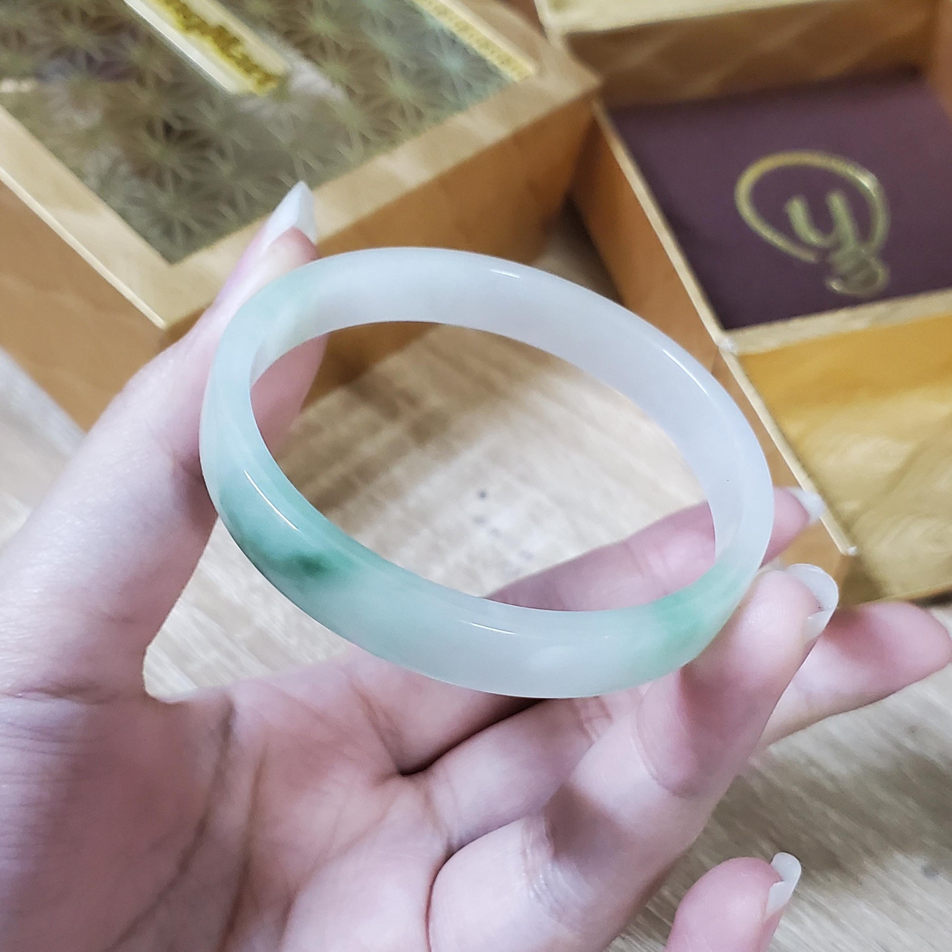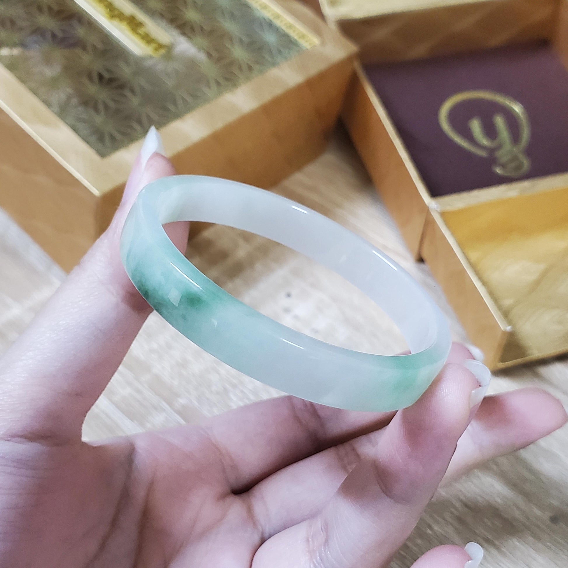 π Timeless Vintage Elegance: High Quality White Green jade bangle symbolising wealth, health & prosperity.