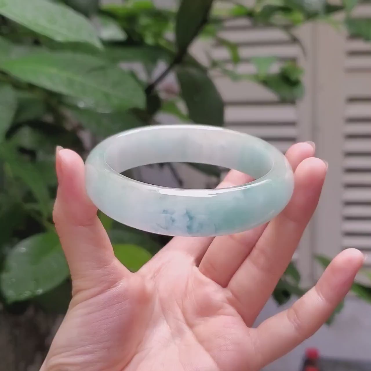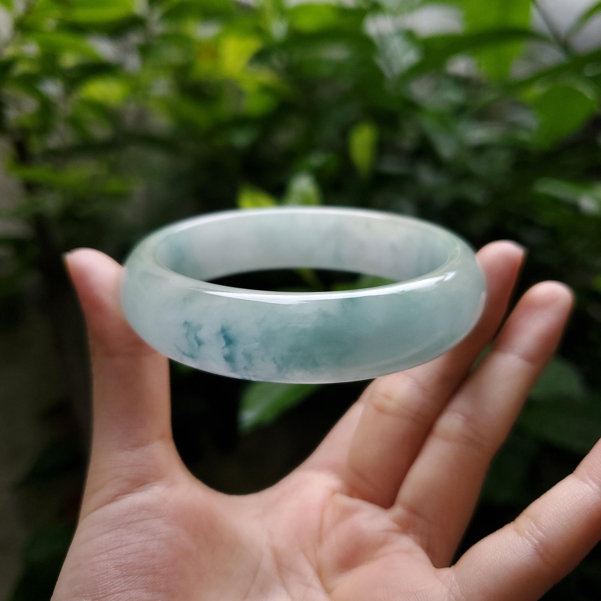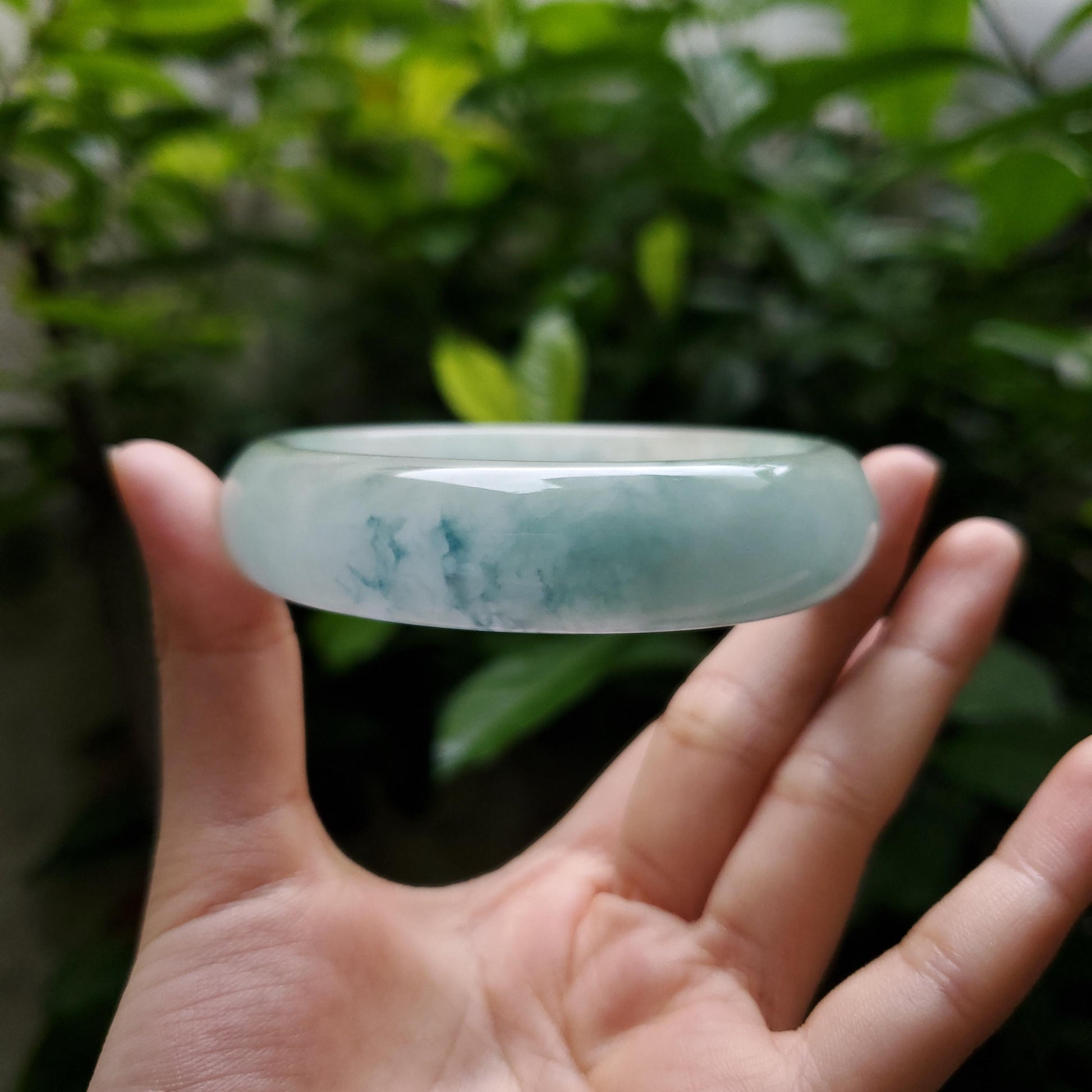 π Timeless Vintage Elegance: High quality White to Blue Floating Veins jade bangle symbolising wealth, health & prosperity.