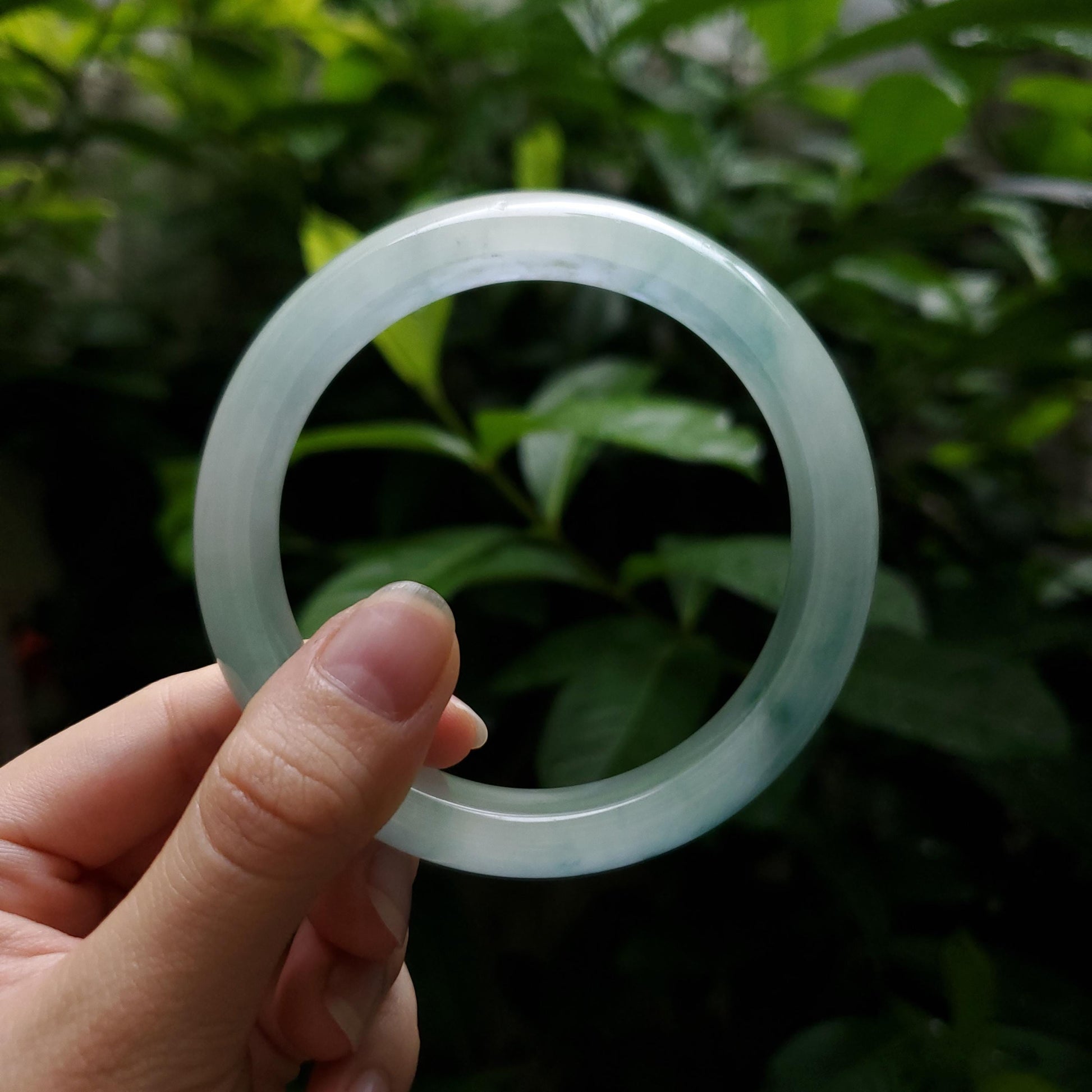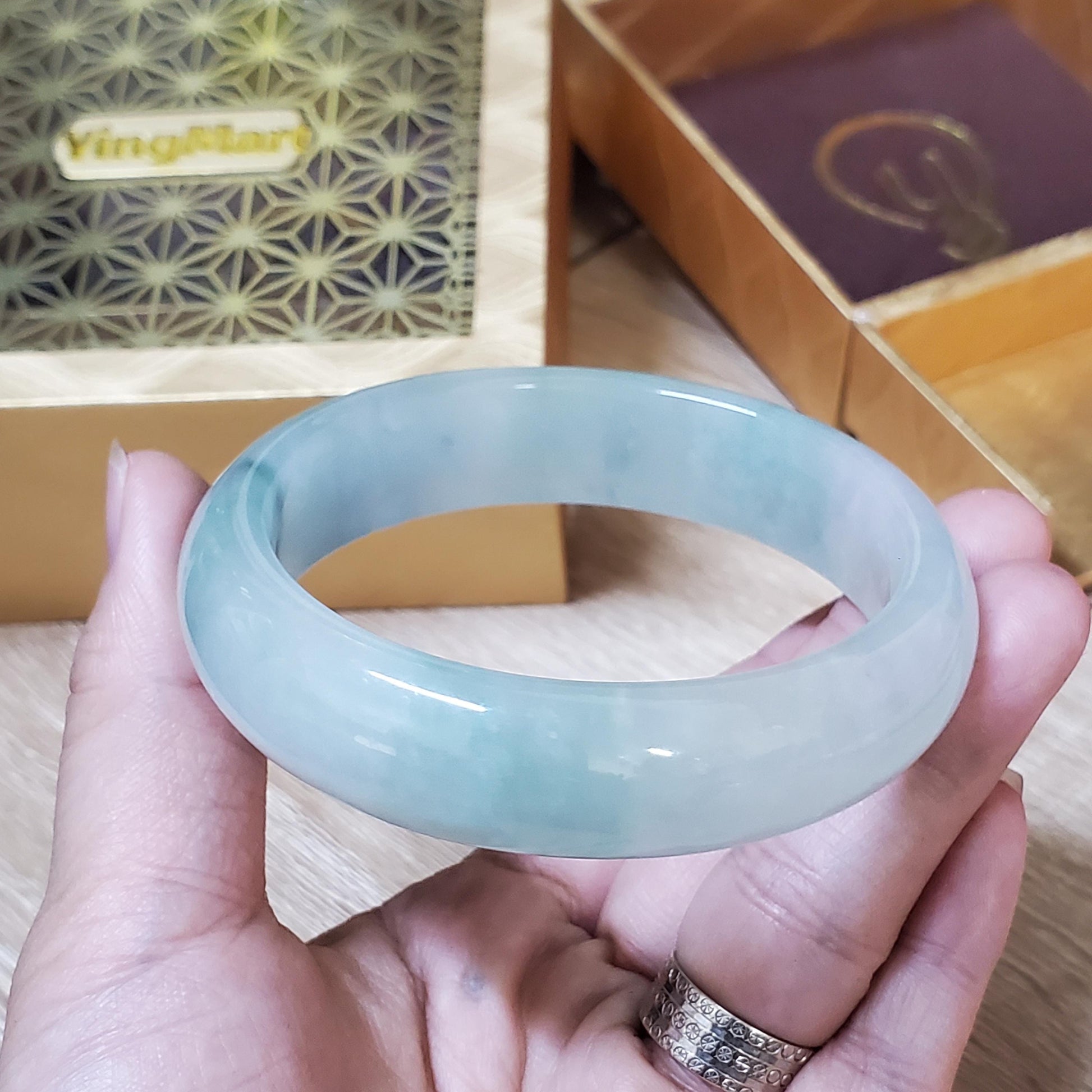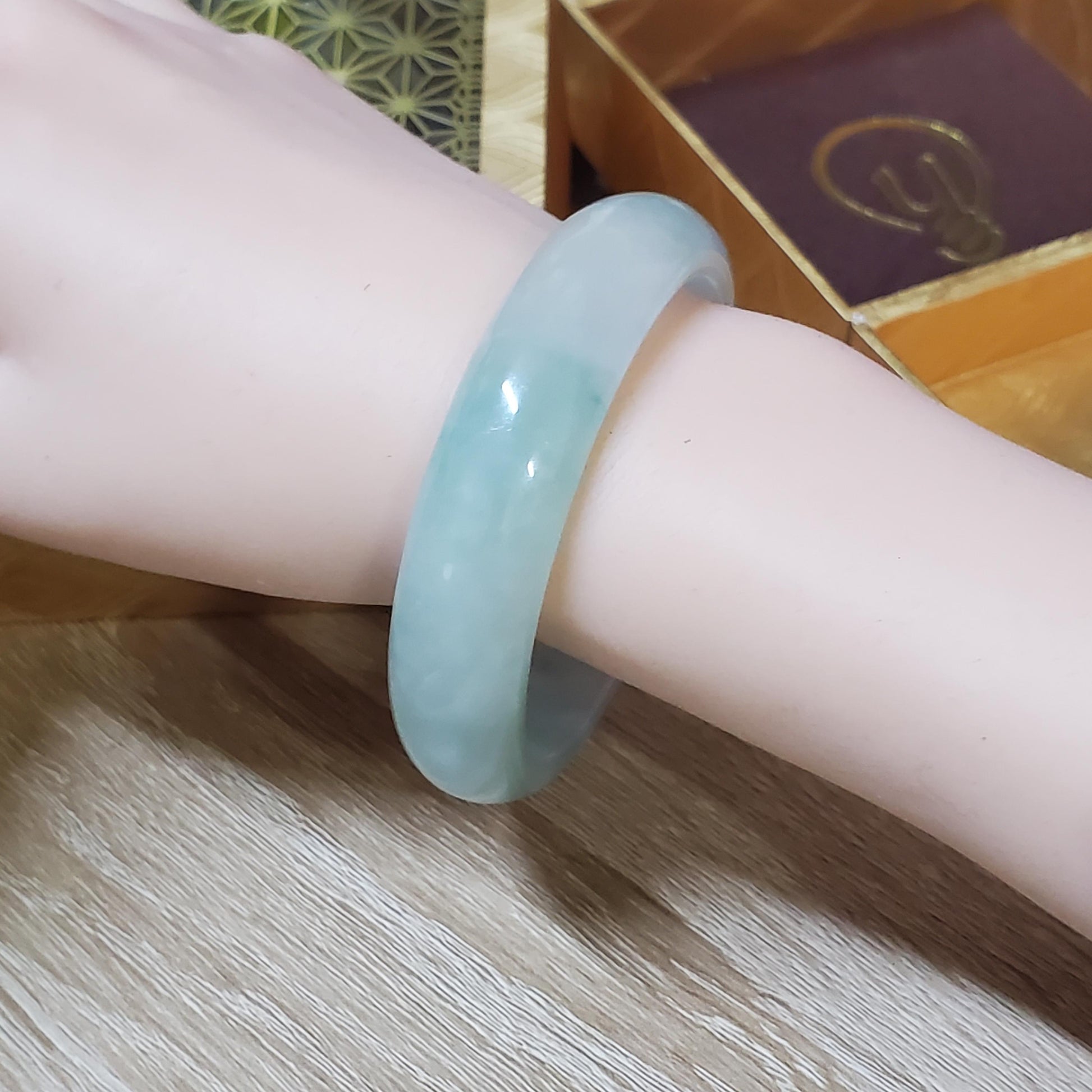 π Timeless Vintage Elegance: High quality White to Blue Floating Veins jade bangle symbolising wealth, health & prosperity.
