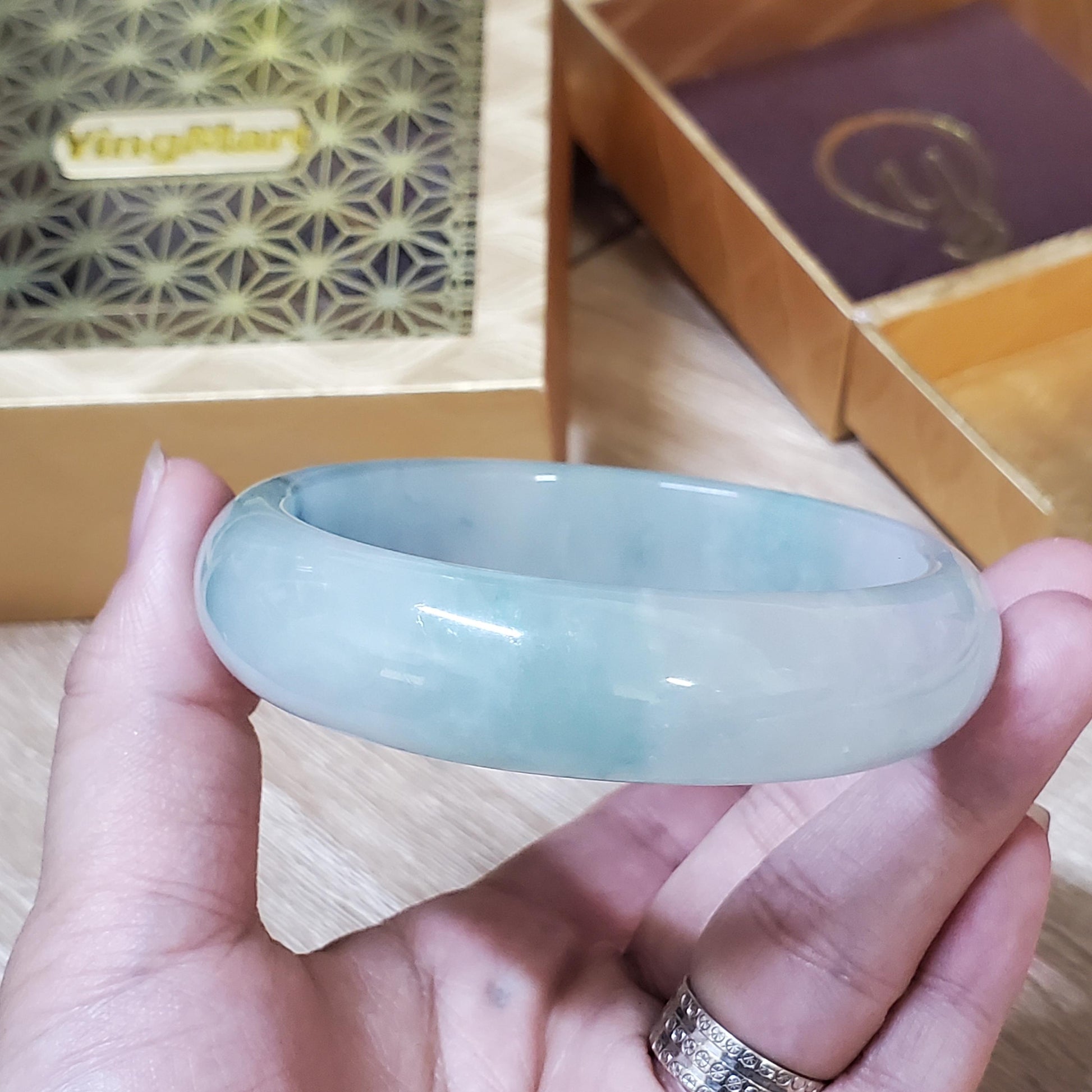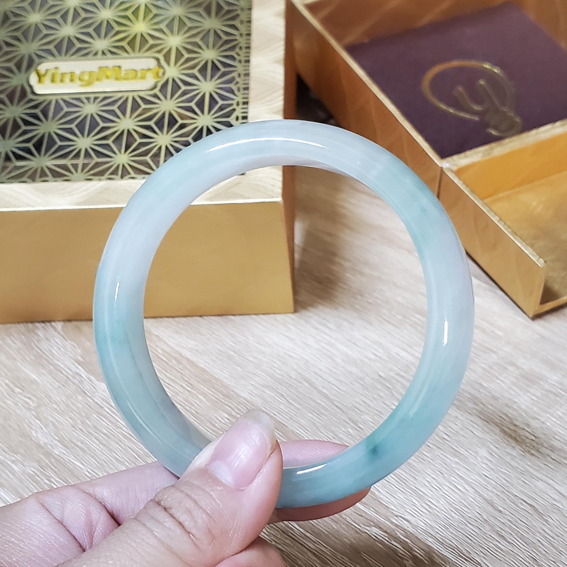 High Quality 48β72mm Natural-Colour Jade White to Blue Floating Veins YingMart Bangle Bracelets Gift for Her Grandmother Sister Mens