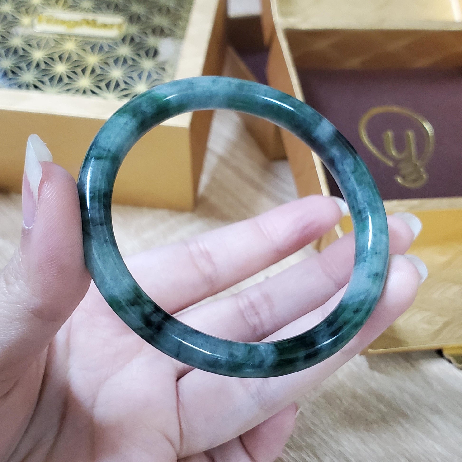 High Quality 48β72mm Natural-Colour Jade White to Green with Black Spot YingMart Bangle Gift for Mom Sister Mens Feng Shui Personalized