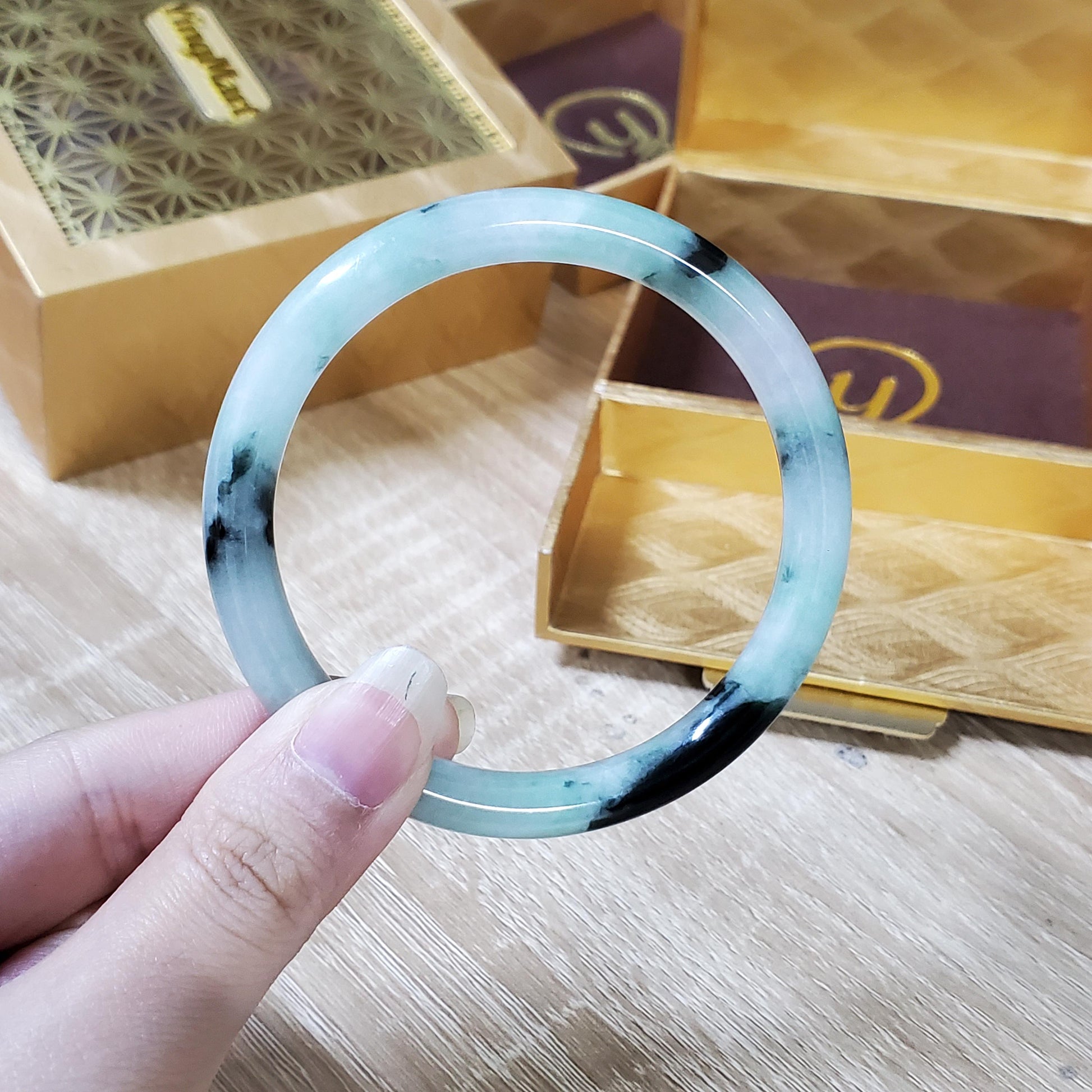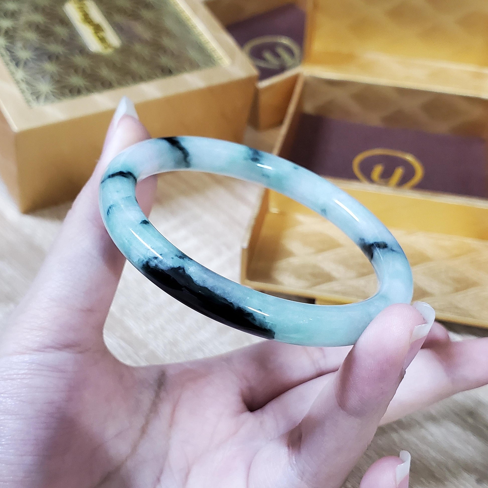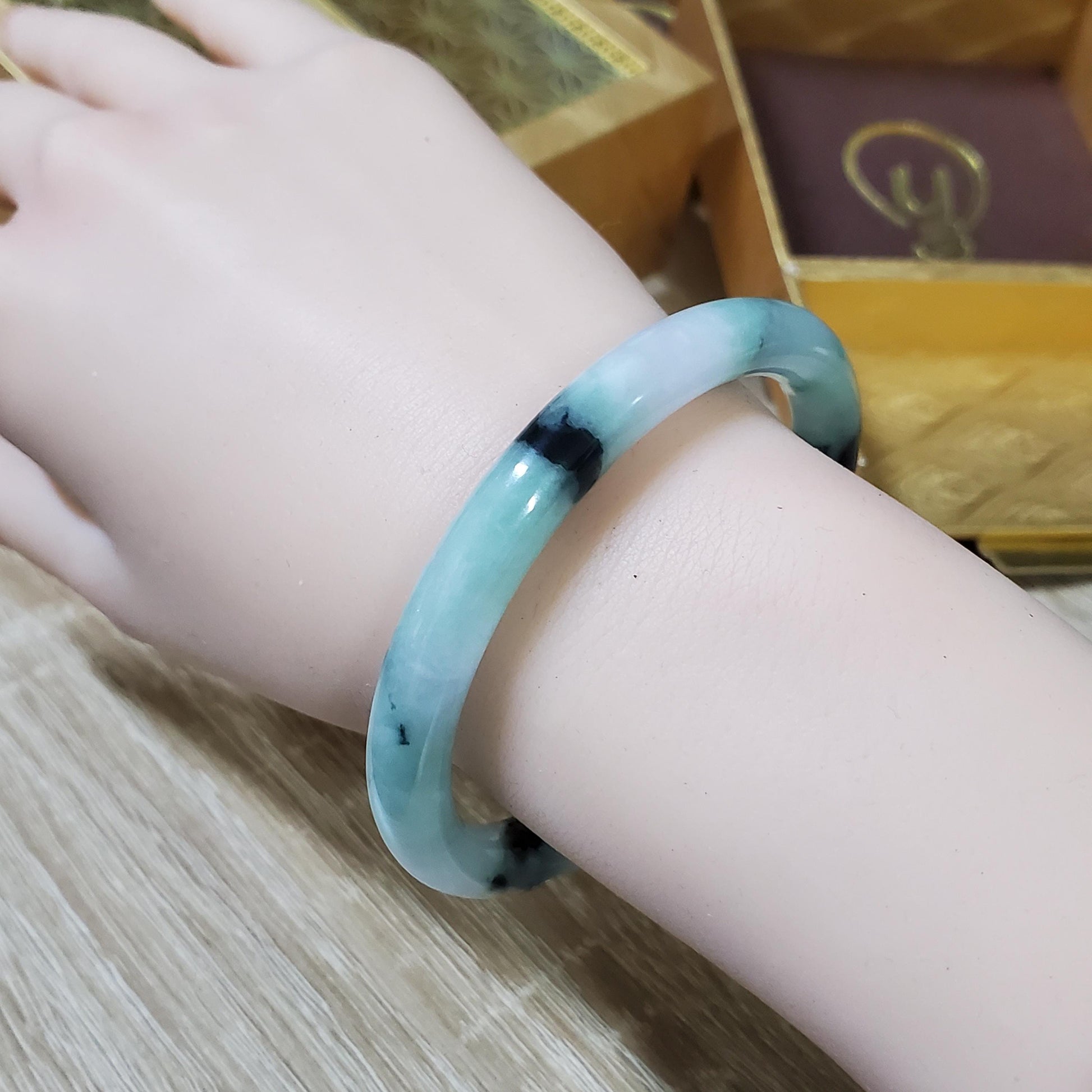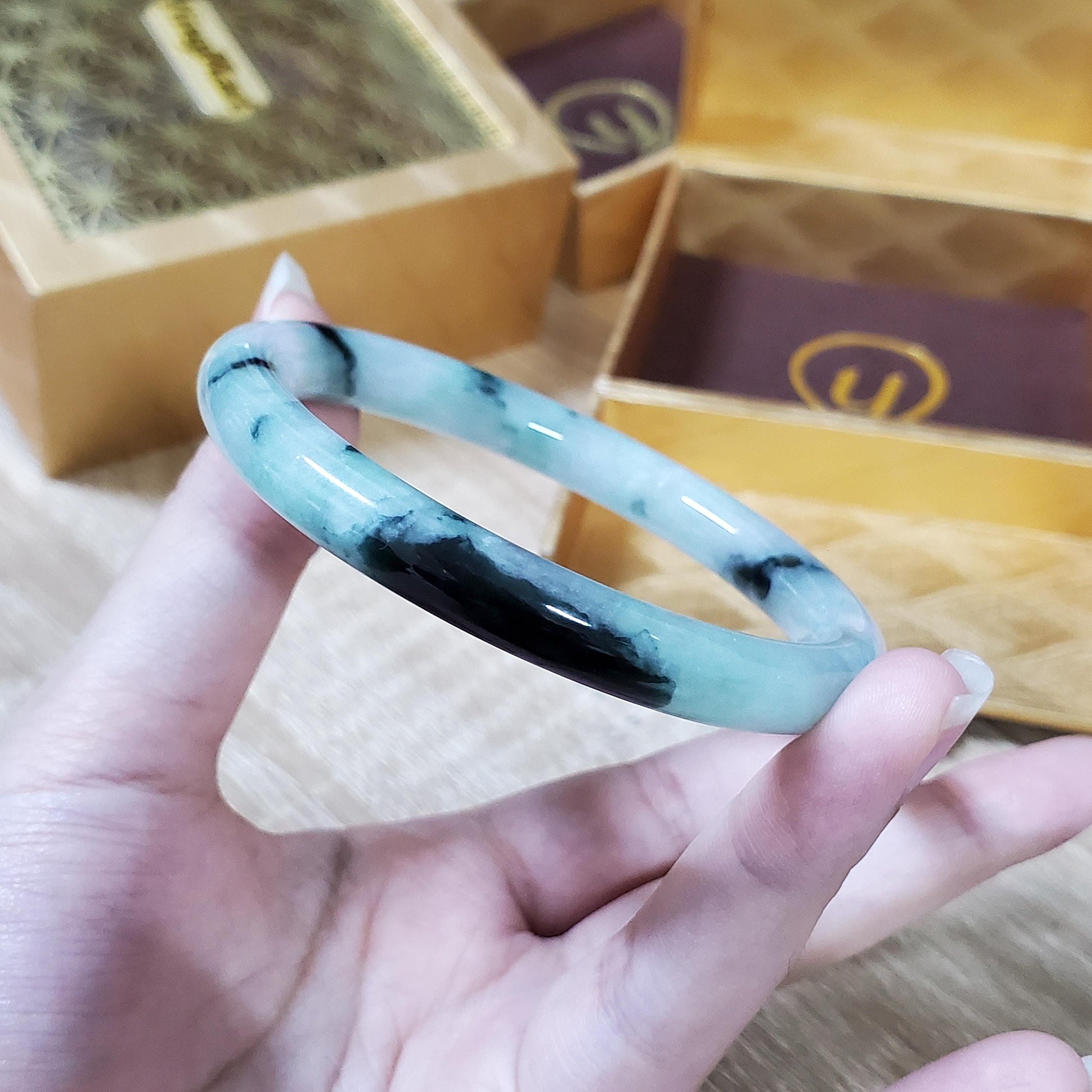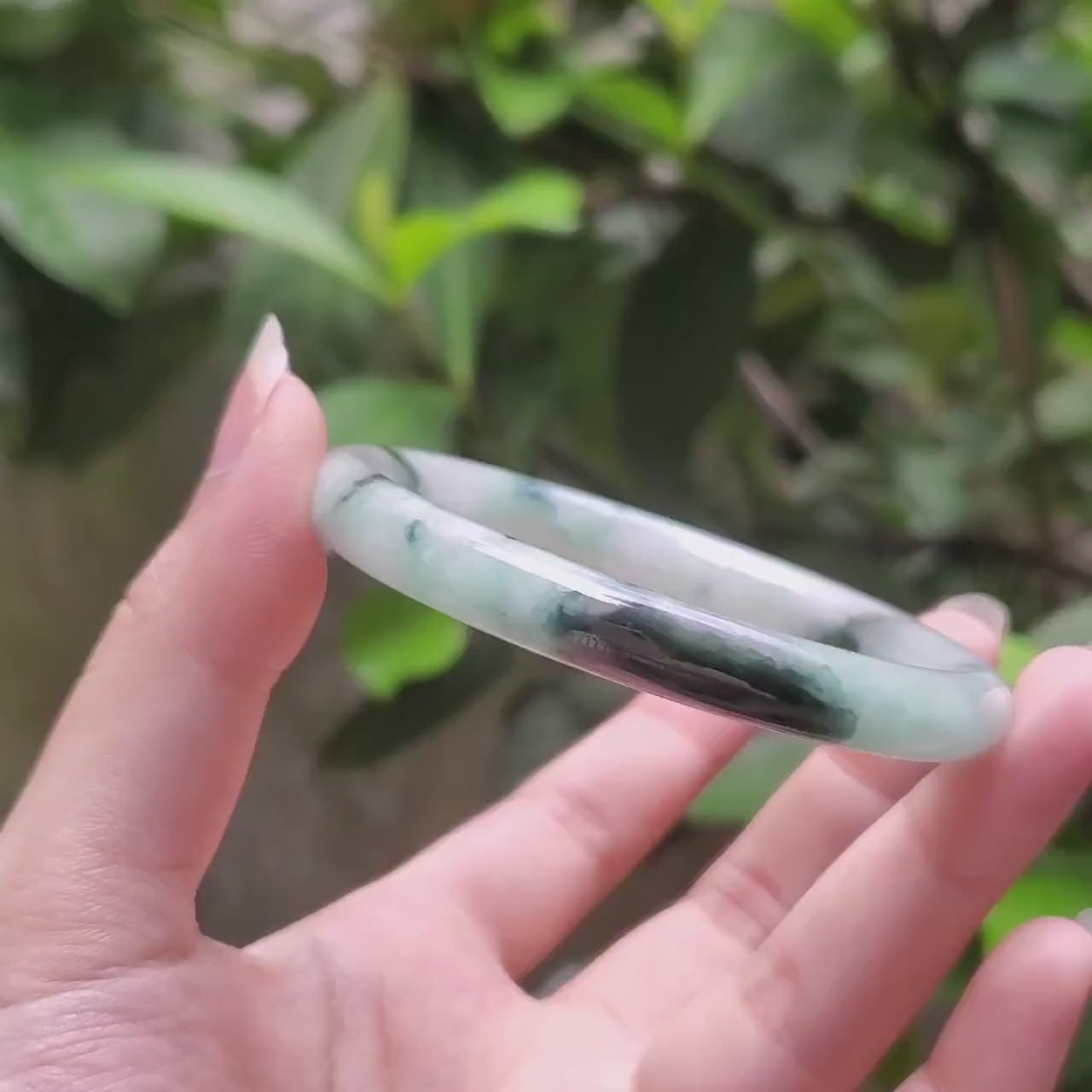π Timeless Vintage Elegance: High Quality White to Light Green with Black Spot jade bangle symbolising wealth, health & prosperity.