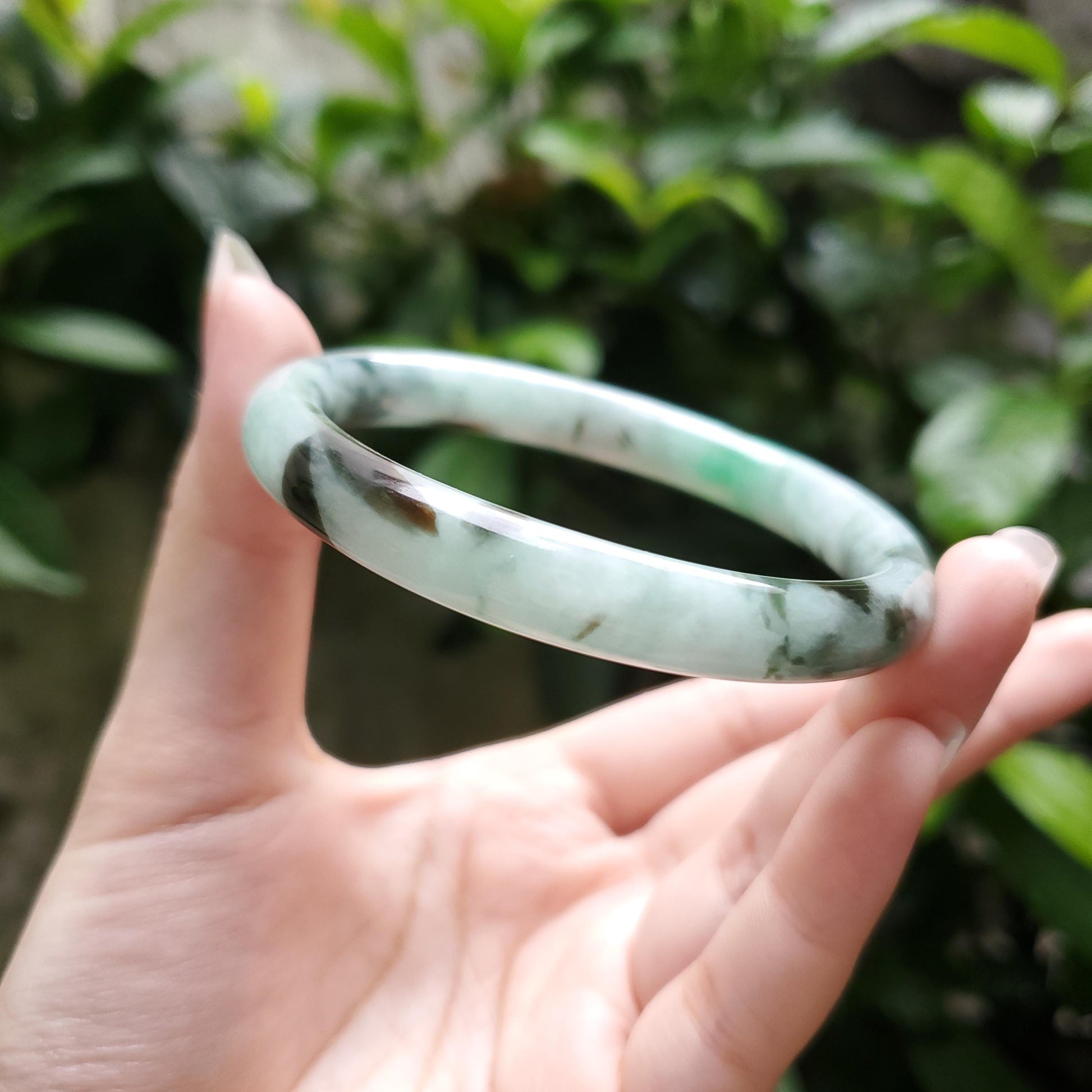 High Quality 48β72mm Natural-Colour Jade White to Light Green Bangle Gift for Her Grandma Mom Feng Shui Black Spot Personalized