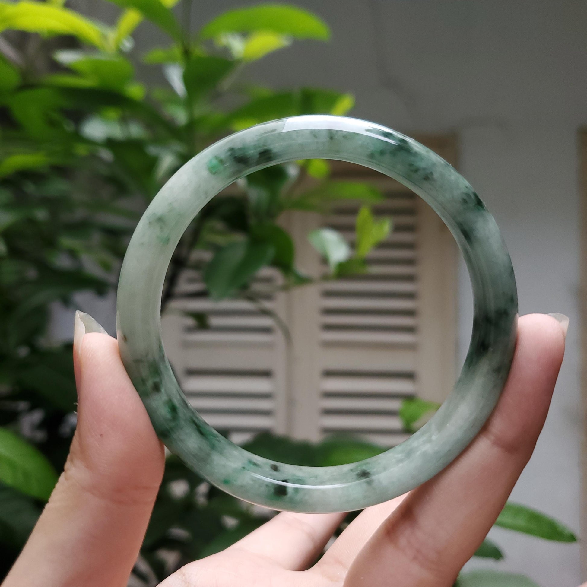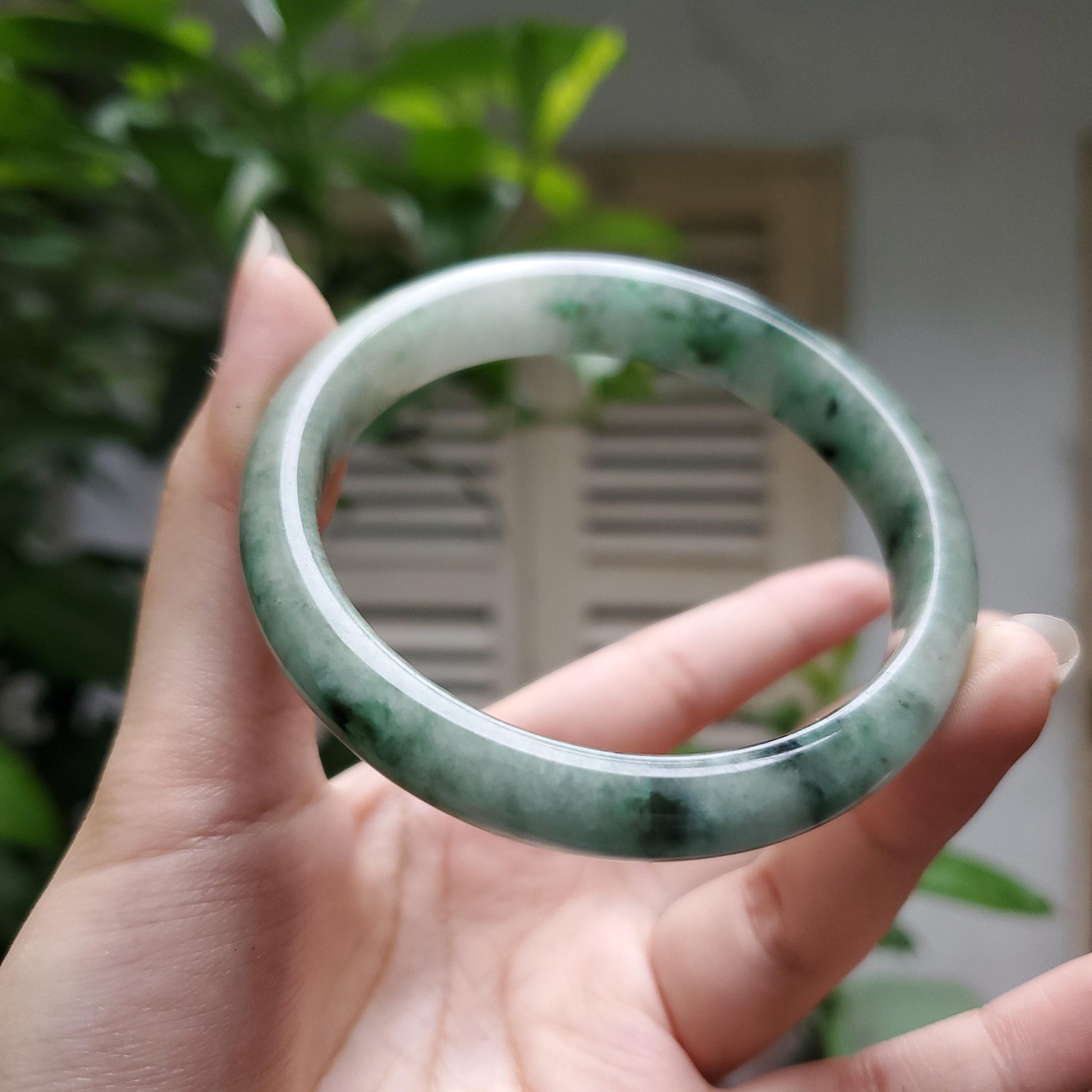 π Timeless Vintage Elegance: High Quality White jade bangle with floating black/green veins symbolising wealth, health & prosperity.