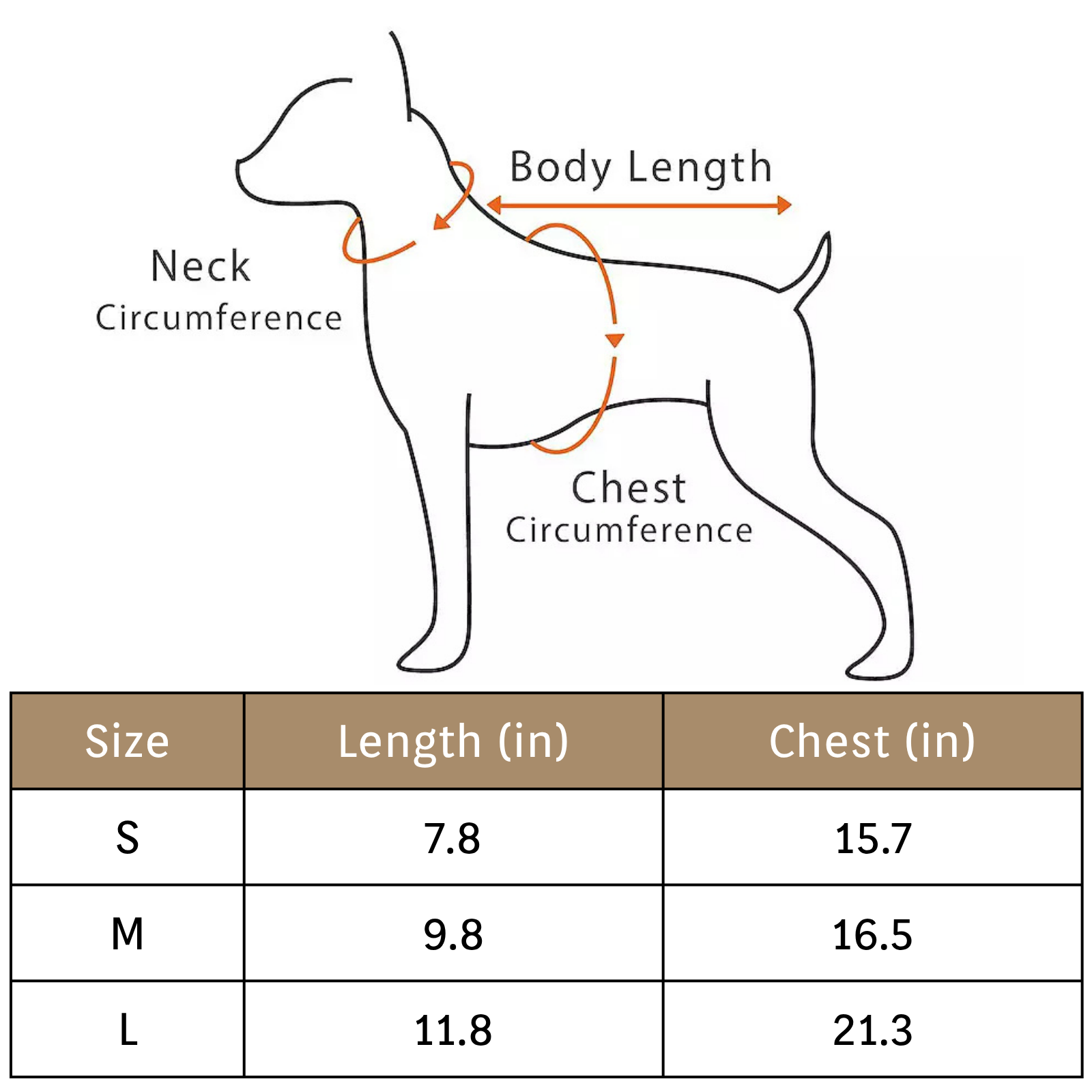 - Length: Measure from the base of the neck to the root of the tail (do not include the tail).