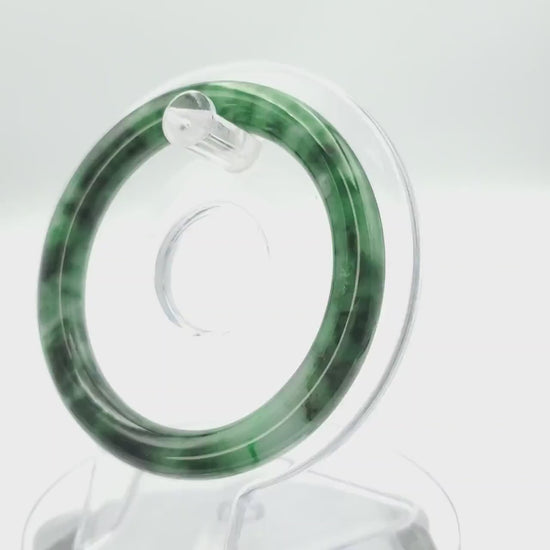 YingCollection 53mm PNJ258382 Certified Natural Color Green White To Dark Green, Grey White Jadeite Jade Bangle Bracelet, Real Gemstone