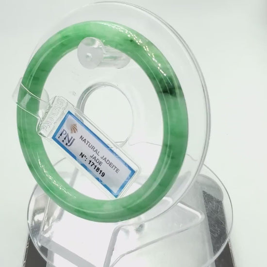 YingCollection 55mm PNJ171819 Certified Natural Color Green White To Green, Grey Jadeite Jade Bangle Bracelet, Real Gemstone
