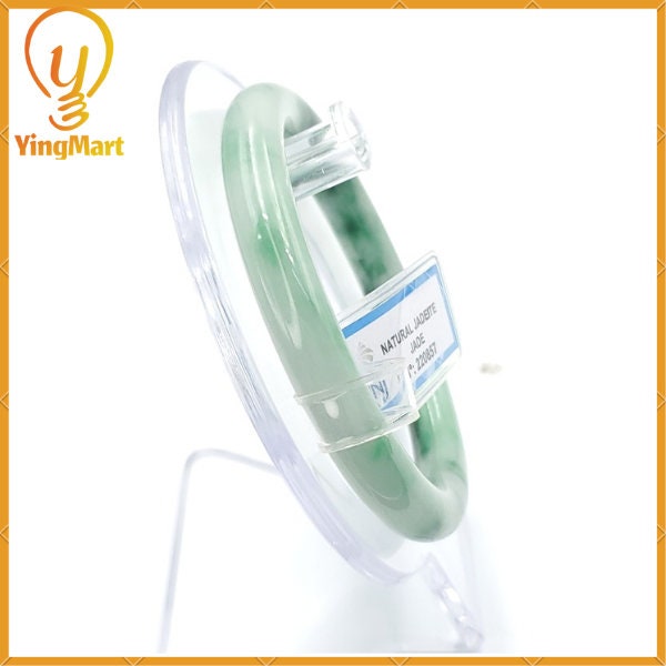 YingCollection 55mm PNJ220857 Certified Natural Color Green With Black Brown Spot Jadeite Jade Bangle Bracelet, Real Gemstone, Jewelry