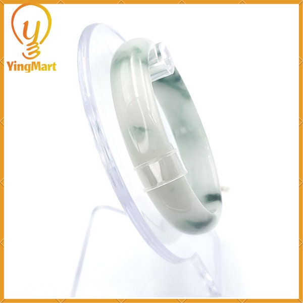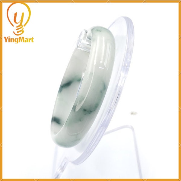 YingCollection 55mm PNJ221611 Certified Natural Color Green With Black Brown Spot Jadeite Jade Bangle Bracelet, Real Gemstone, Jewelry