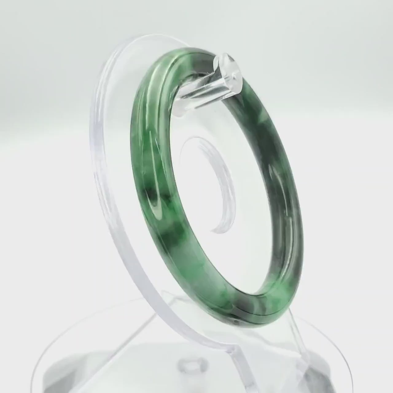 YingCollection 55mm PNJ258387 Certified Natural Color Green White To Dark Green, Grey White Jadeite Jade Bangle Bracelet, Real Gemstone