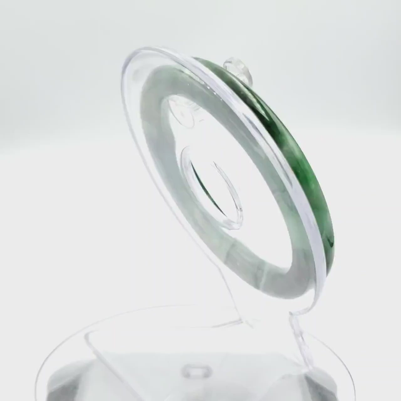 YingCollection 56mm PNJ258386 Certified Natural Color Green White To Dark Green, Grey White Jadeite Jade Bangle Bracelet, Real Gemstone